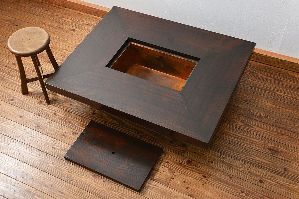 火鉢> 長火鉢 > アンティーク雑貨 中古 ビンテージ 松本民芸家具 特注欅製 座炉卓(1)(囲炉裏、火鉢、座卓)