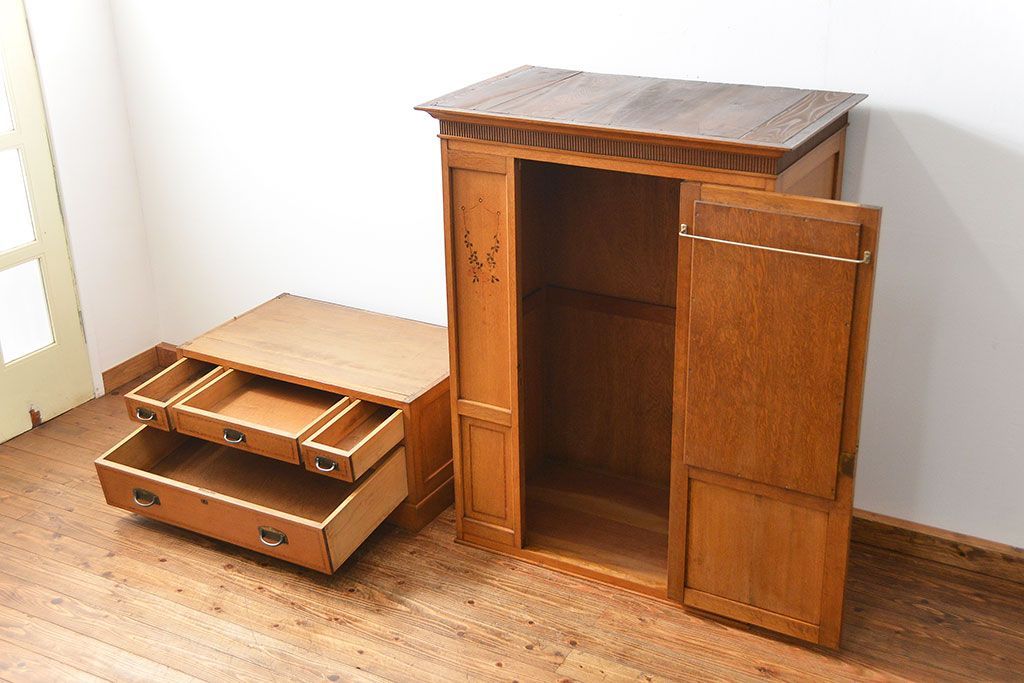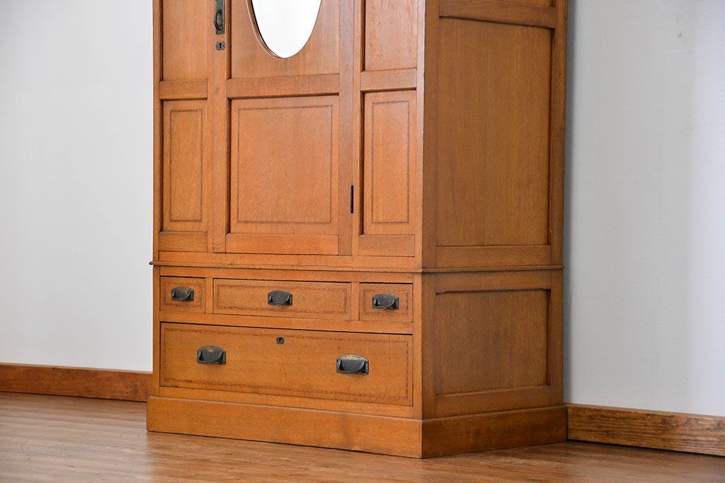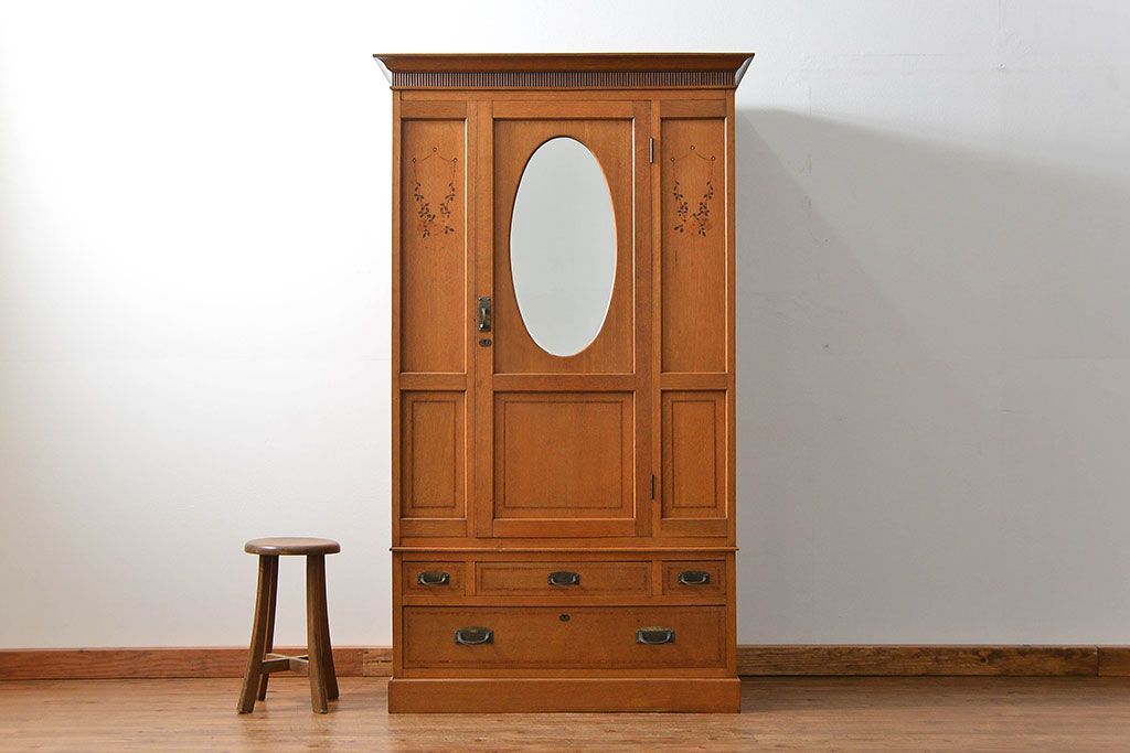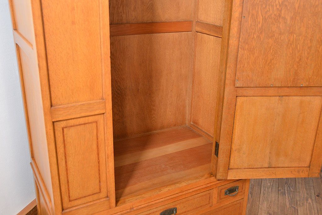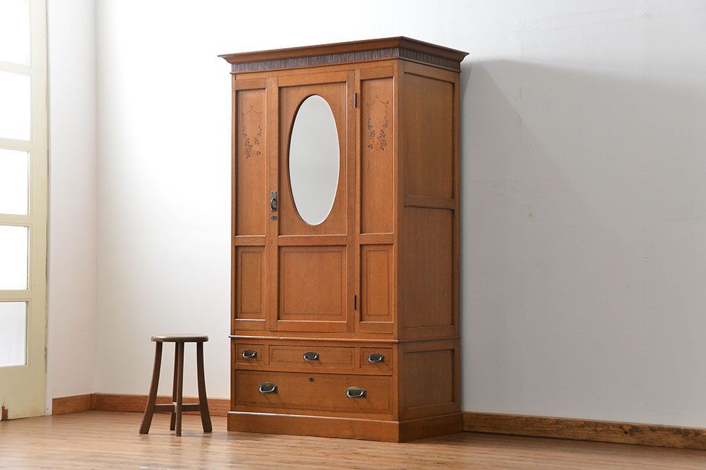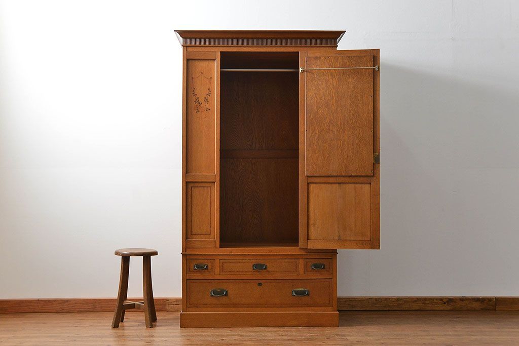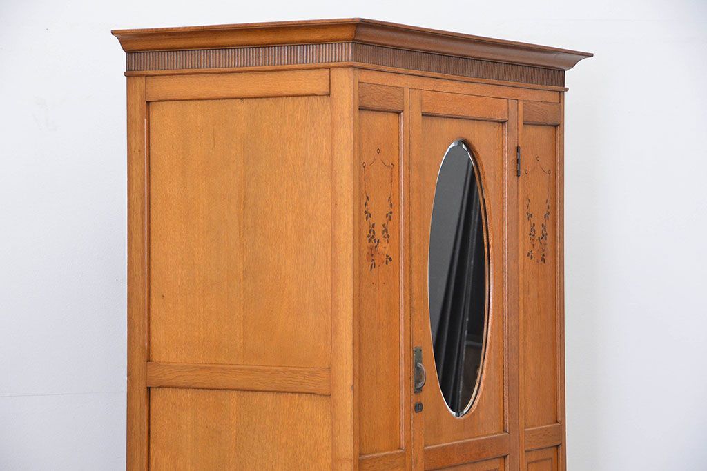 アンティーク デザインと象嵌の美しいナラ材ワードローブ(洋服箪笥、洋服タンス)です。