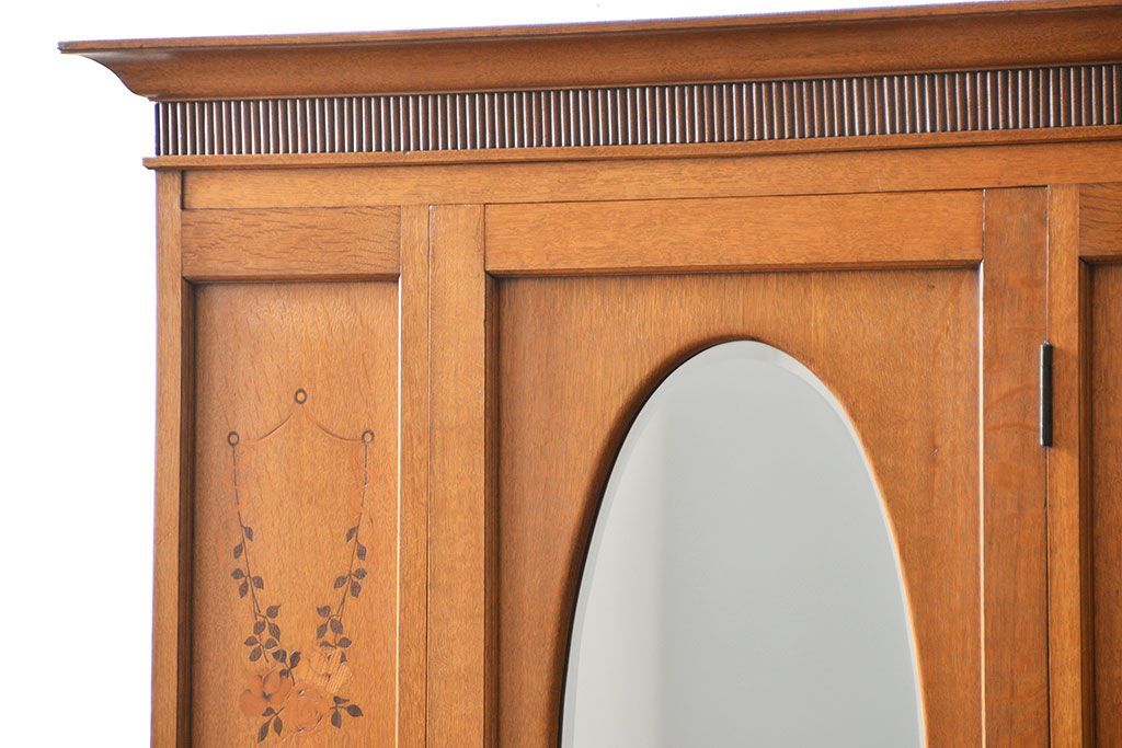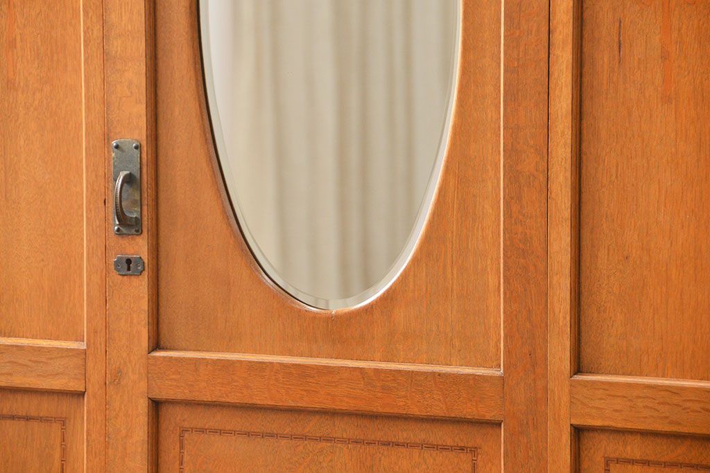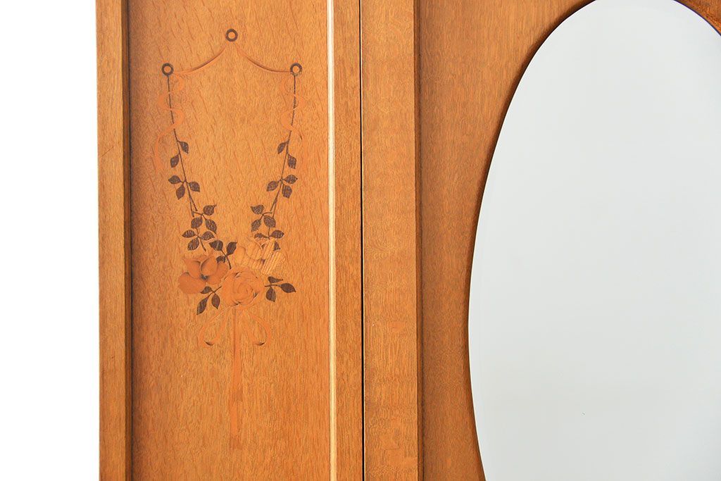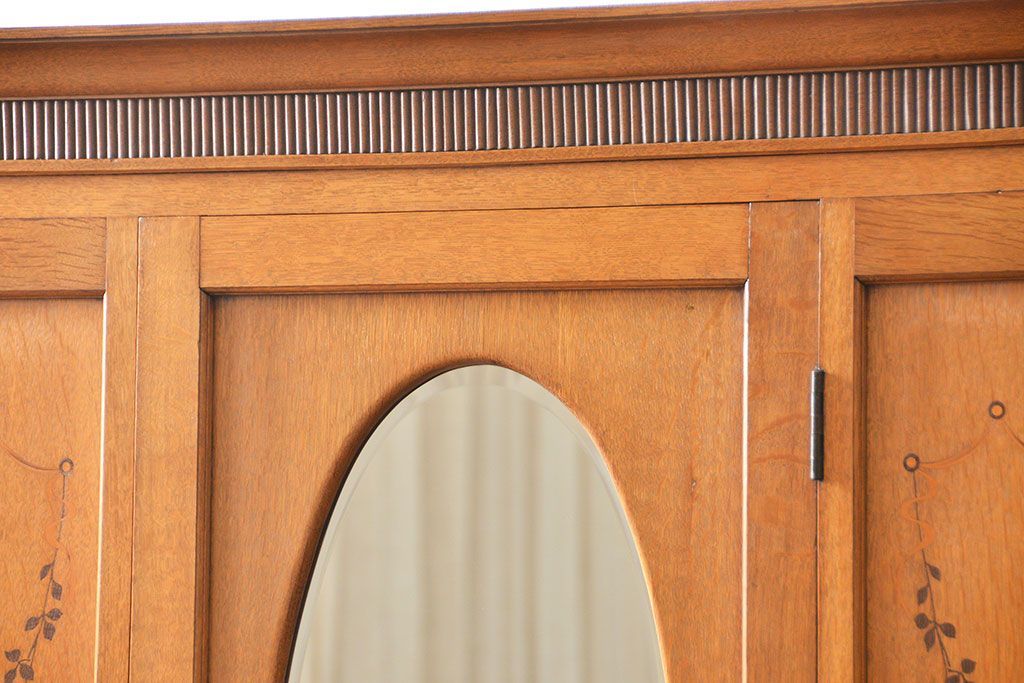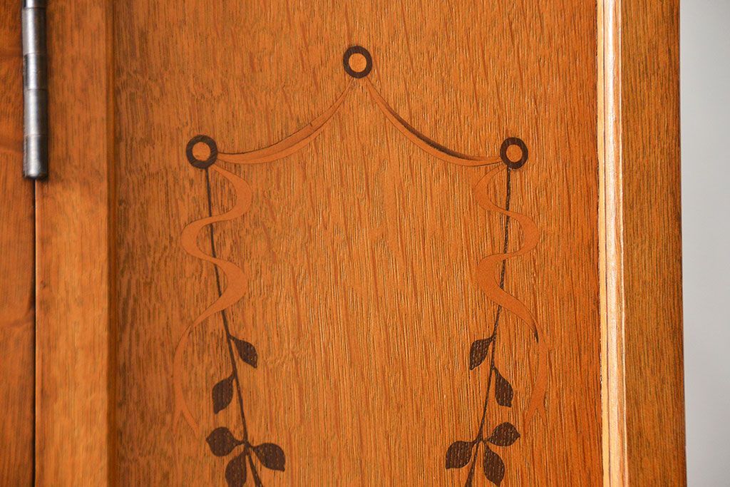 アンティーク家具 アンティーク デザインと象嵌の美しいナラ材ワードローブ(洋服箪笥、洋服タンス)