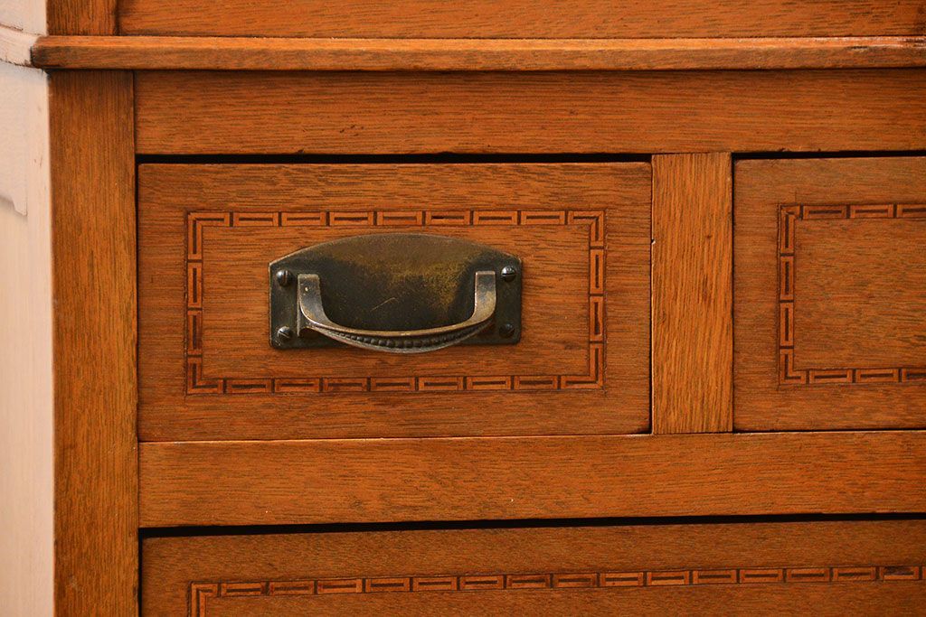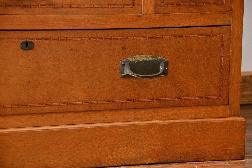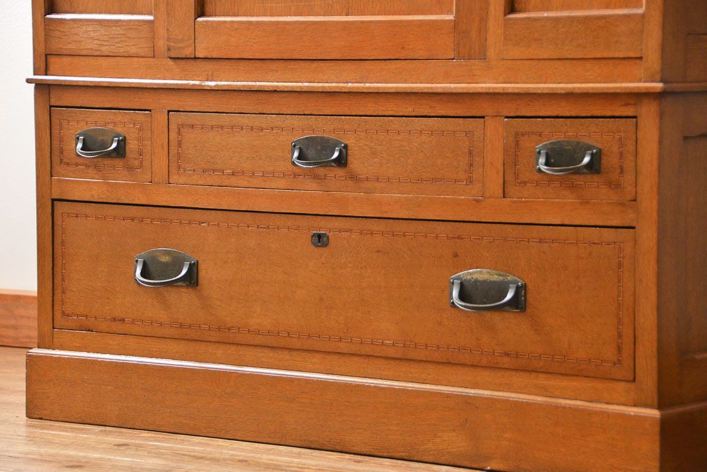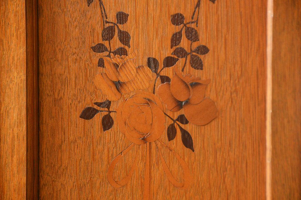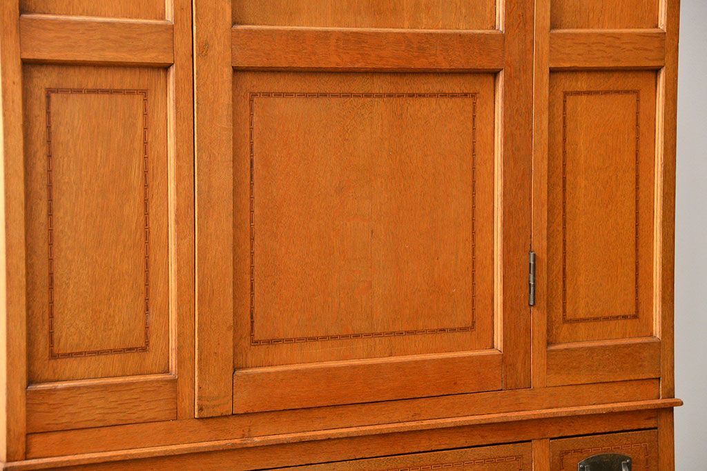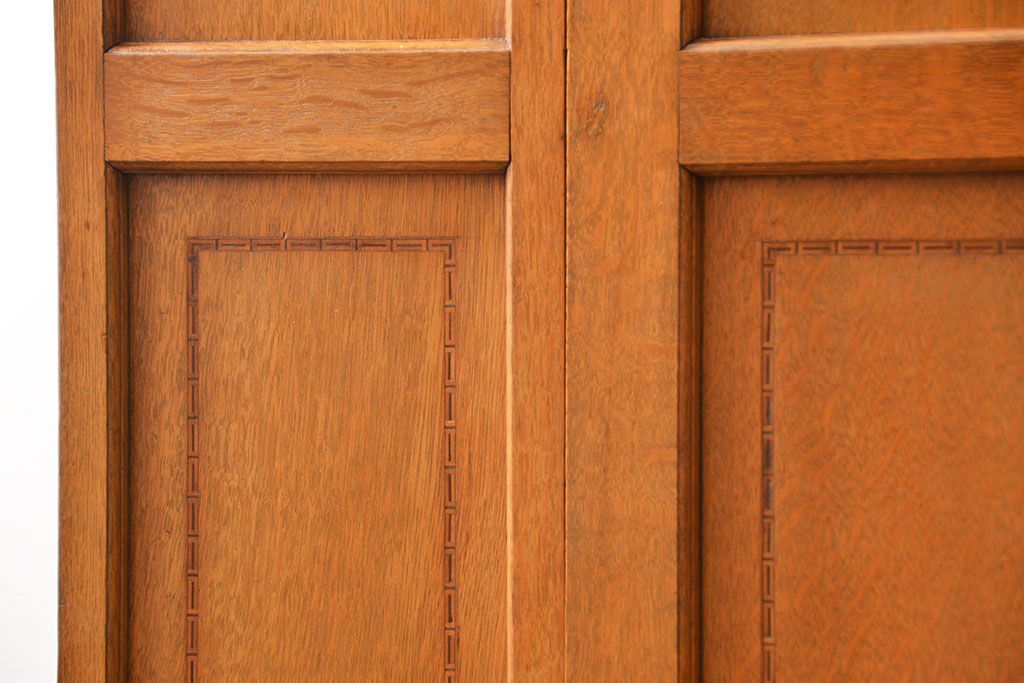 アンティーク家具 アンティーク デザインと象嵌の美しいナラ材ワードローブ(洋服箪笥、洋服タンス)