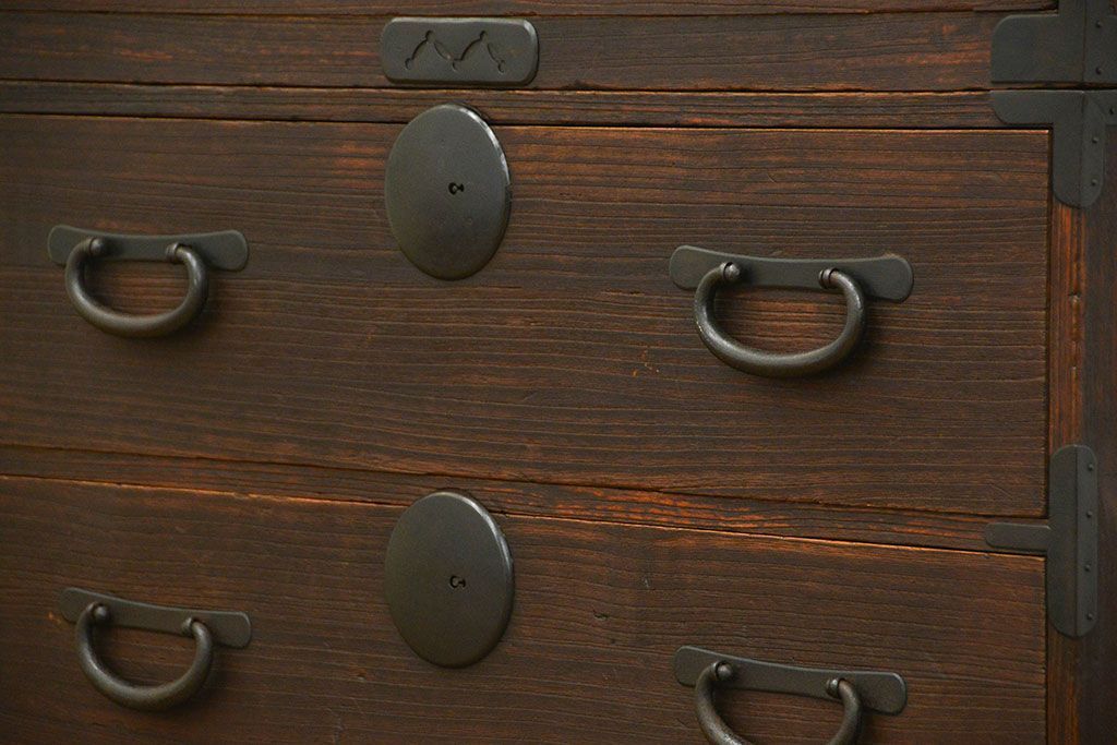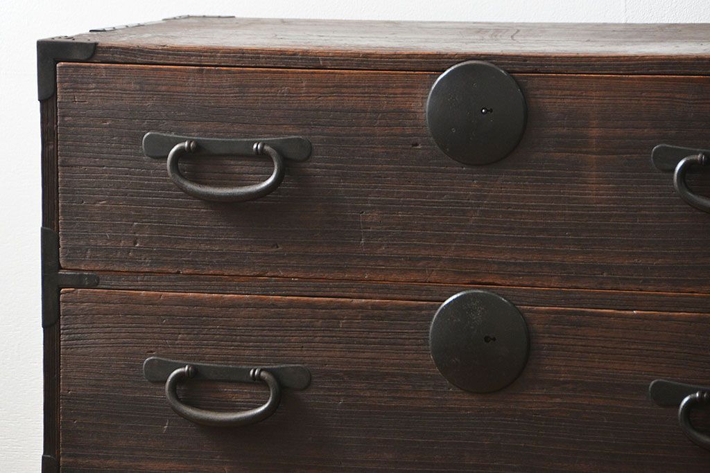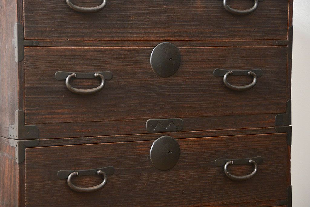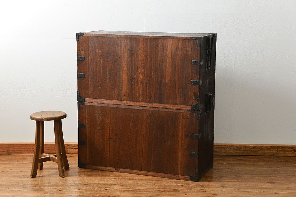 和箪笥> 衣装箪笥 > アンティーク家具 アンティーク 味わい深い二段重ね時代箪笥(たんす、タンス)