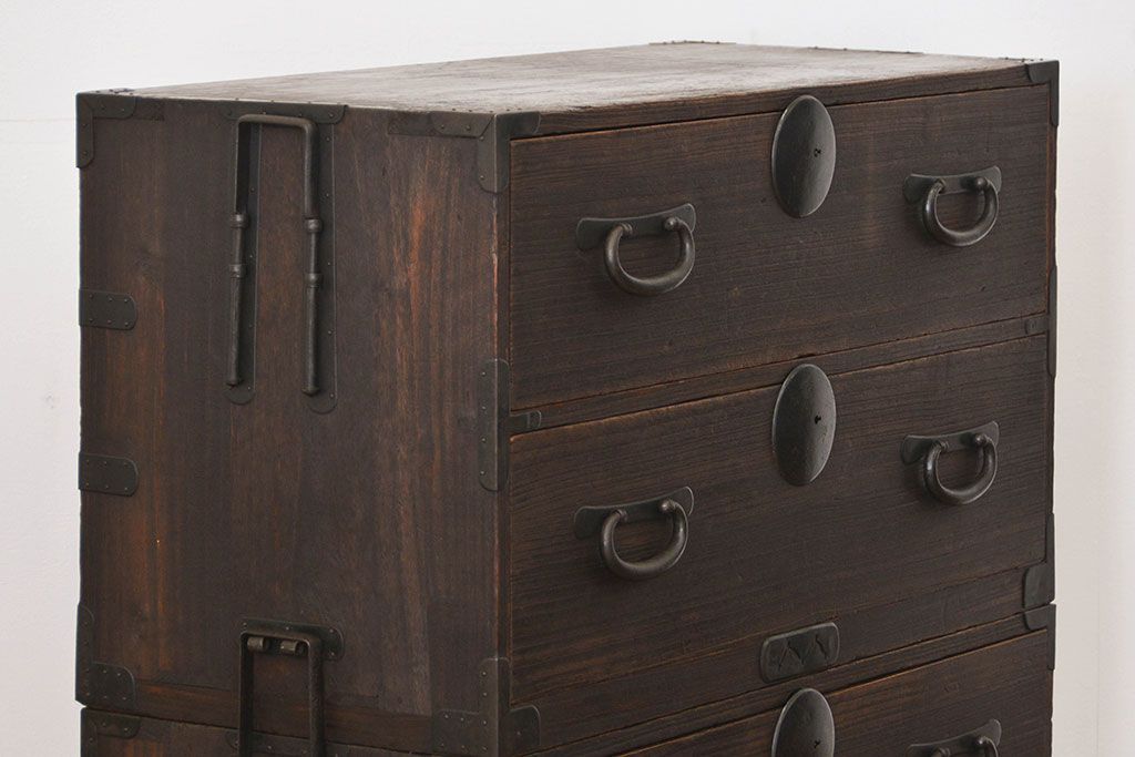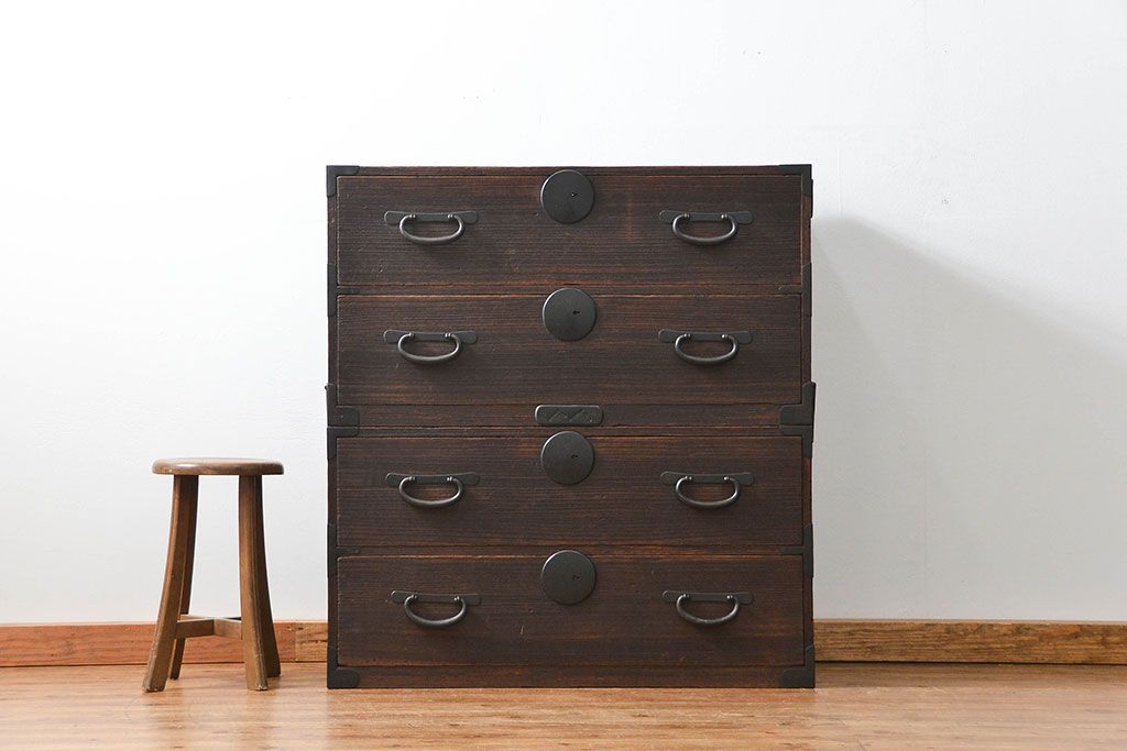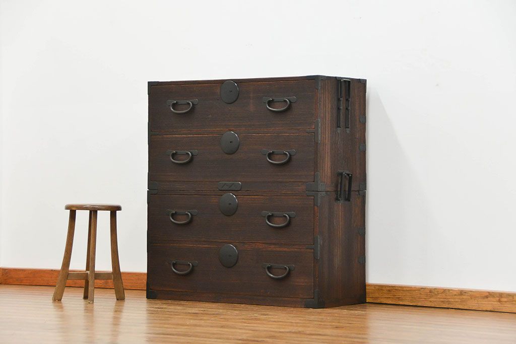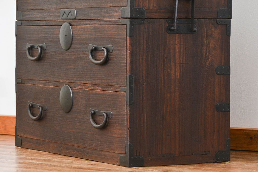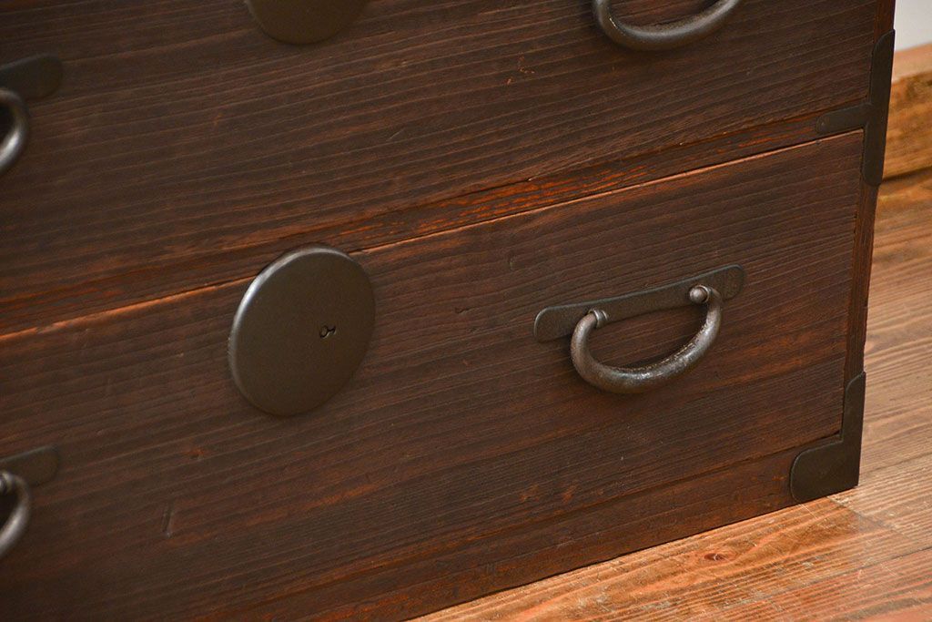 和箪笥> 衣装箪笥 > アンティーク家具 アンティーク 味わい深い二段重ね時代箪笥(たんす、タンス)