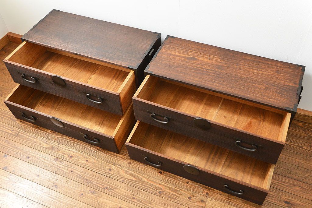 アンティーク 味わい深い二段重ね時代箪笥(たんす、タンス)です。