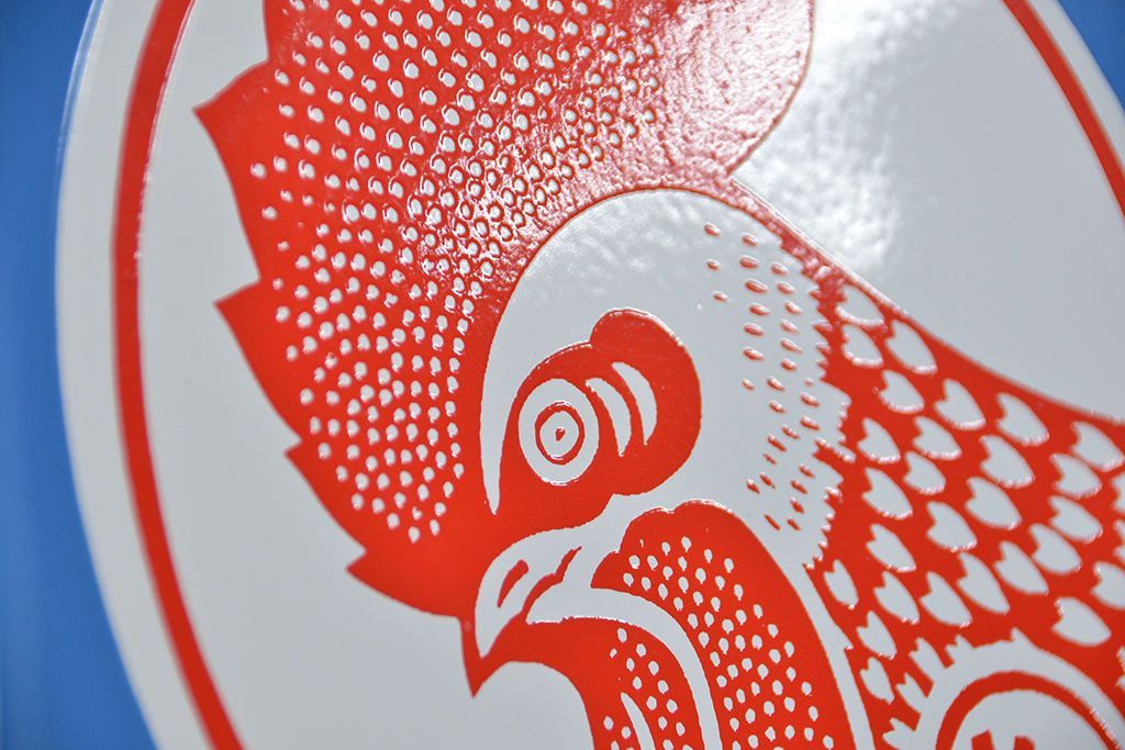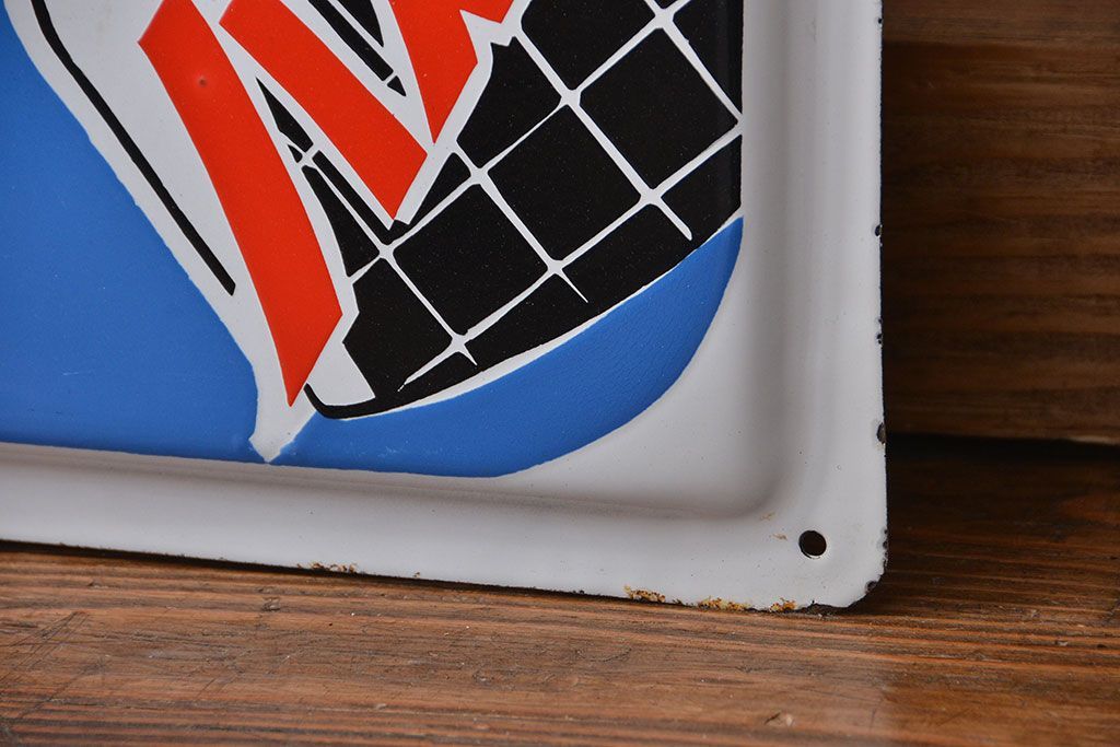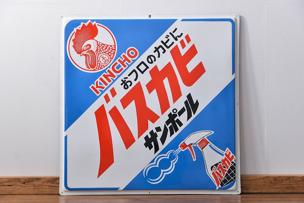 アンティーク雑貨 古い金鳥バスカビサンポール ホーロー看板