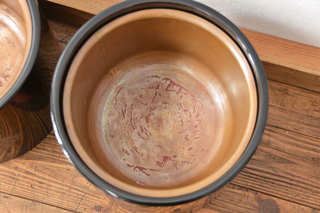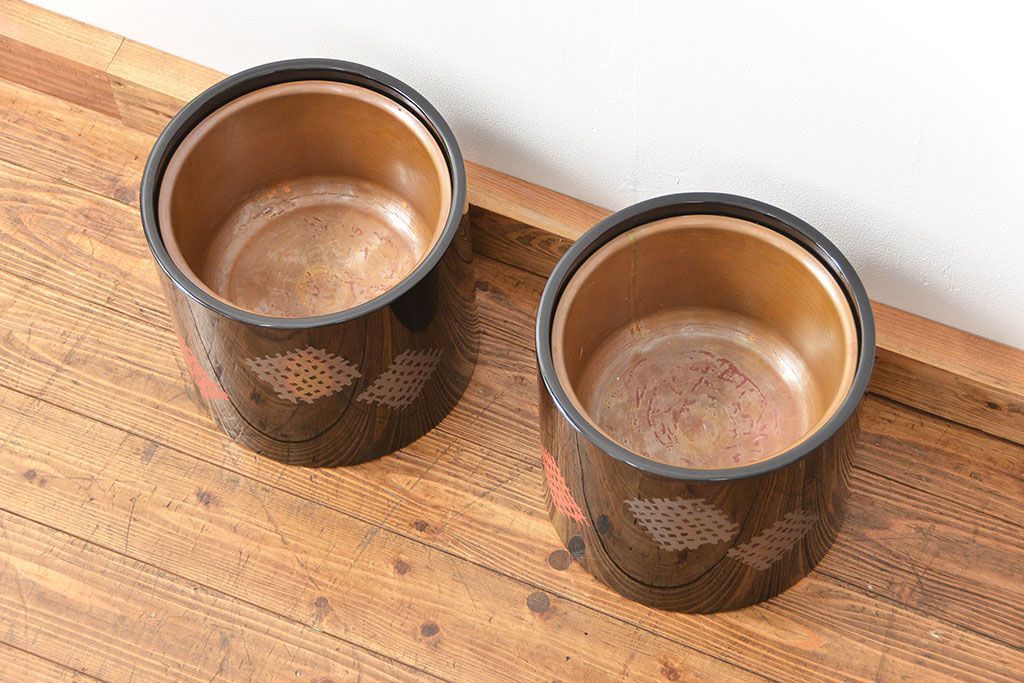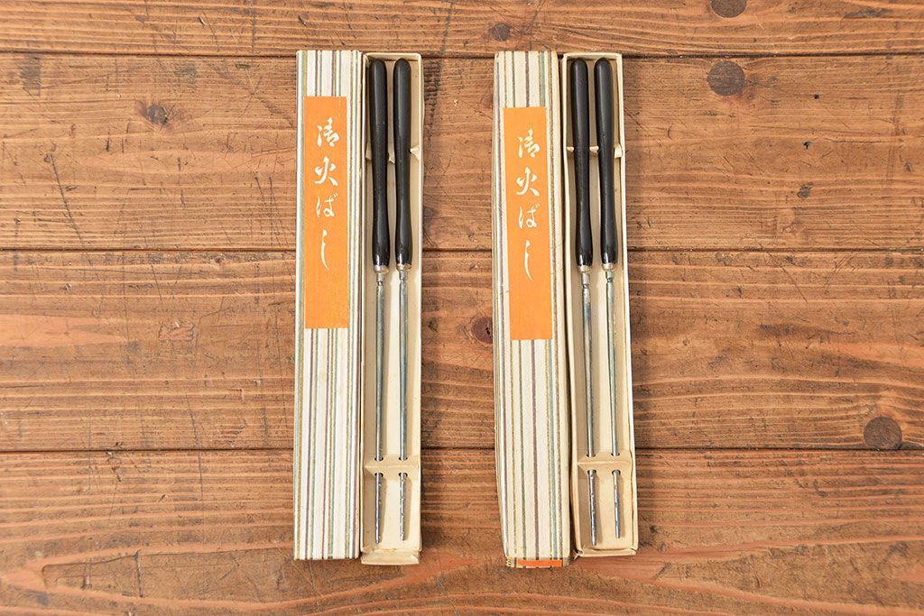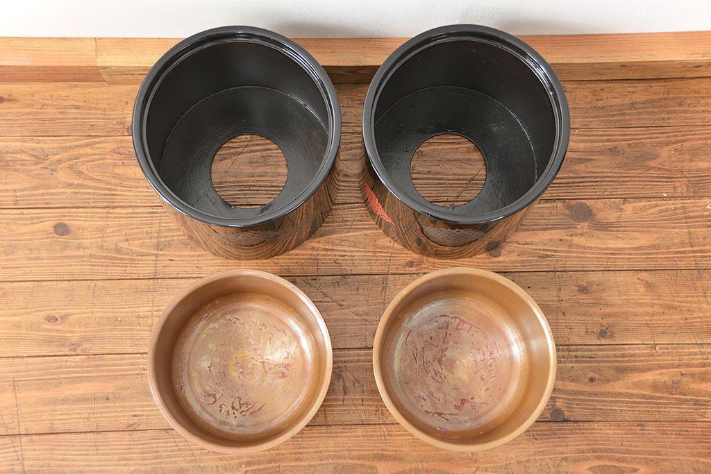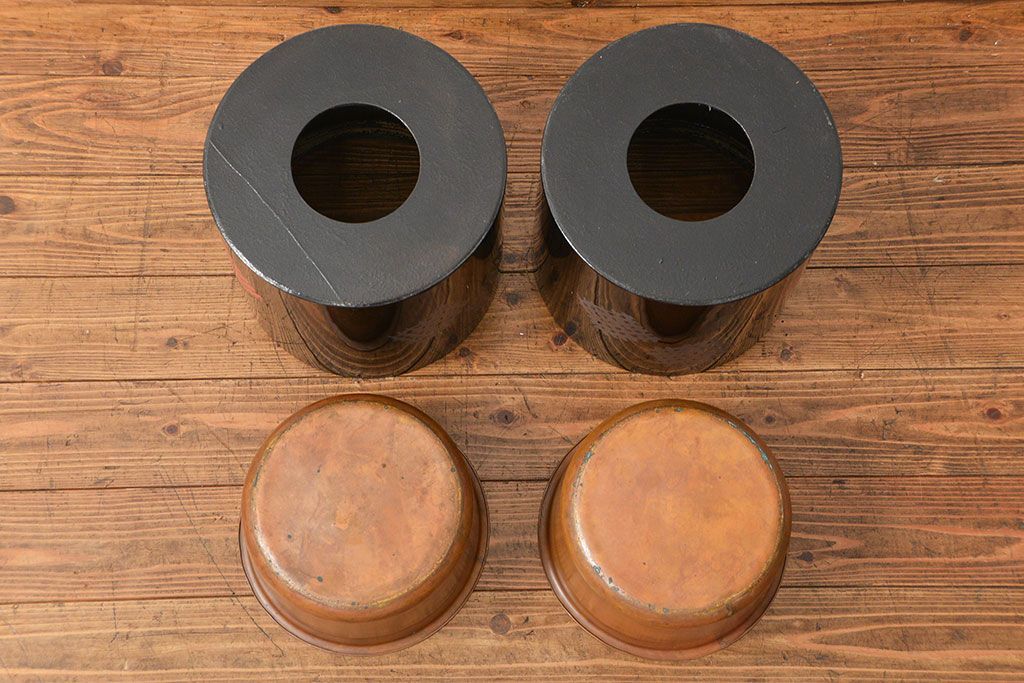 アンティーク雑貨 古い漆塗 火鉢 一対(箱、火箸、灰付き)