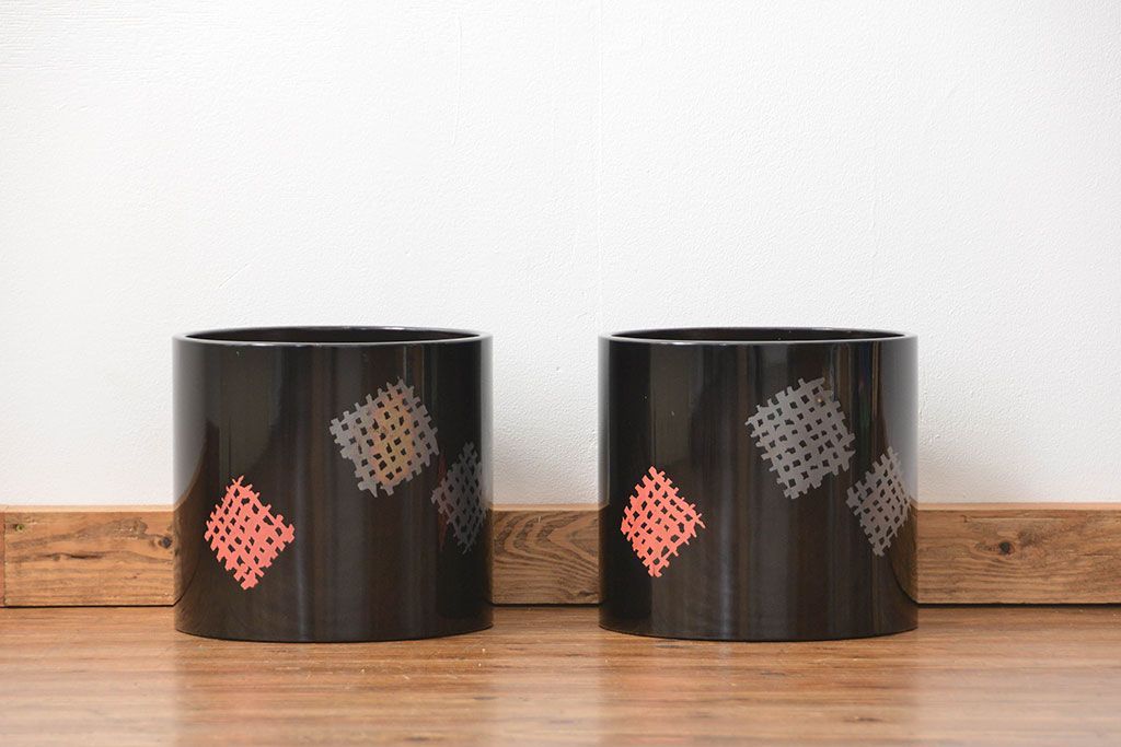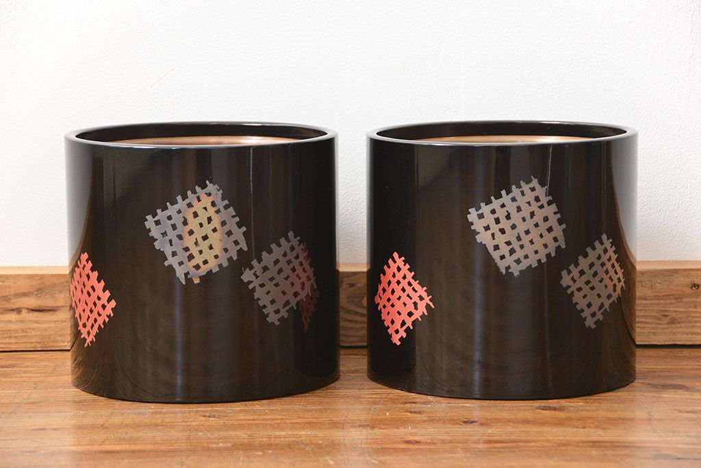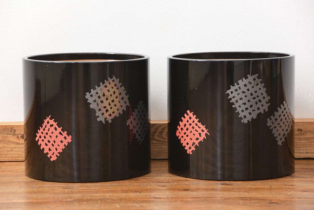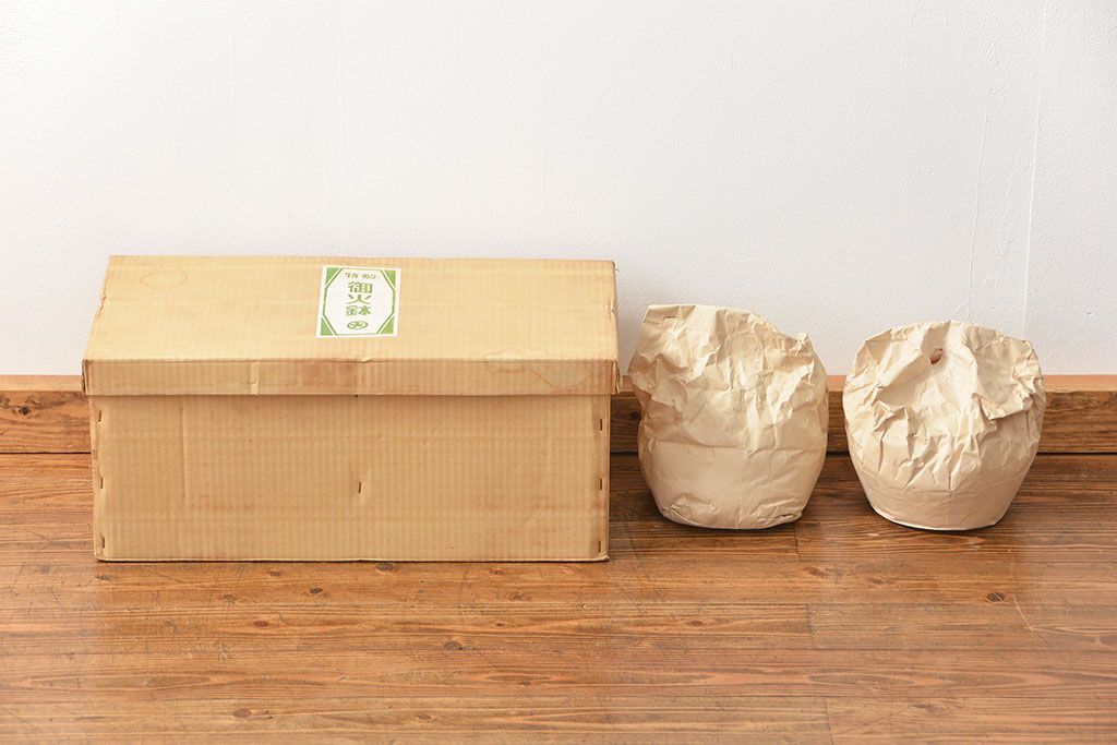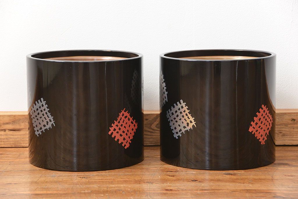 アンティーク雑貨 古い漆塗 火鉢 一対(箱、火箸、灰付き)