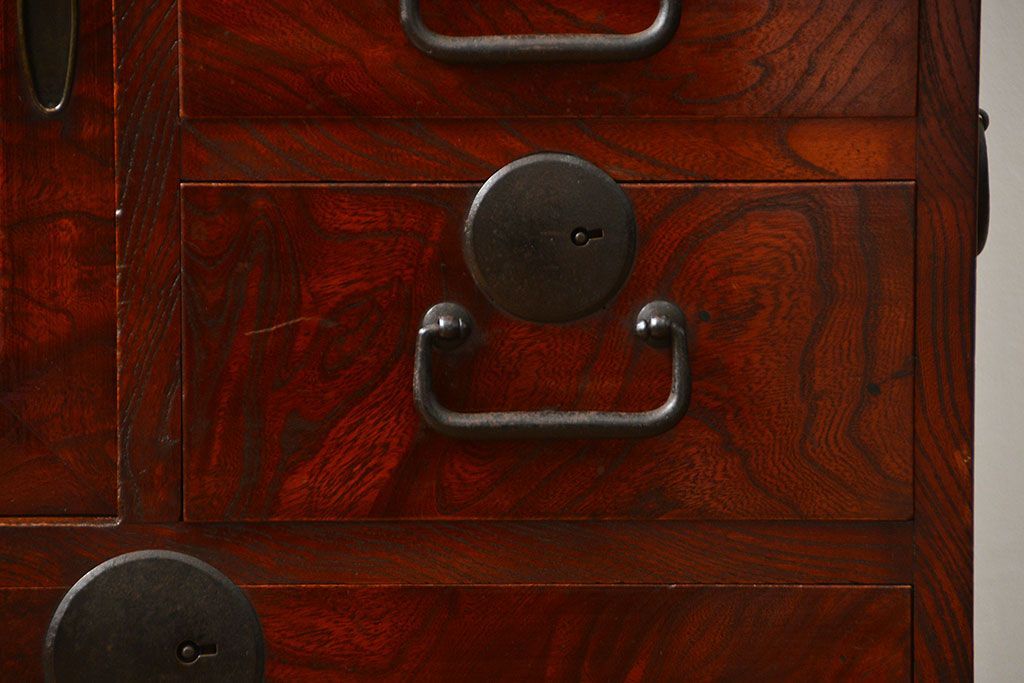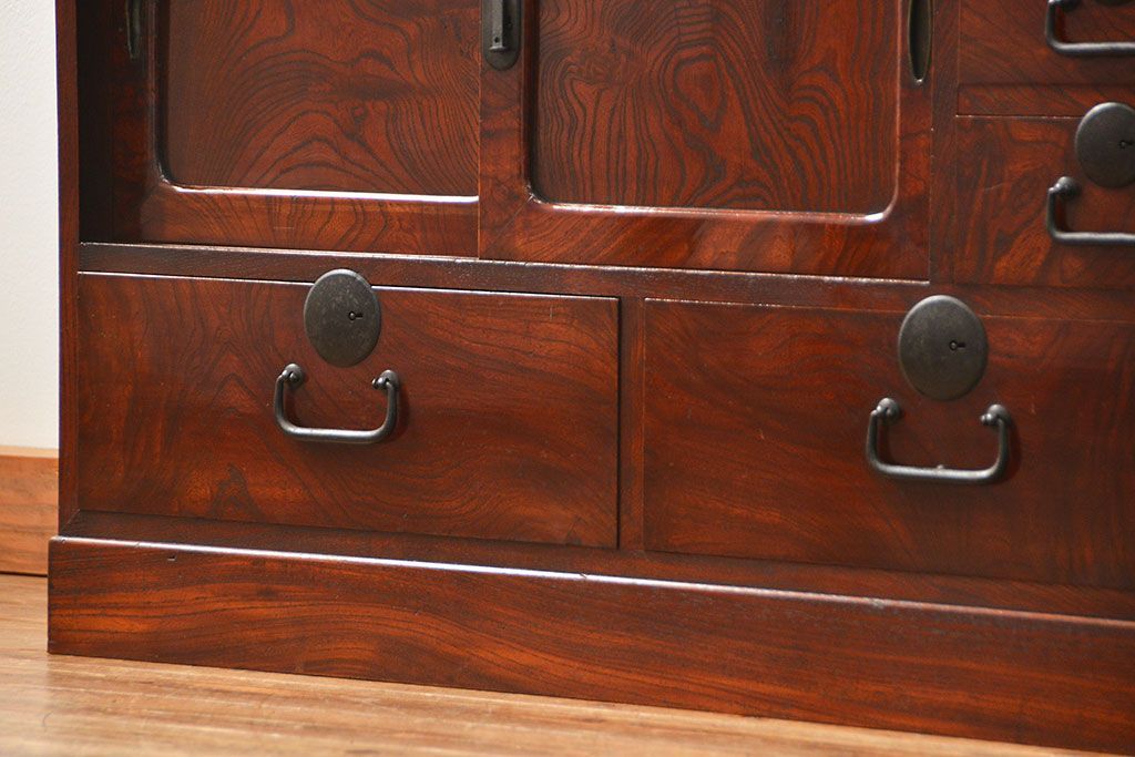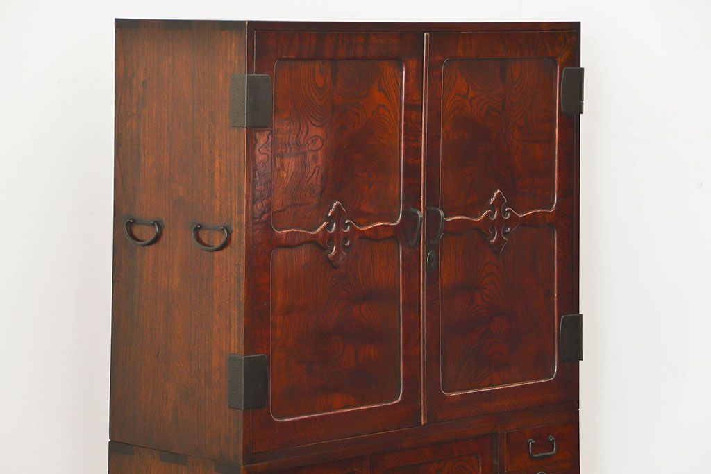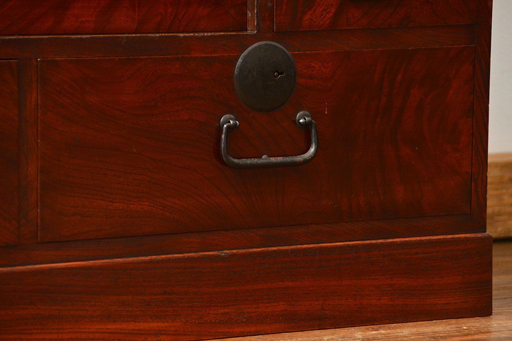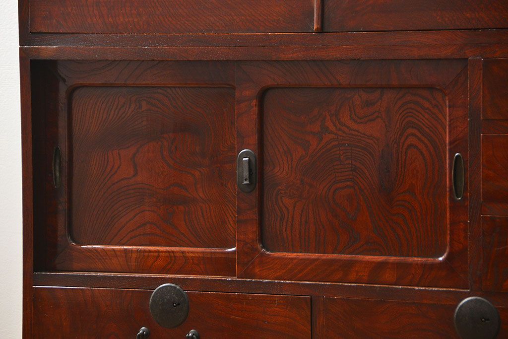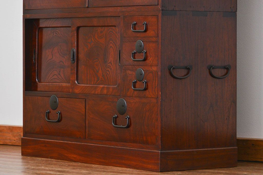 アンティーク家具 古民具・骨董 前面欅材 漆のキレイな2段重ね帳場箪笥(時代箪笥、茶箪笥)