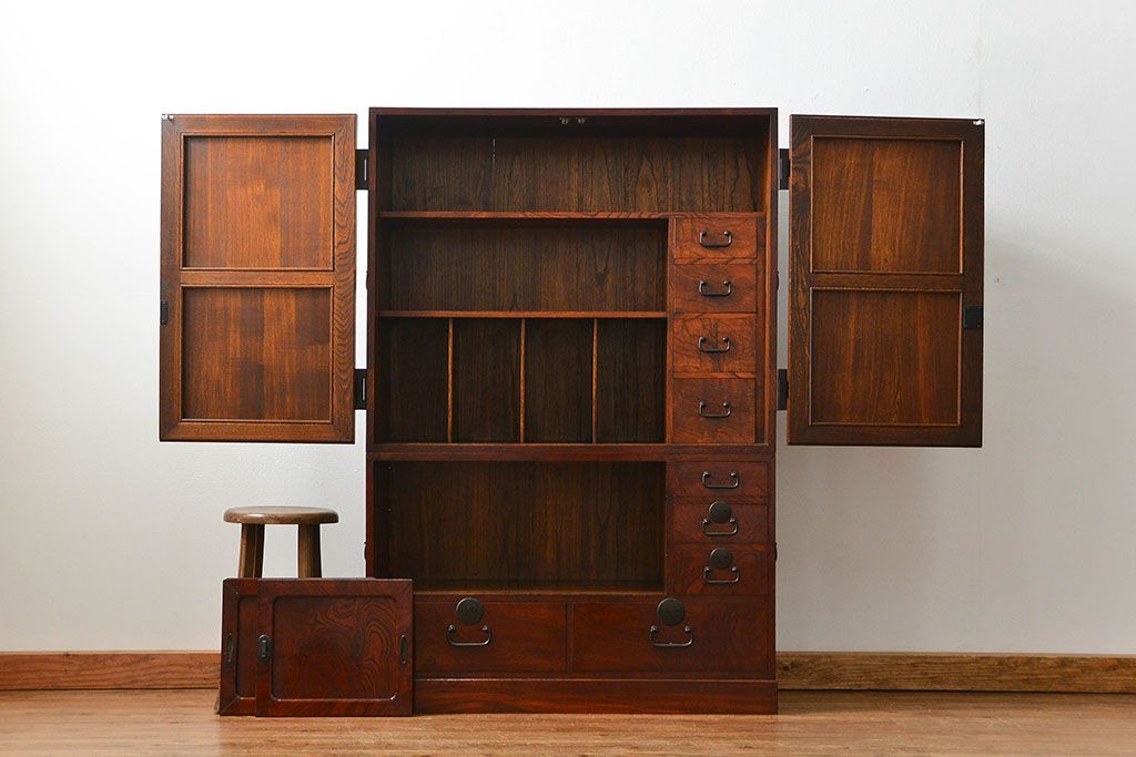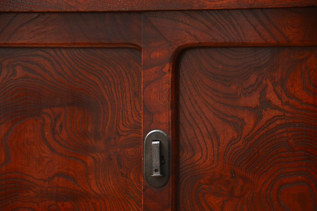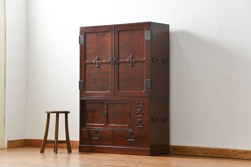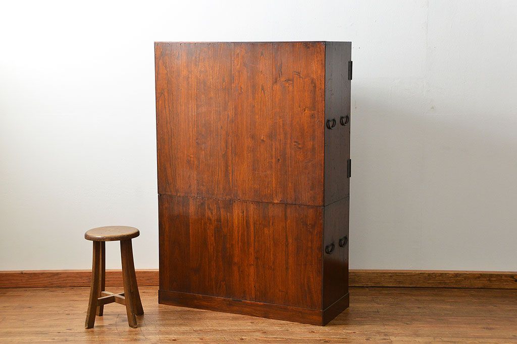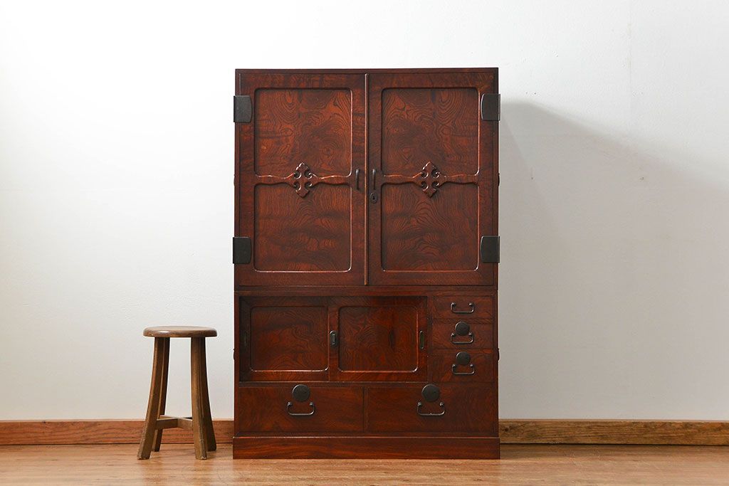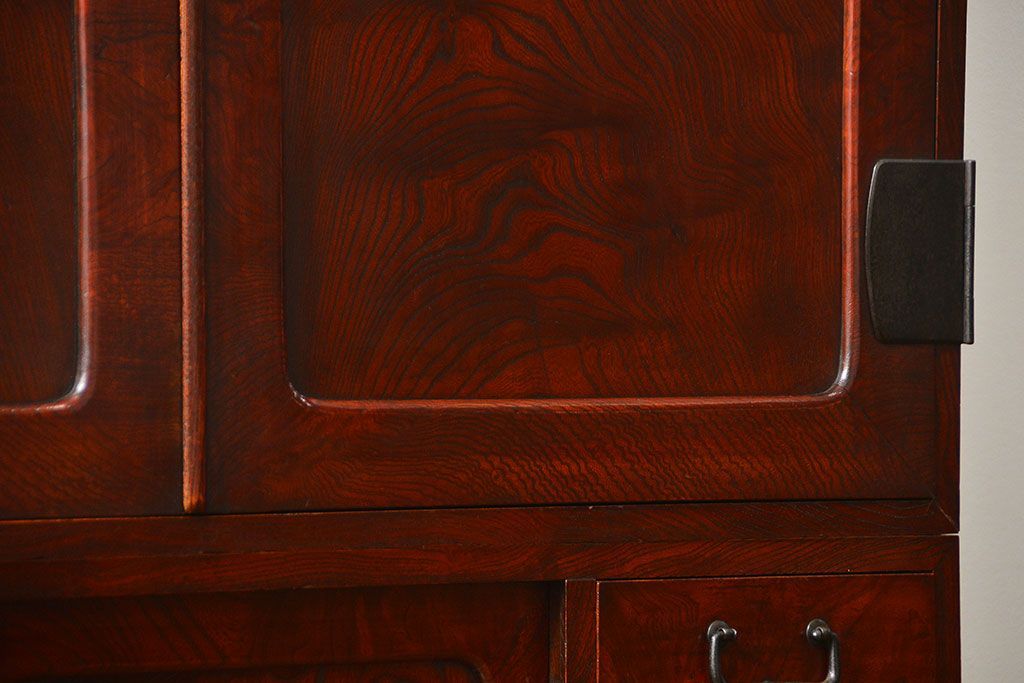 アンティーク家具 古民具・骨董 前面欅材 漆のキレイな2段重ね帳場箪笥(時代箪笥、茶箪笥)