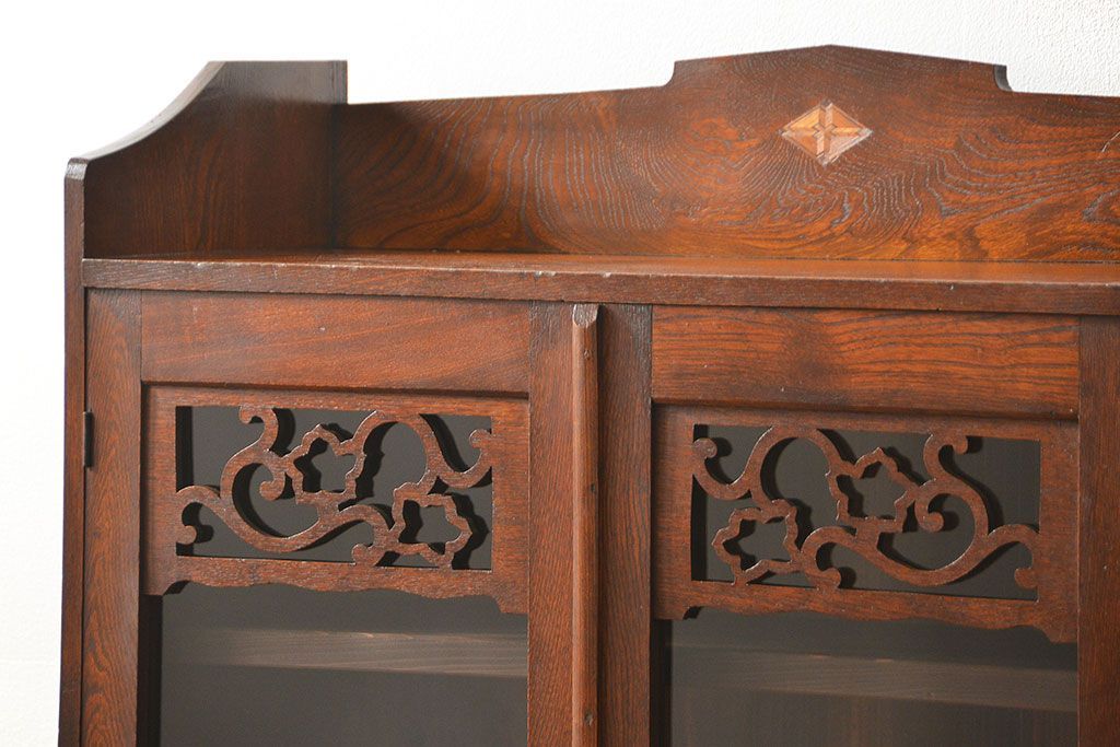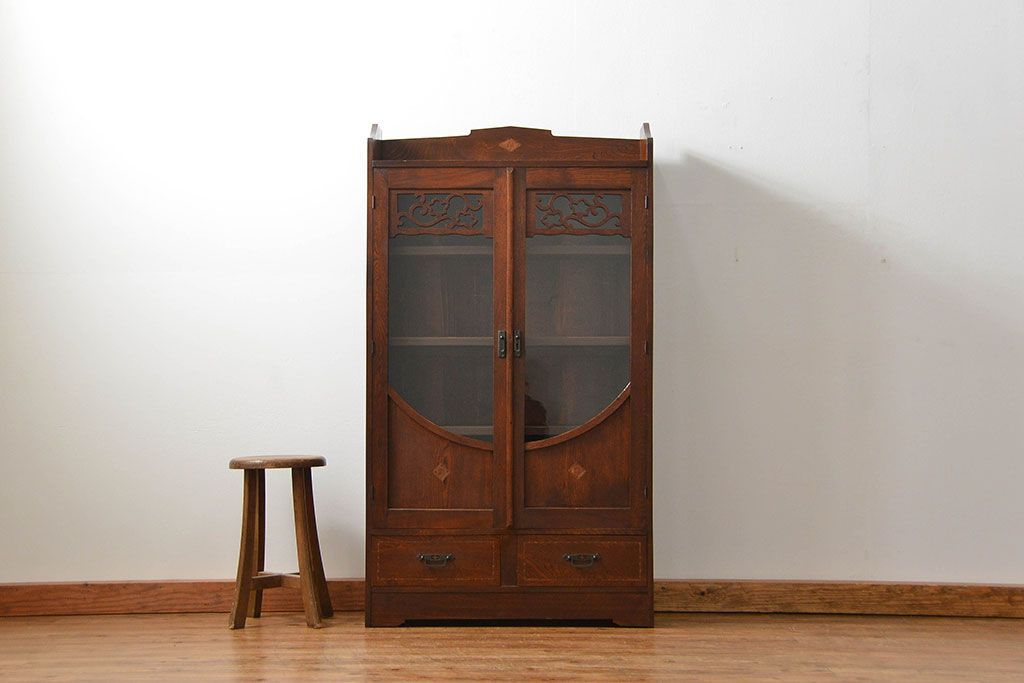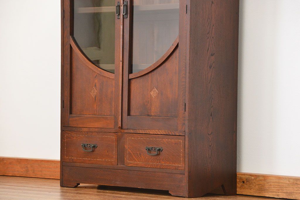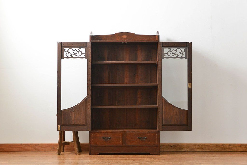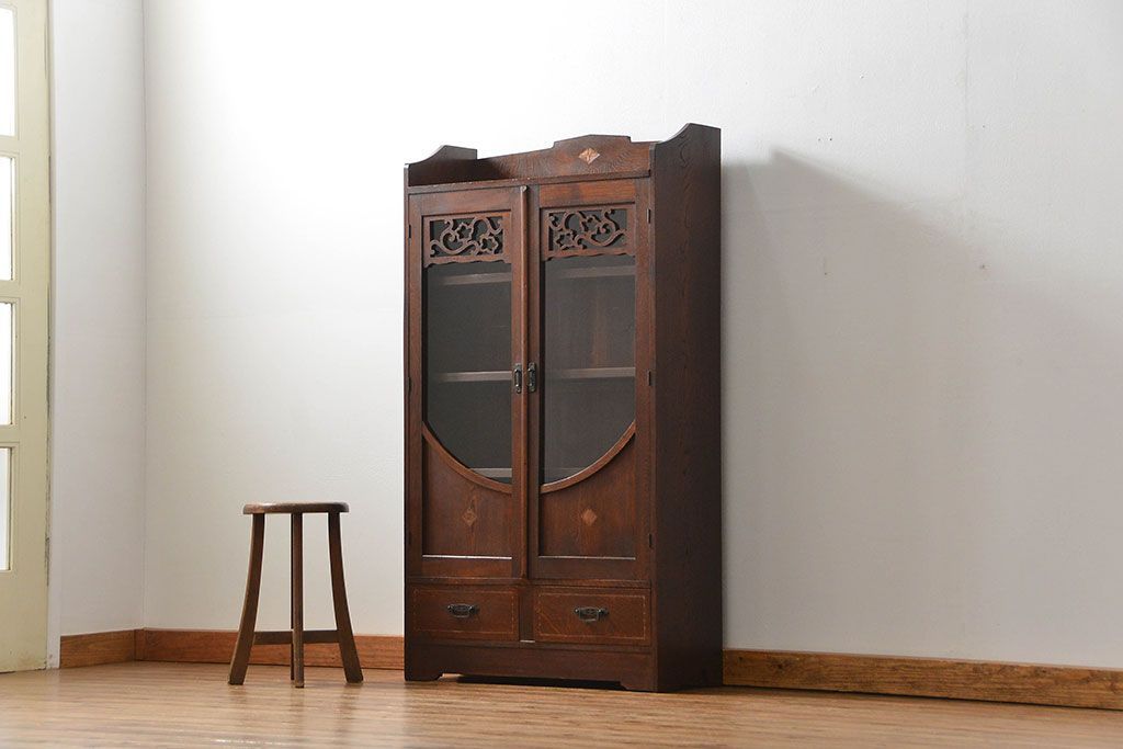 アンティーク家具 大正ロマン 象嵌入りの大振りな本箱(ブックケース、本棚)