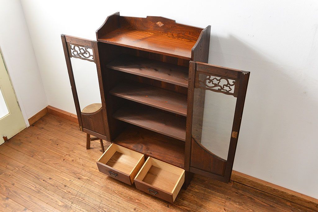 大正ロマン 象嵌入りの大振りな本箱(ブックケース、本棚)です。