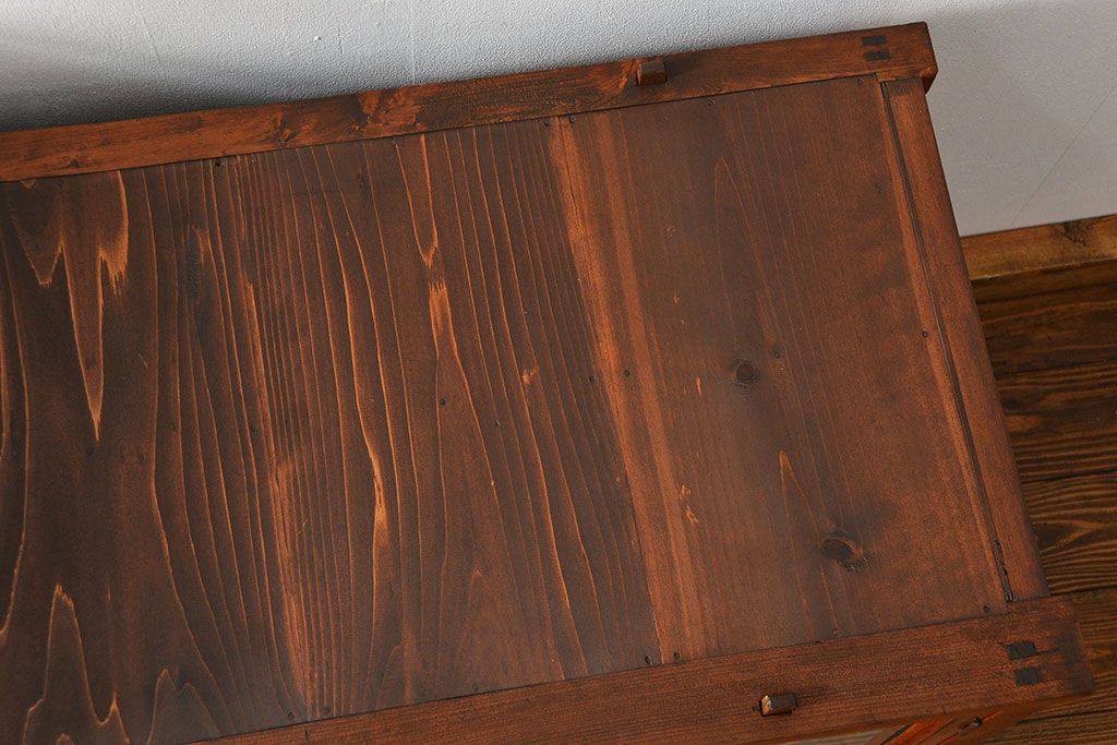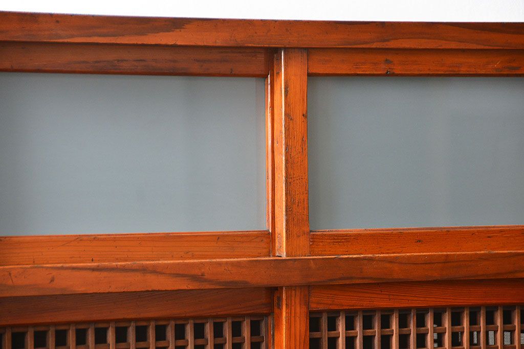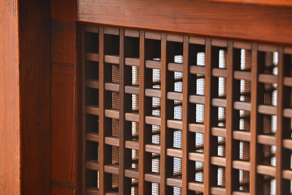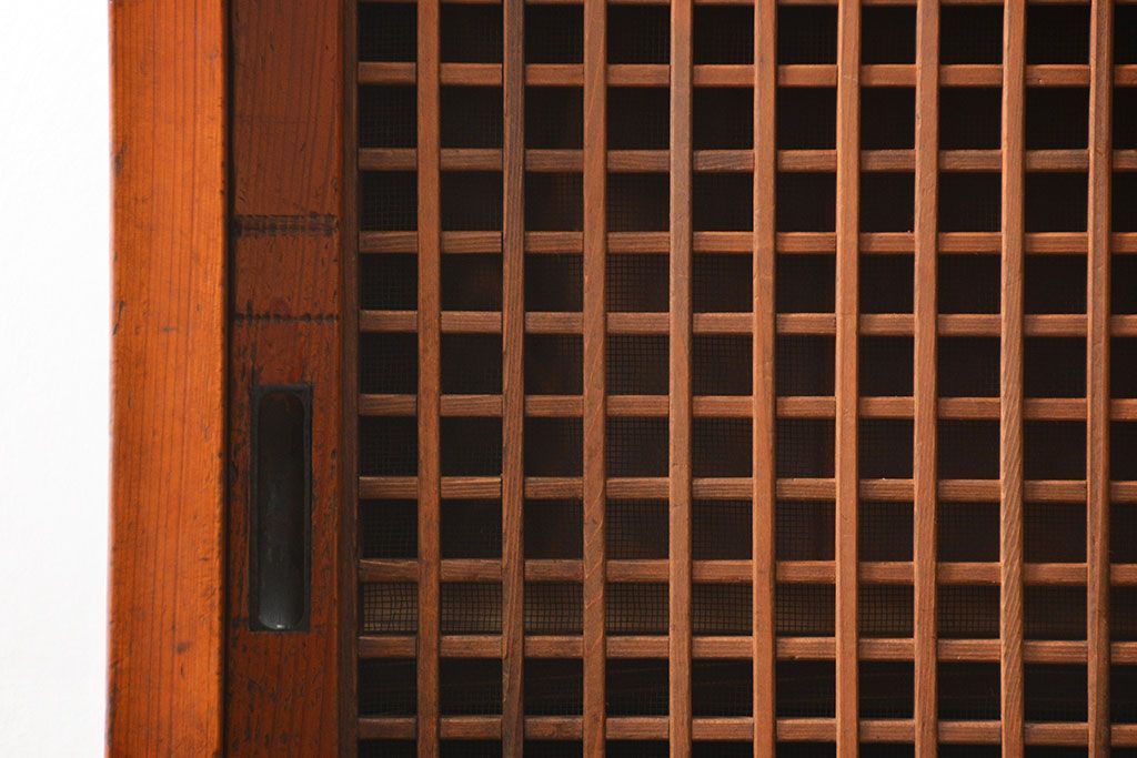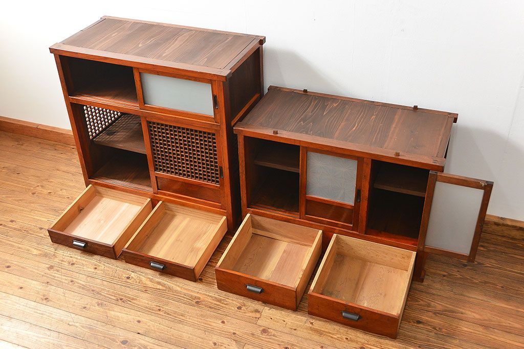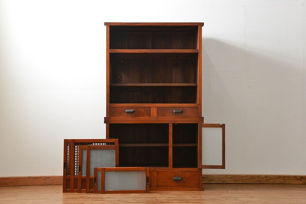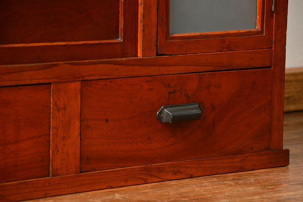 アンティーク家具 古民具・骨董 格子引き戸二段重ね茶箪笥(水屋箪笥、収納棚)
