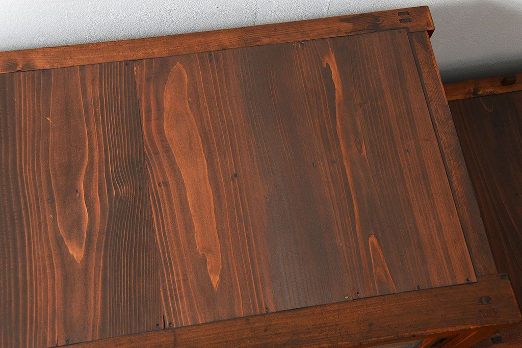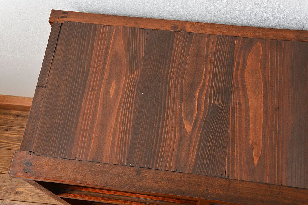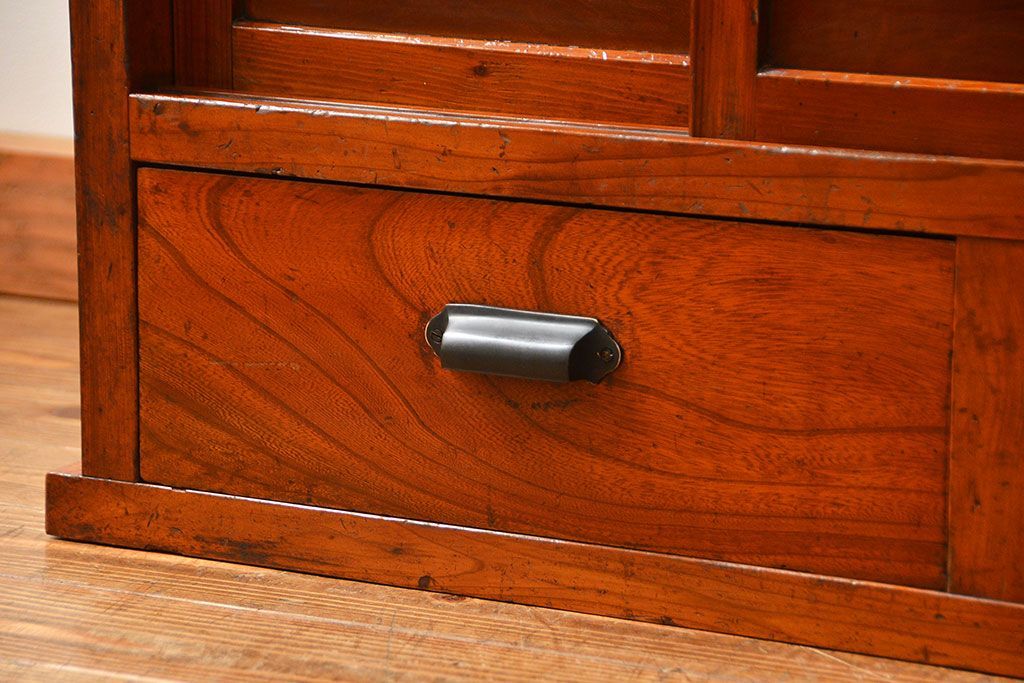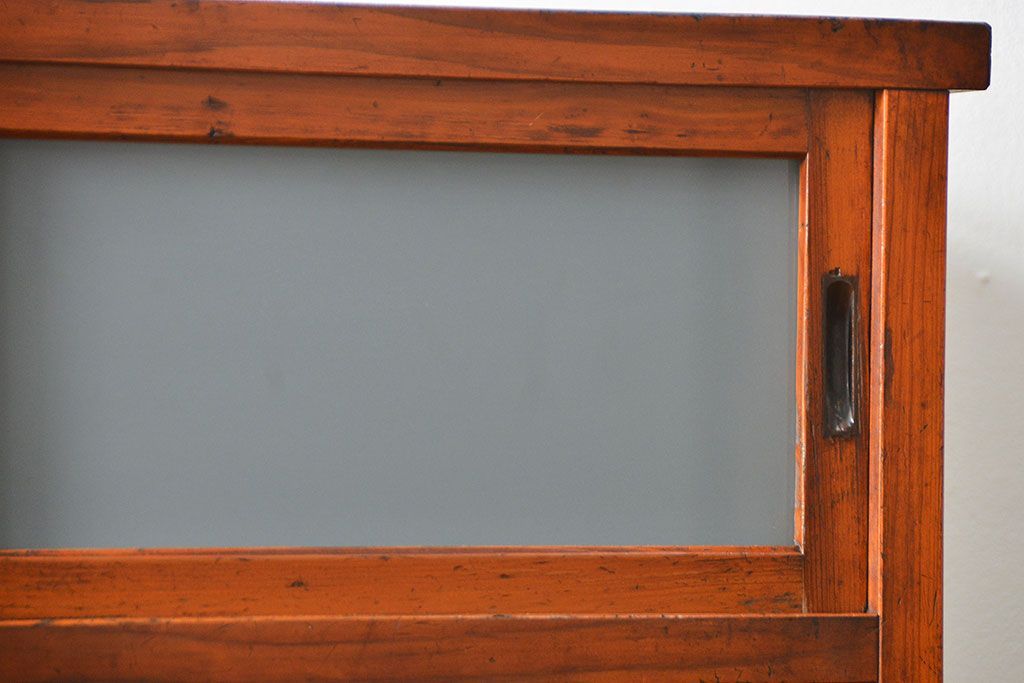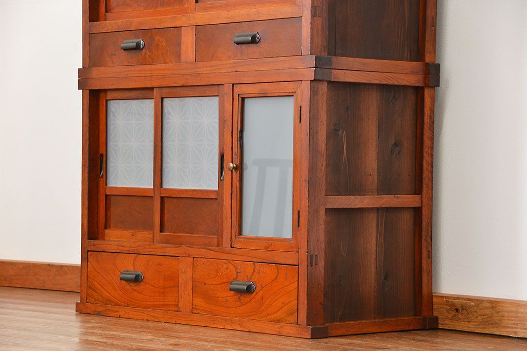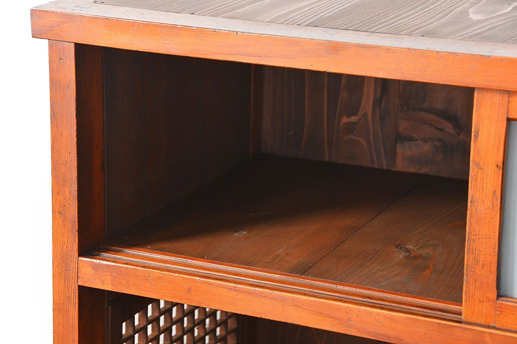 古民具・骨董 格子引き戸二段重ね茶箪笥(水屋箪笥、収納棚)です。