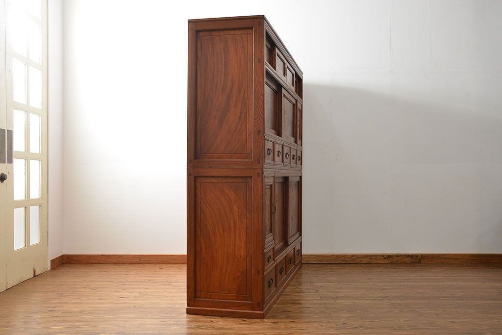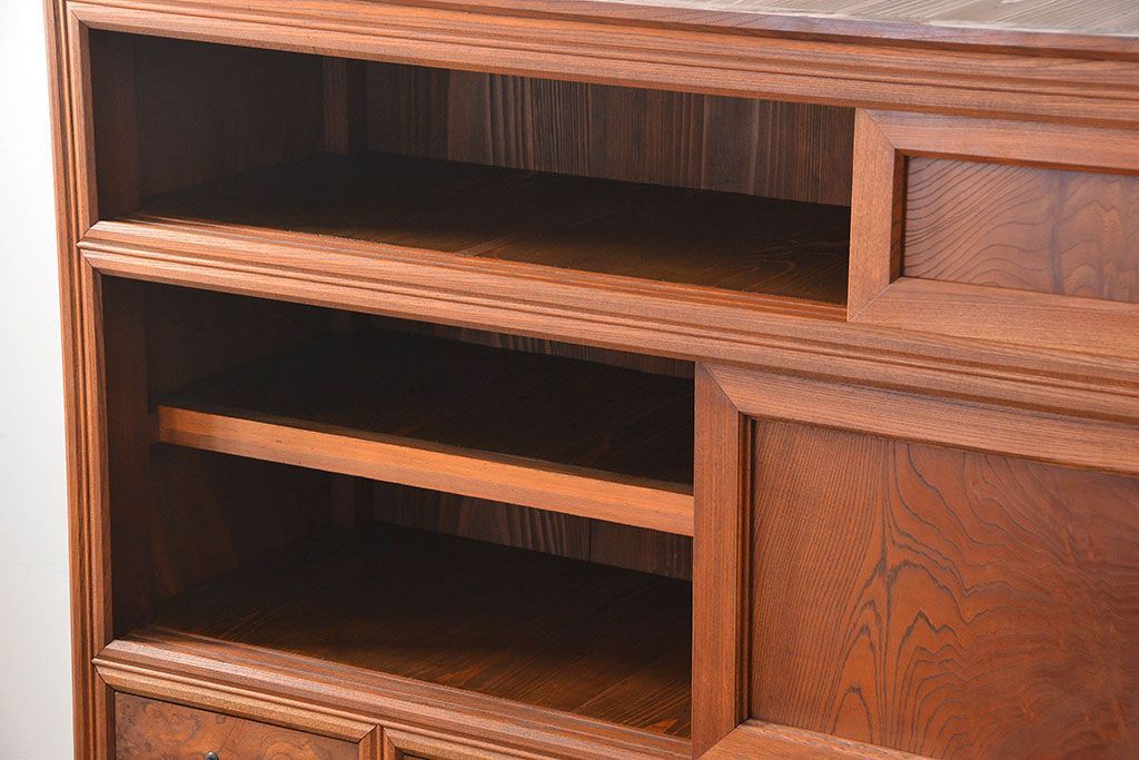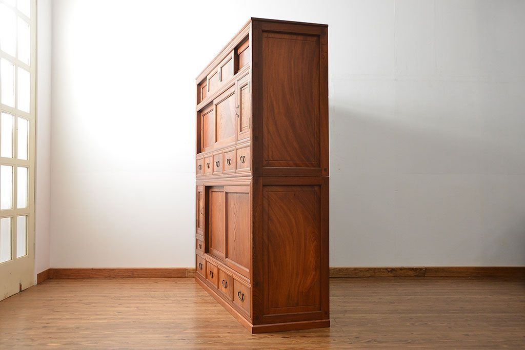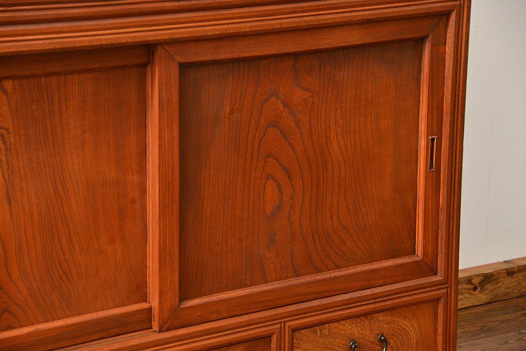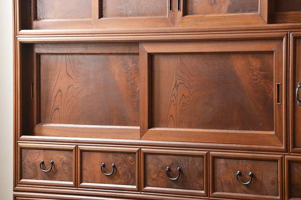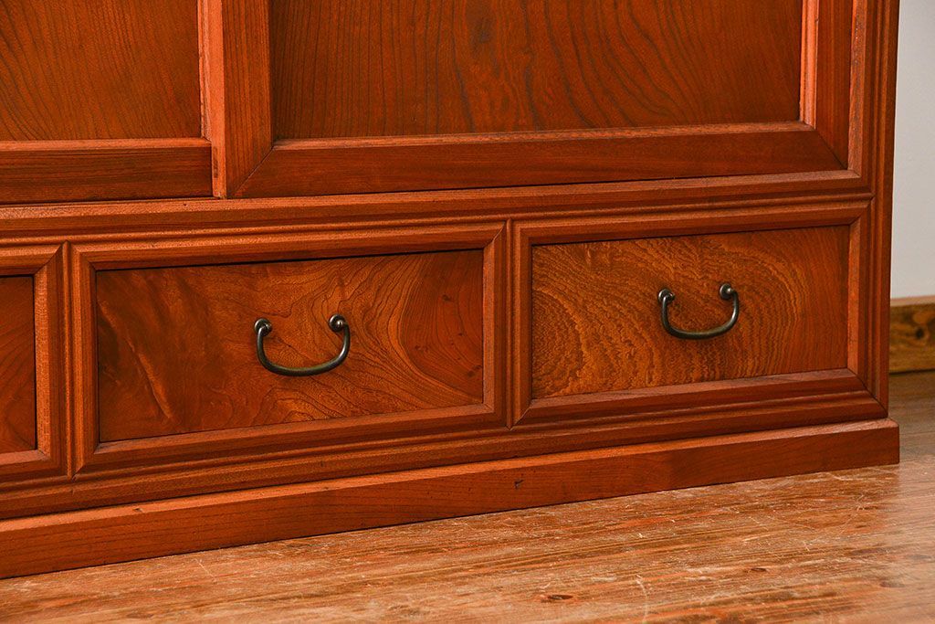 ラフジュ工房> 骨董・美術品 > アンティーク家具 古民具・骨董 最高級特別注文造り 三方欅無垢材の二段重ね水屋箪笥(茶箪笥、収納棚、食器棚)