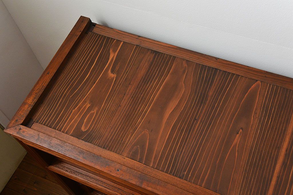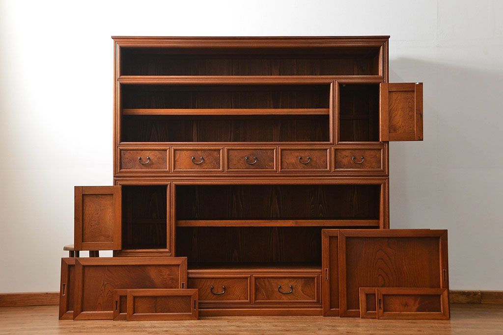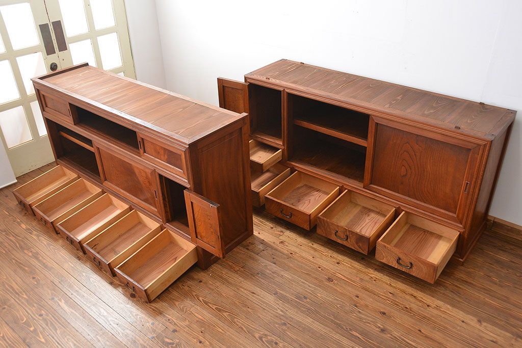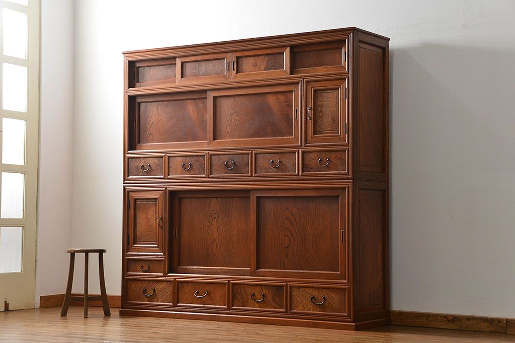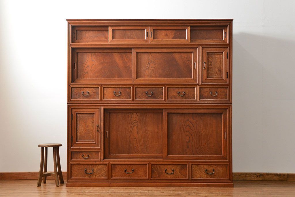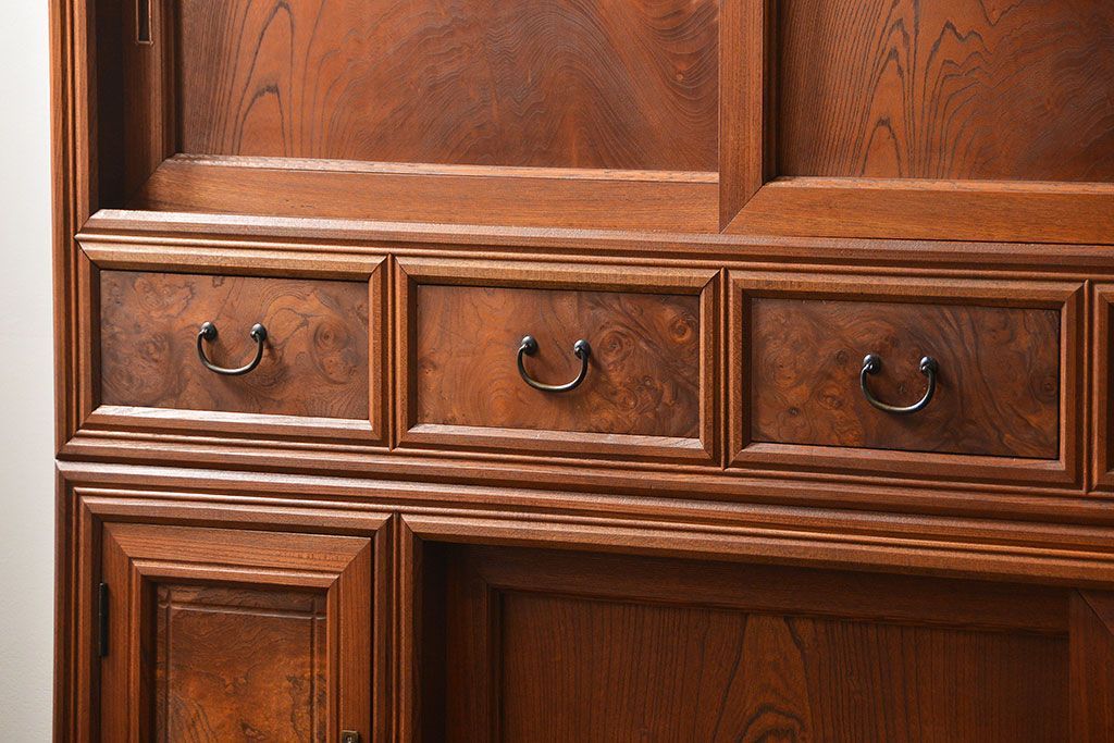 ラフジュ工房> 骨董・美術品 > アンティーク家具 古民具・骨董 最高級特別注文造り 三方欅無垢材の二段重ね水屋箪笥(茶箪笥、収納棚、食器棚)