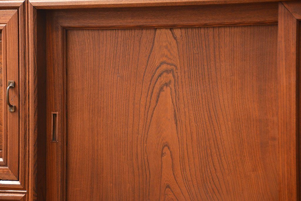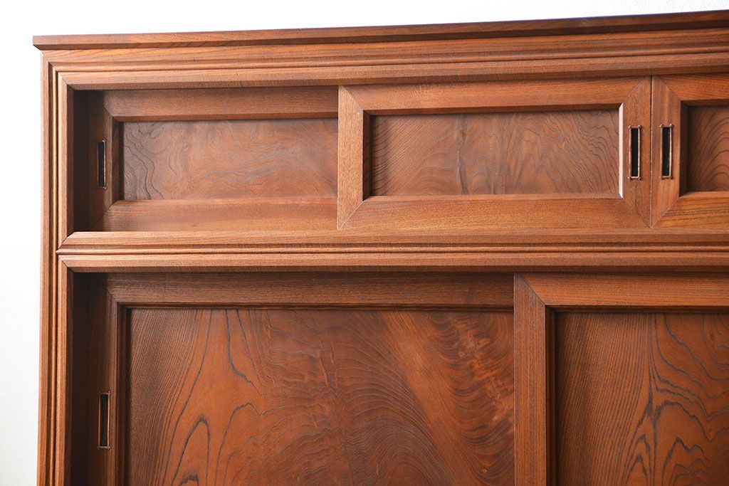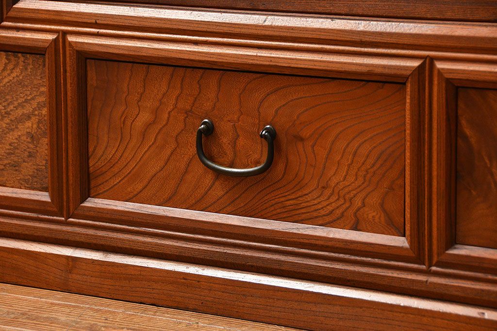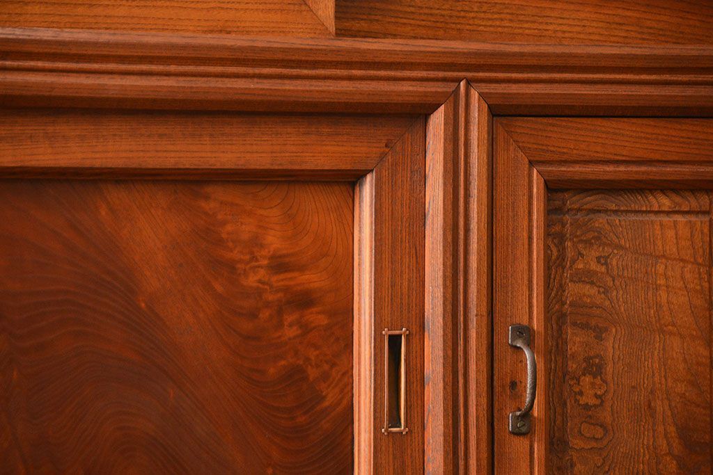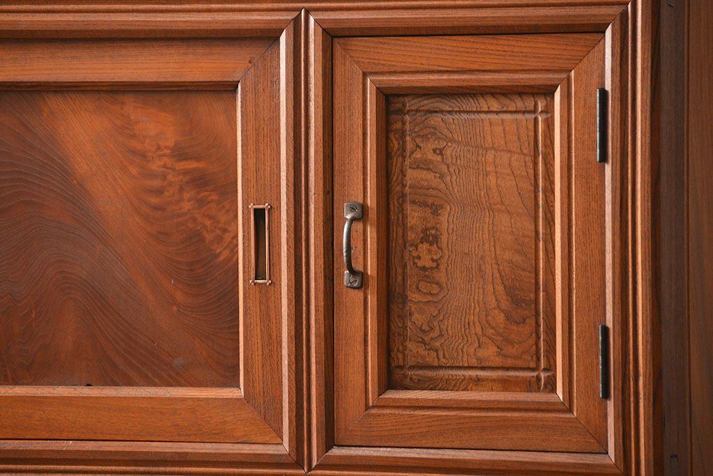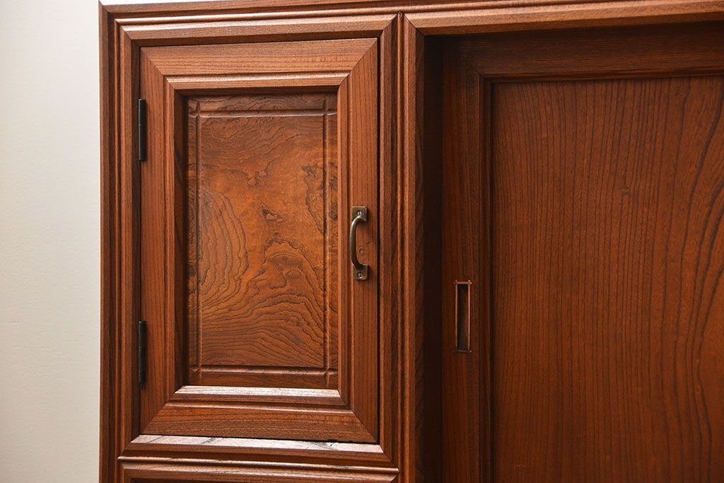 ラフジュ工房> 和箪笥> 水屋箪笥 > アンティーク家具 古民具・骨董 最高級特別注文造り 三方欅無垢材の二段重ね水屋箪笥(茶箪笥、収納棚、食器棚)