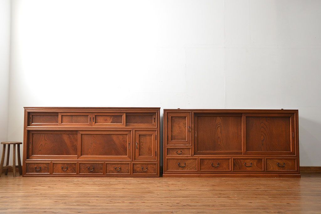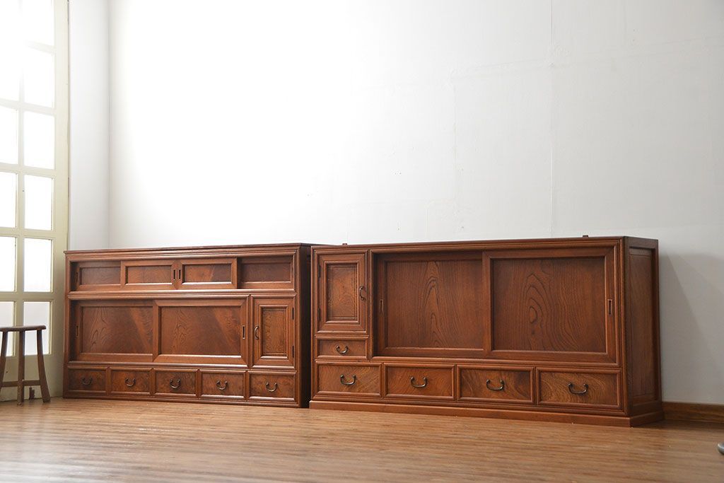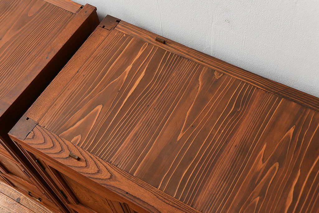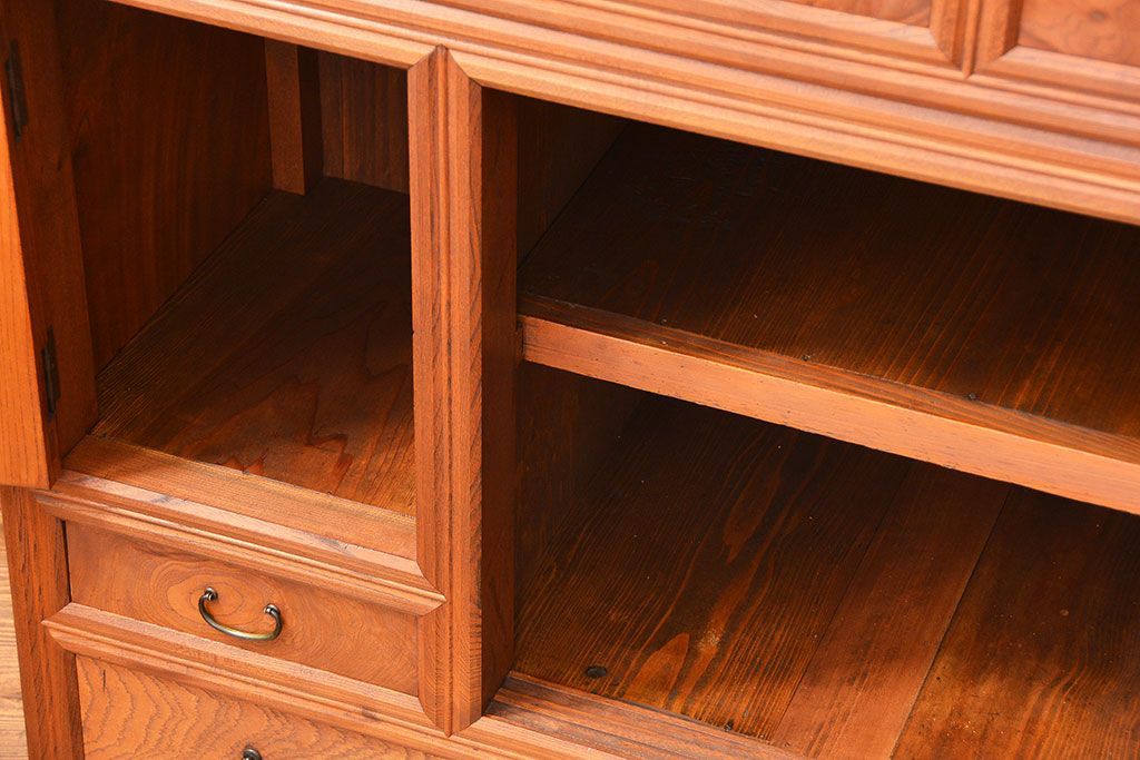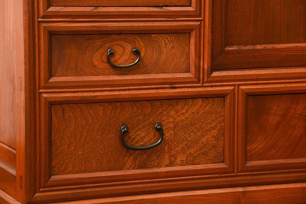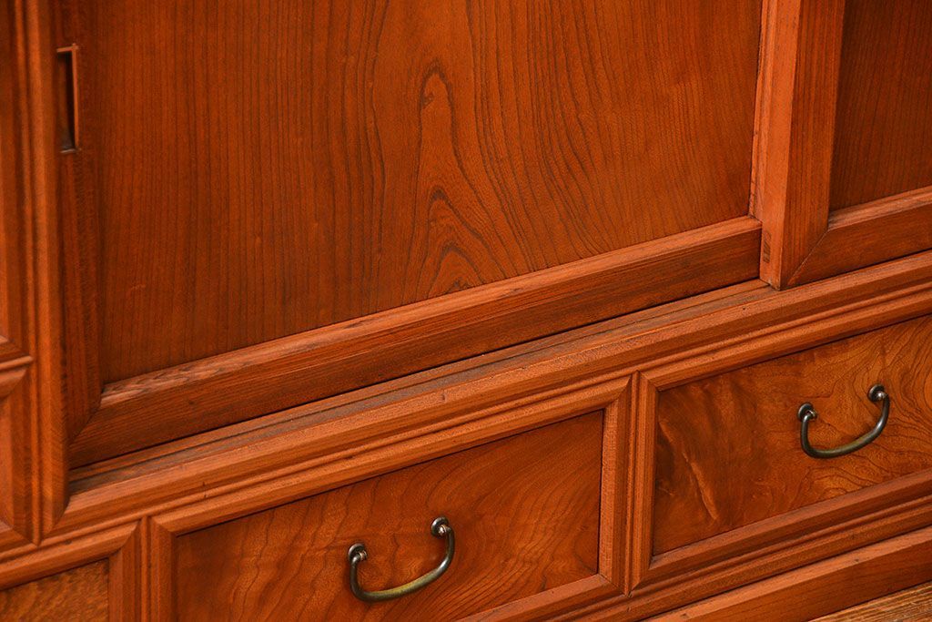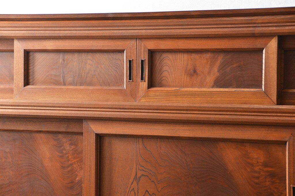 ラフジュ工房> 和箪笥> 水屋箪笥 > アンティーク家具 古民具・骨董 最高級特別注文造り 三方欅無垢材の二段重ね水屋箪笥(茶箪笥、収納棚、食器棚)