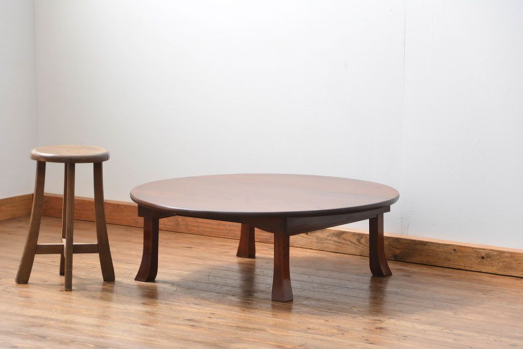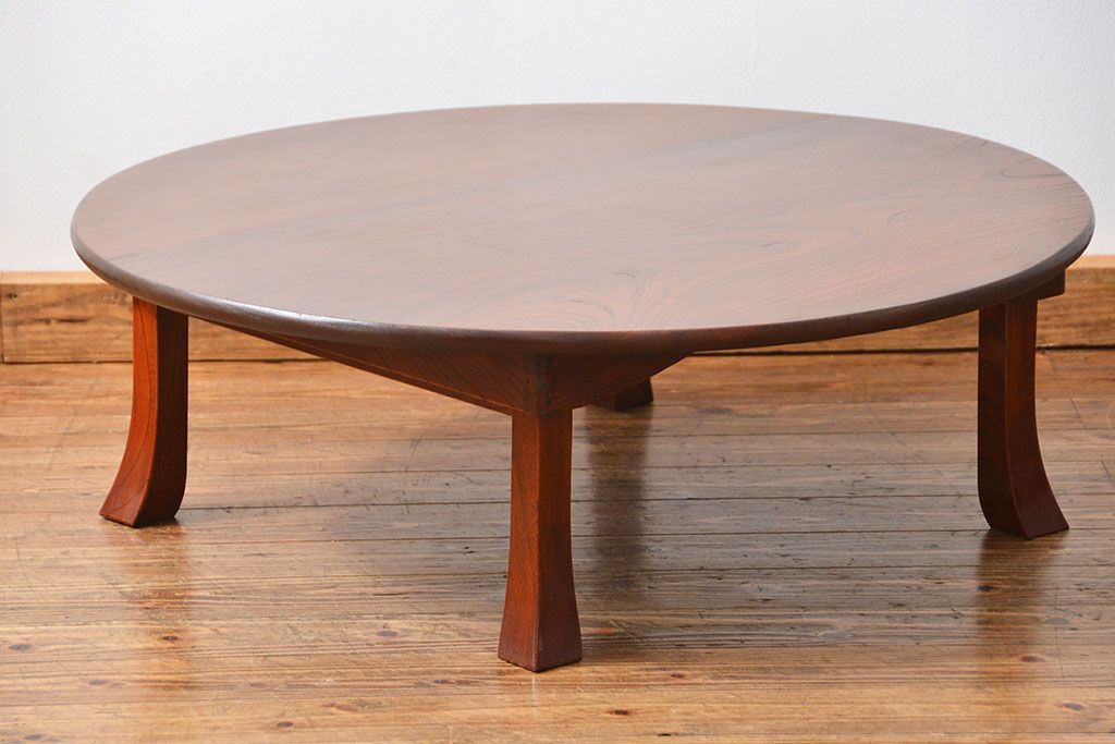 アンティーク家具 アンティーク 総欅材の大きな丸型ちゃぶ台(テーブル、机)