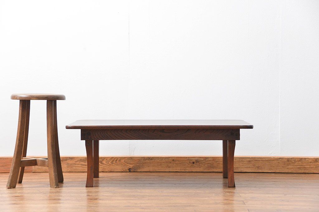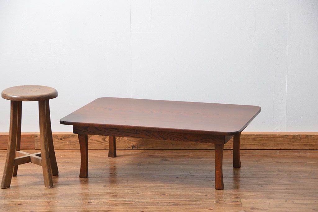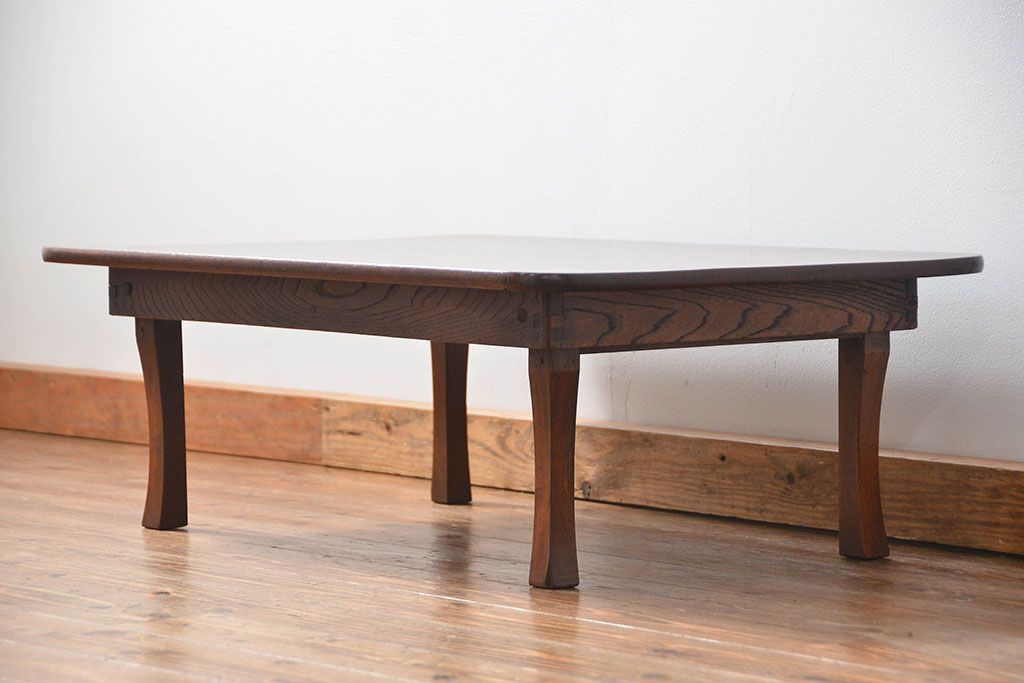 アンティーク家具 アンティーク 古い栓材の角型ちゃぶ台(1)(テーブル、机)