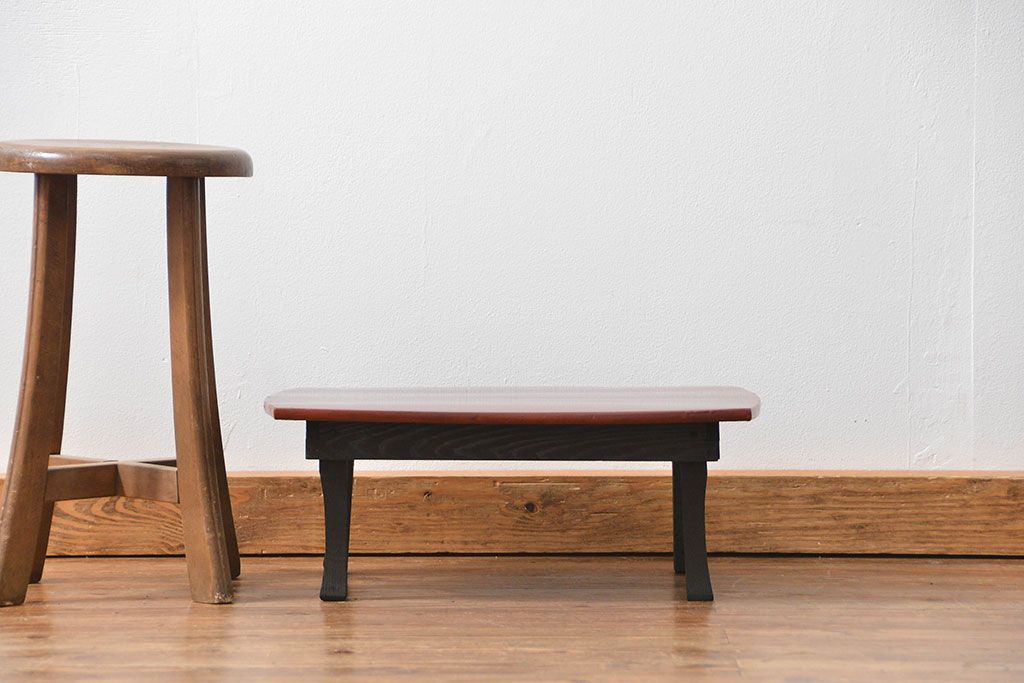 レトロ家具 古い木のレトロな朱塗り小さなちゃぶ台(テーブル、机)