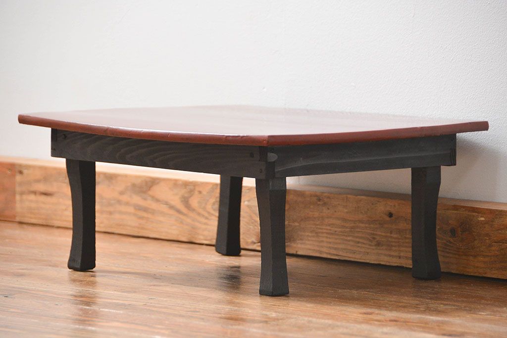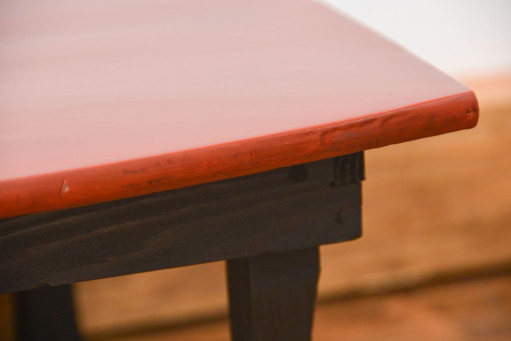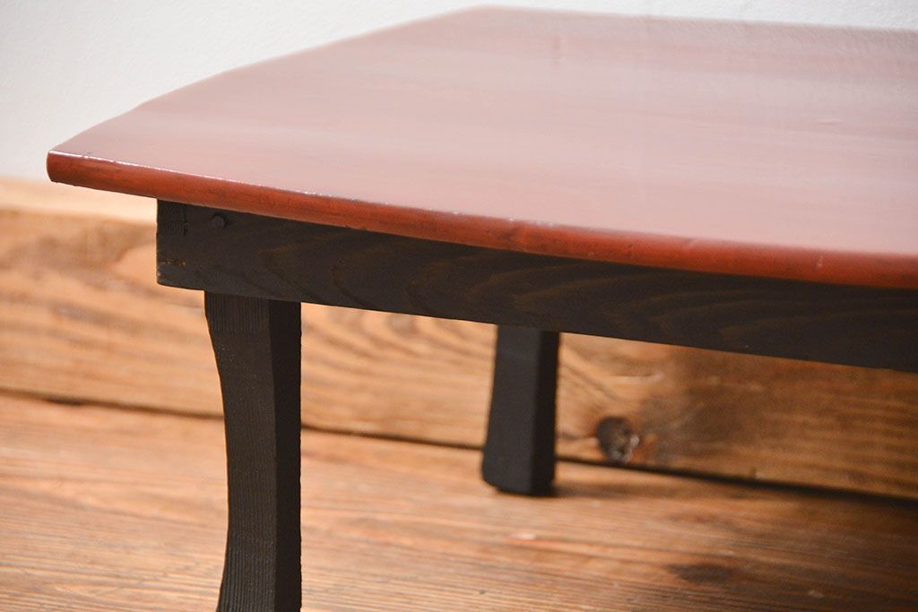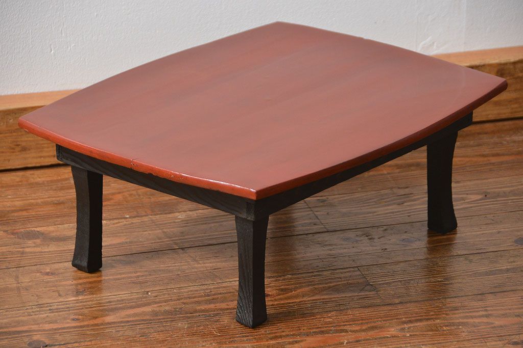 古い木のレトロな朱塗り小さなちゃぶ台(テーブル、机)です。