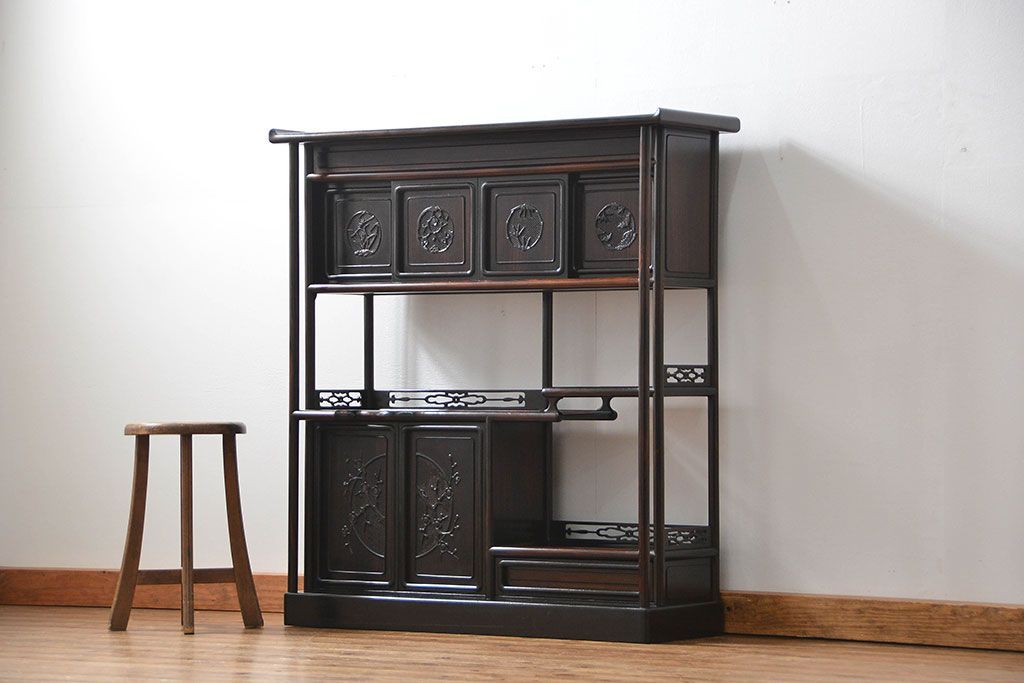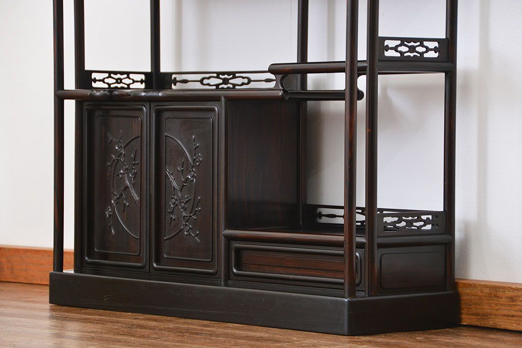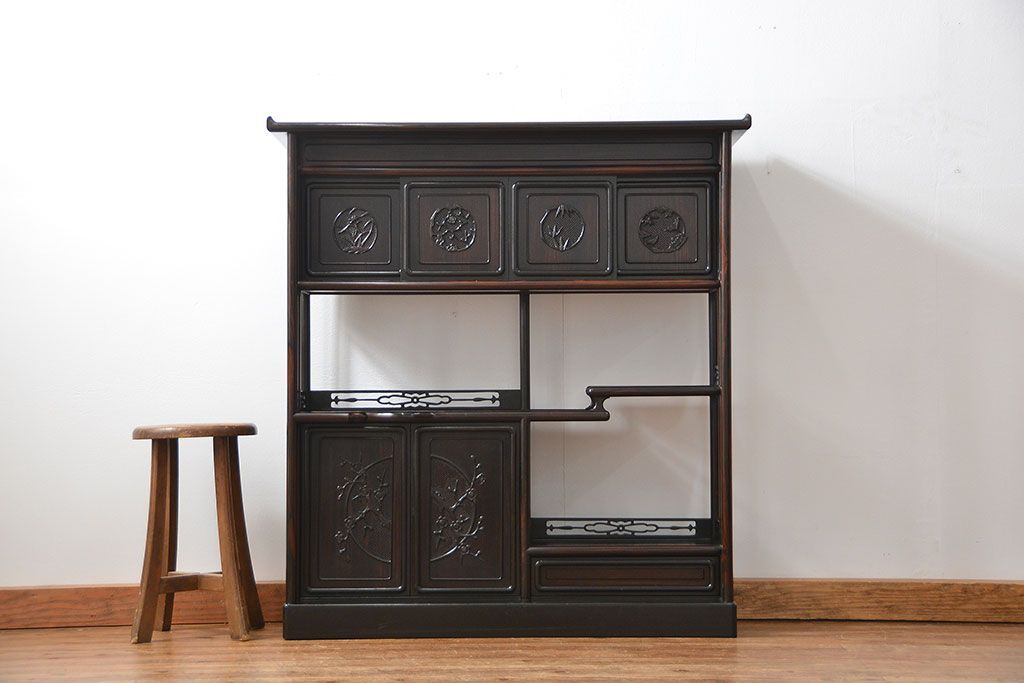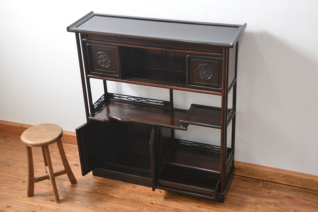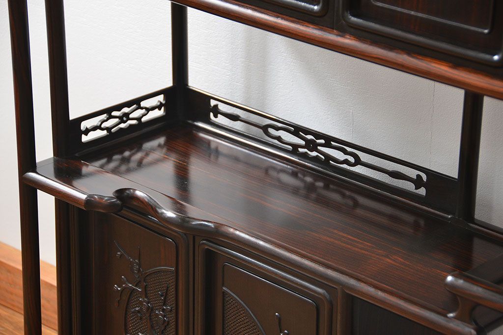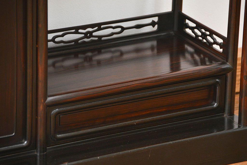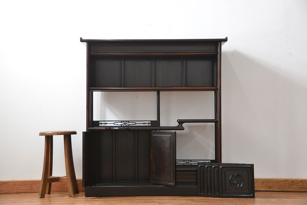 ラフジュ工房> 骨董・美術品 > アンティーク家具 古民具・骨董 黒檀材の重厚な飾り棚(欠損有り)(茶棚、時代箪笥)