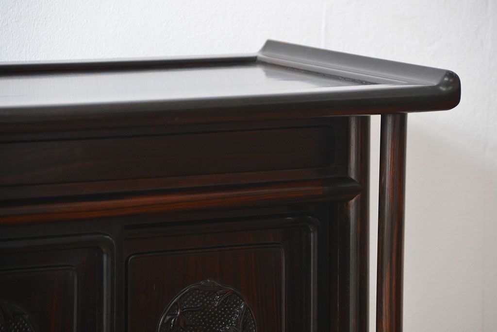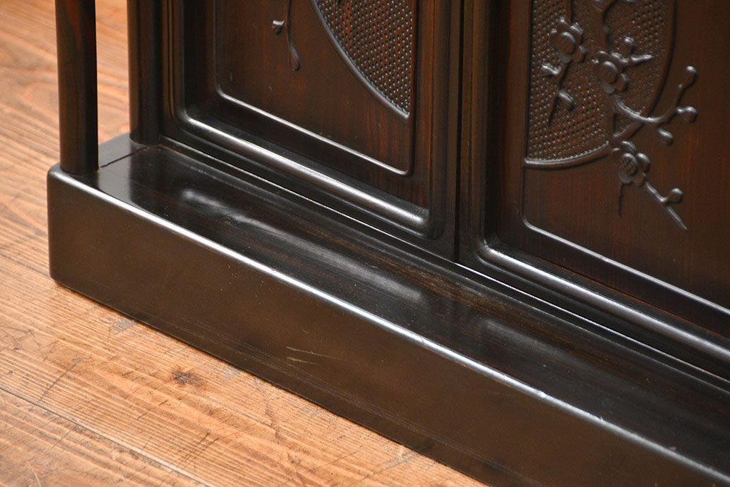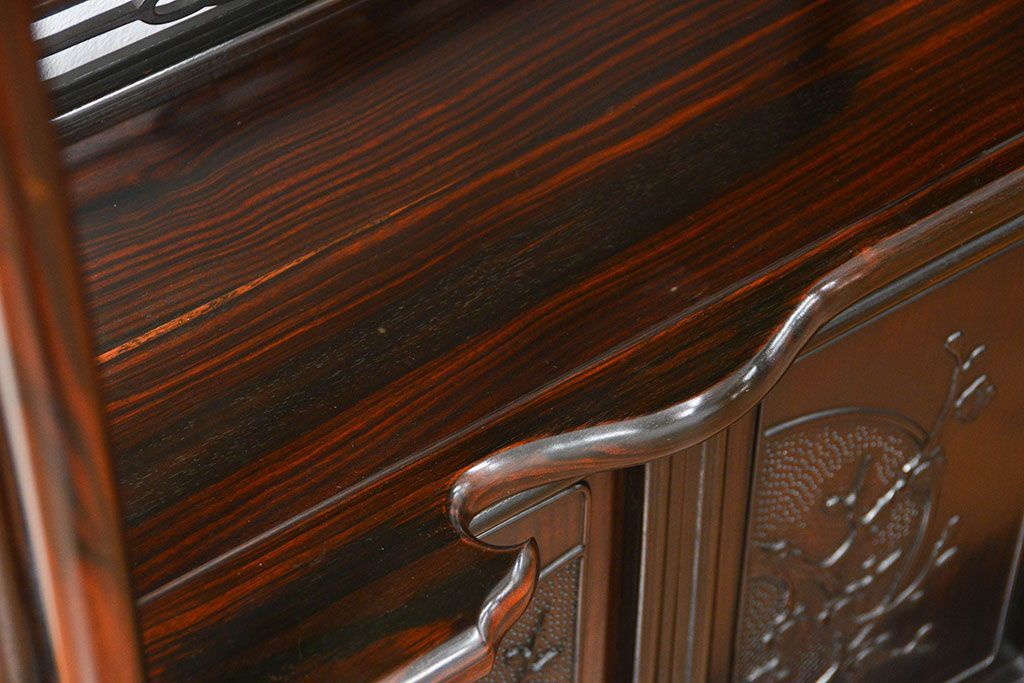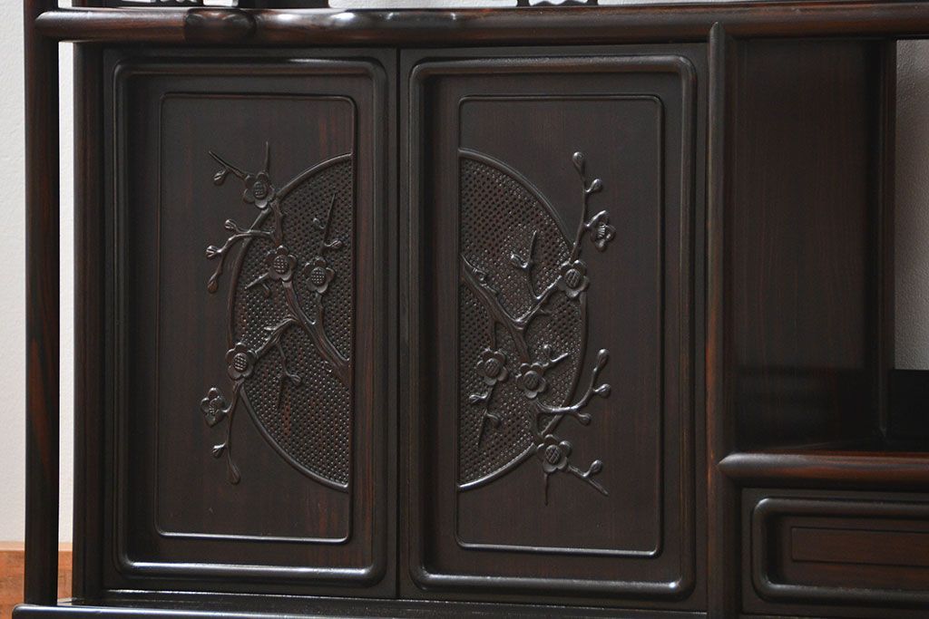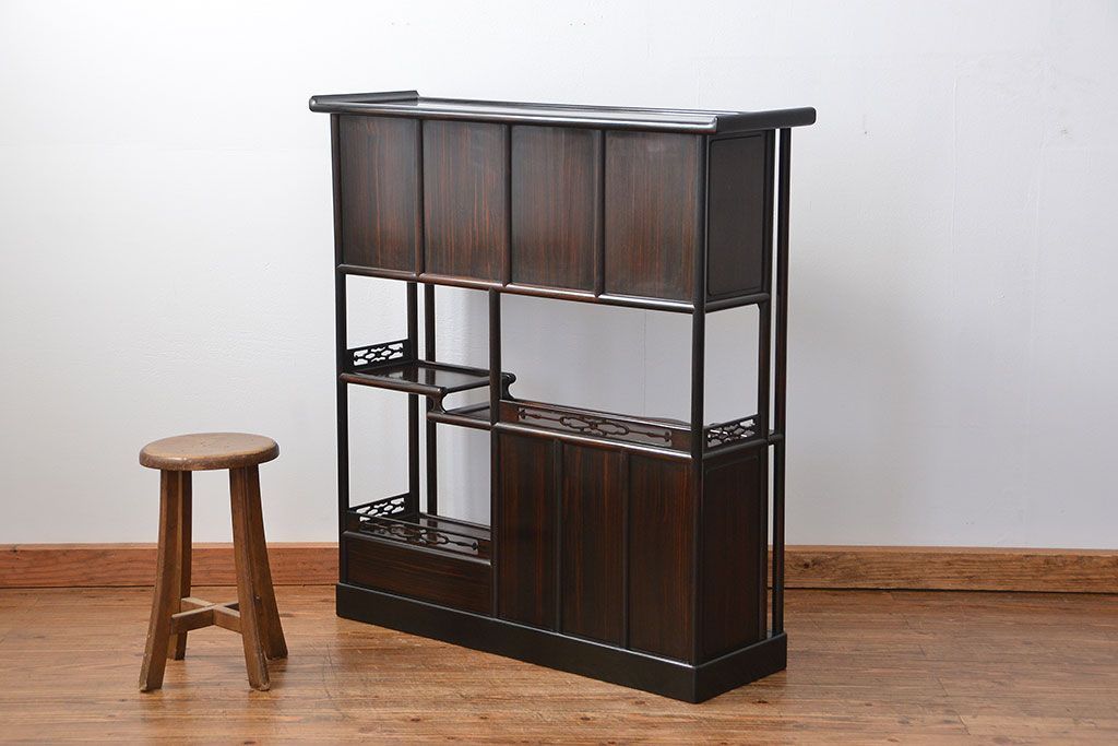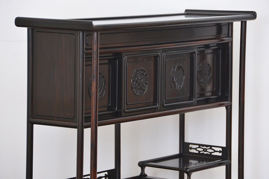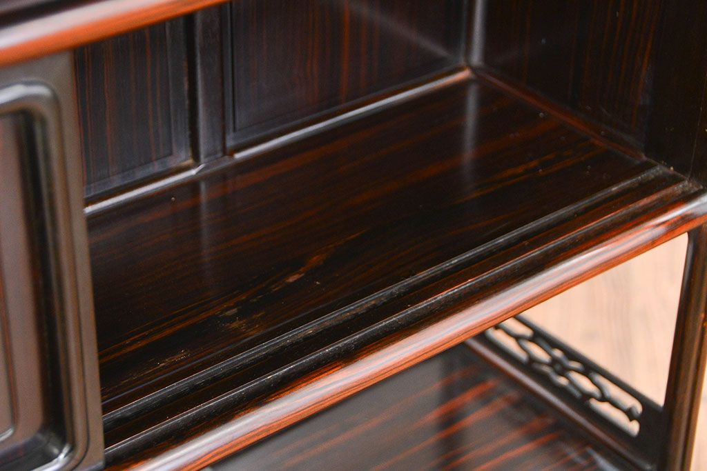 ラフジュ工房> 骨董・美術品 > アンティーク家具 古民具・骨董 黒檀材の重厚な飾り棚(欠損有り)(茶棚、時代箪笥)