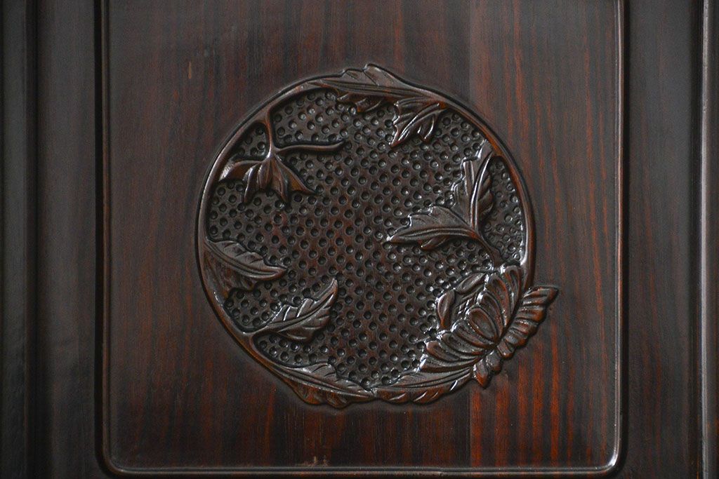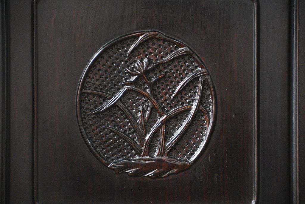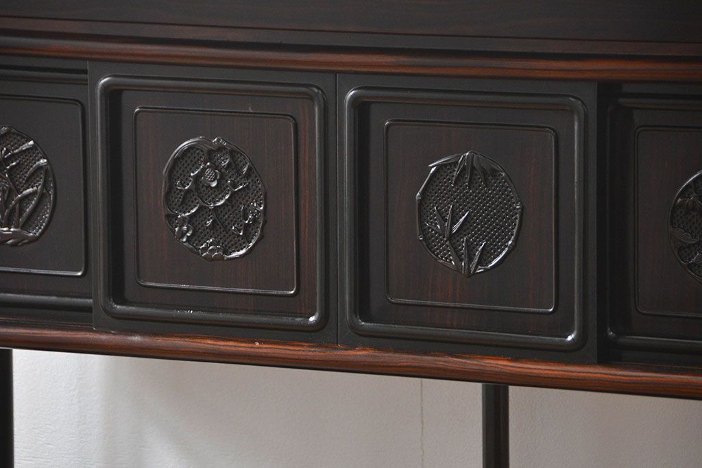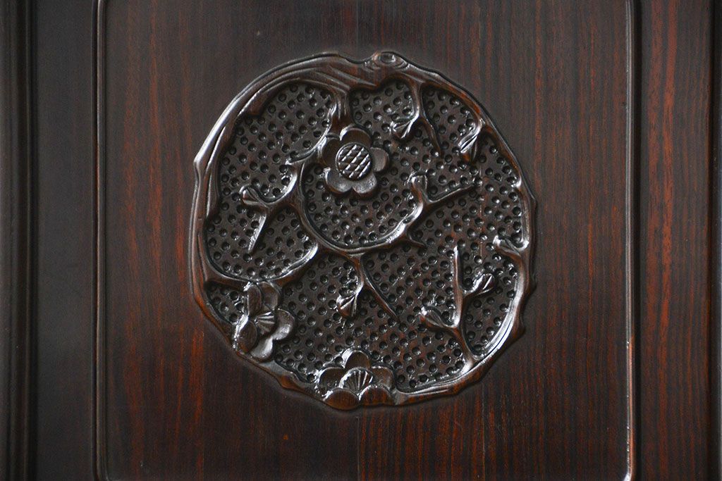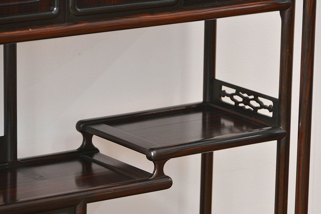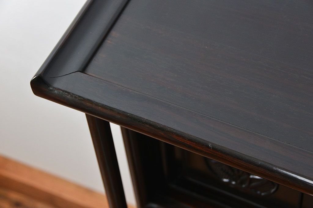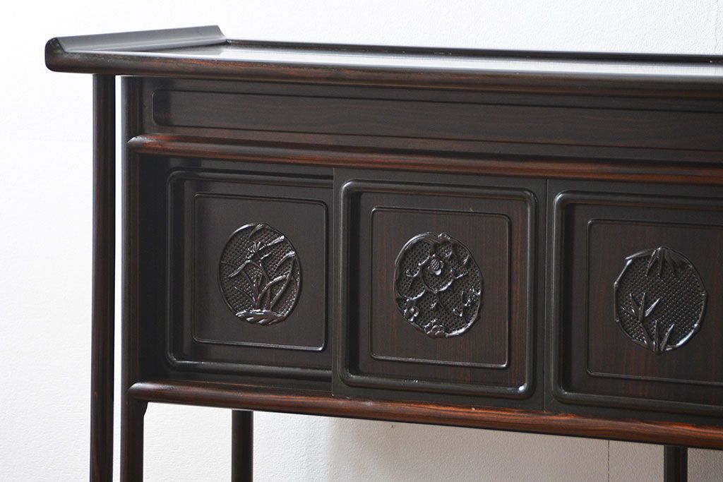 ラフジュ工房> 骨董・美術品 > アンティーク家具 古民具・骨董 黒檀材の重厚な飾り棚(欠損有り)(茶棚、時代箪笥)