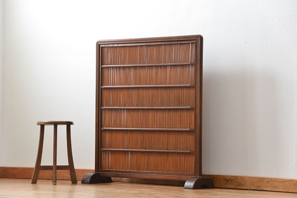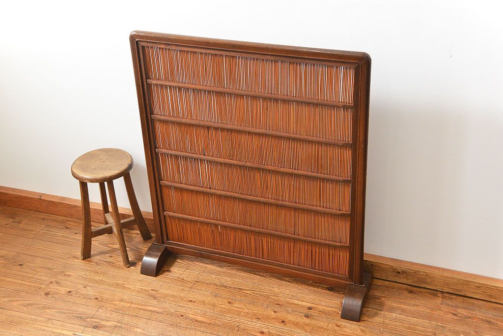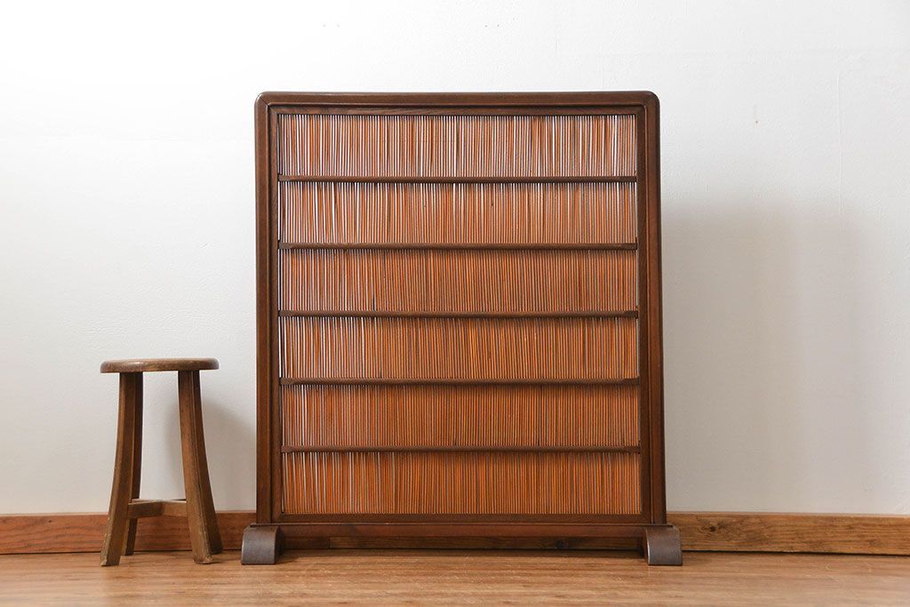 アンティーク 上品な桑材と葦(アシ)の衝立(パーテーション)