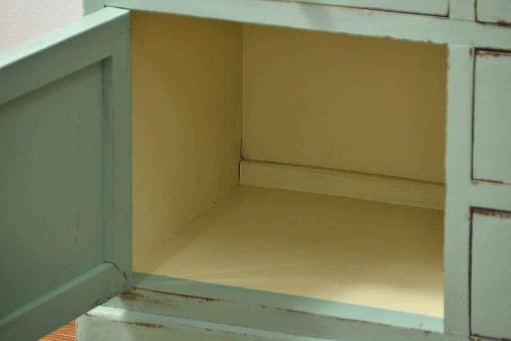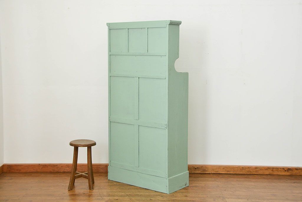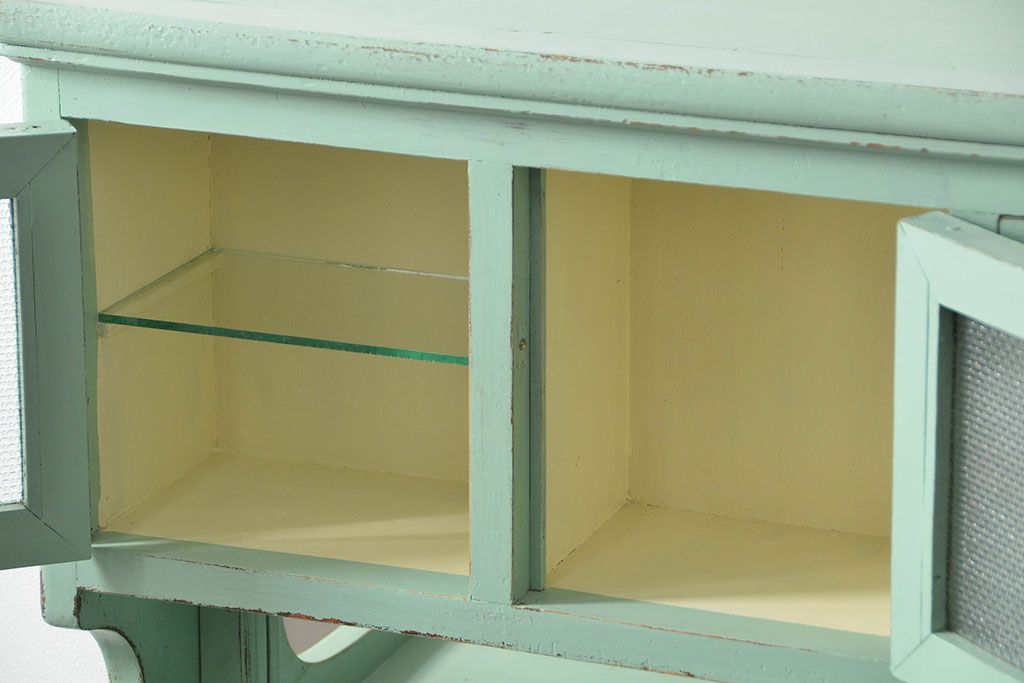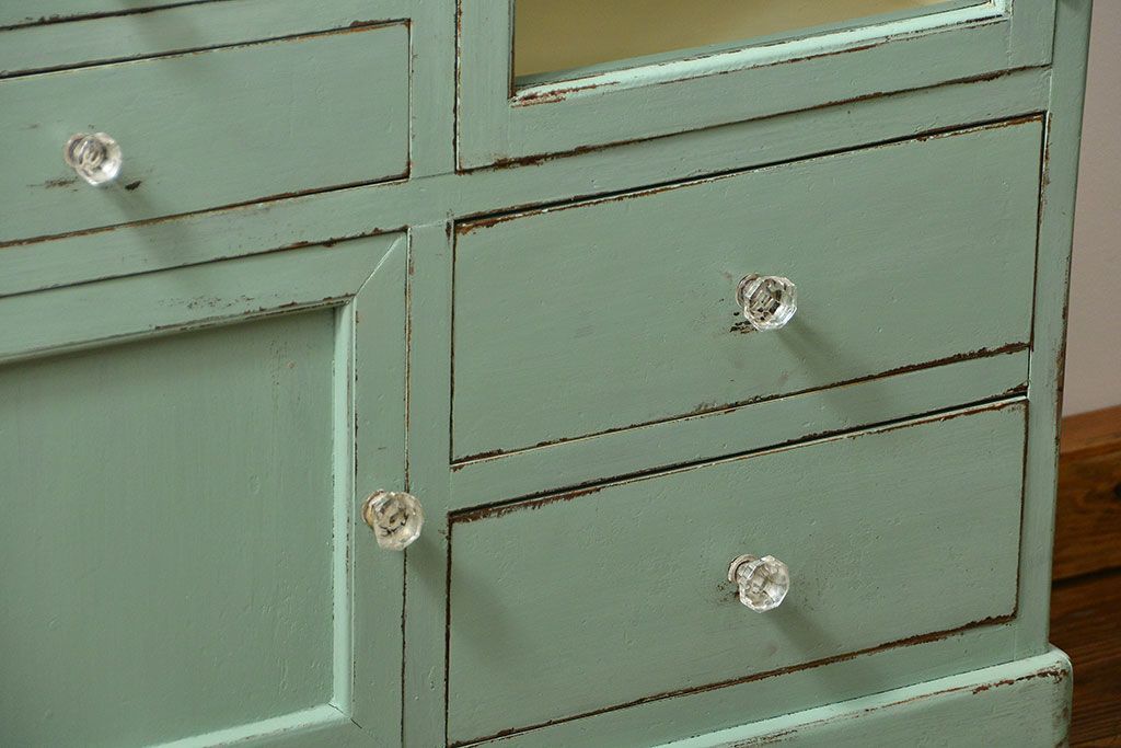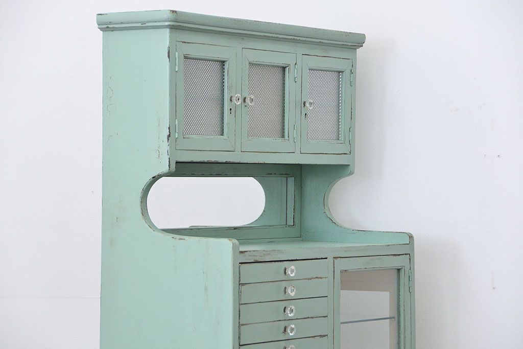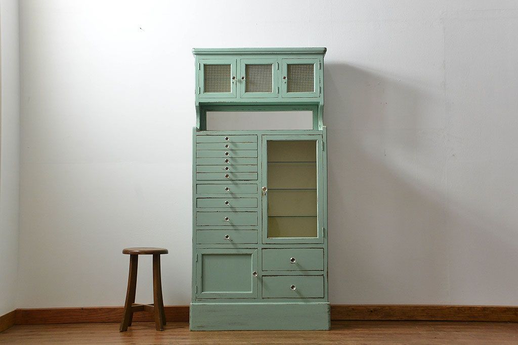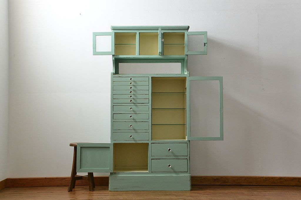 アンティークペイント ガラスの取っ手のデンタルキャビネット(デンタルケース、ケビント、ガラスケース)です。