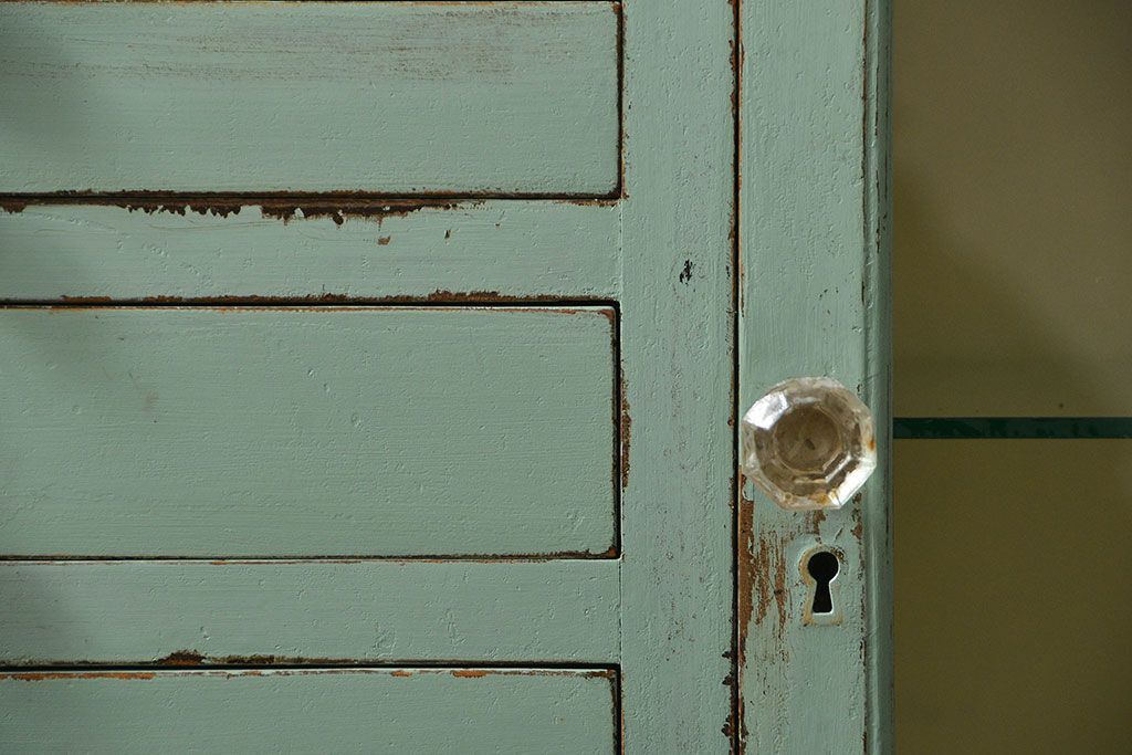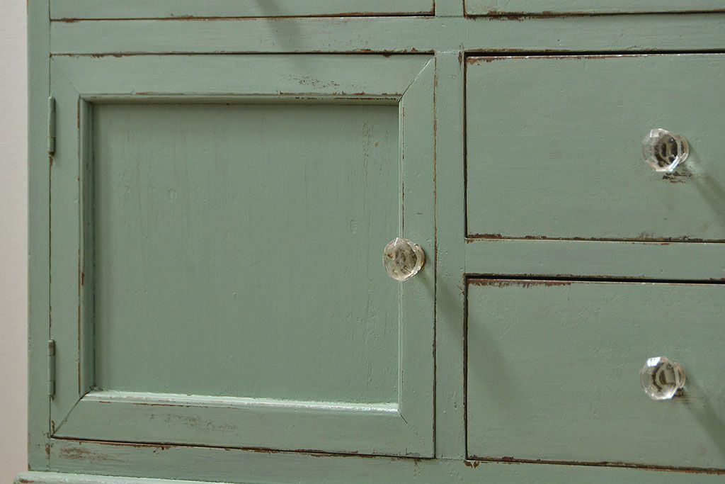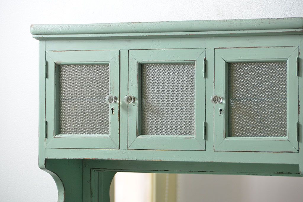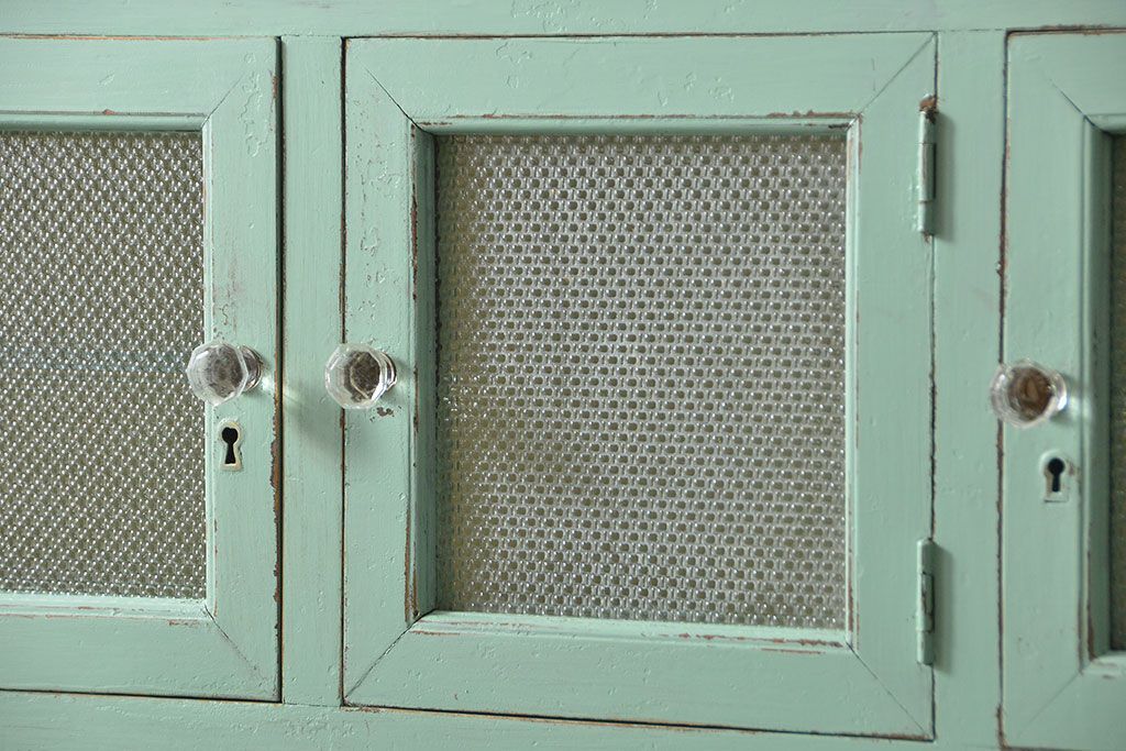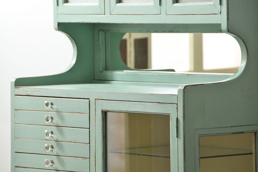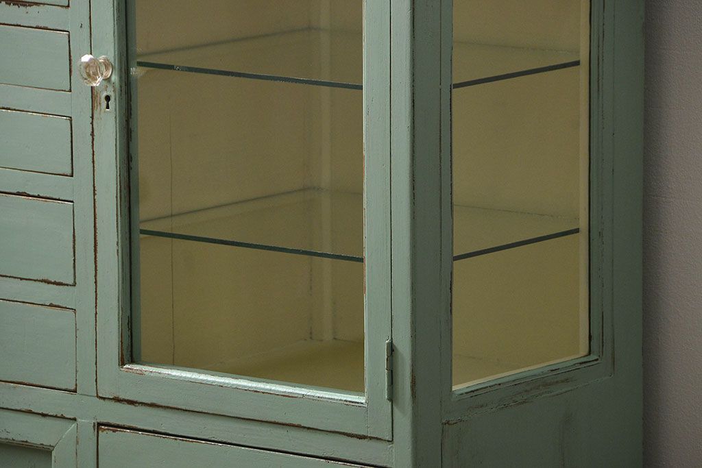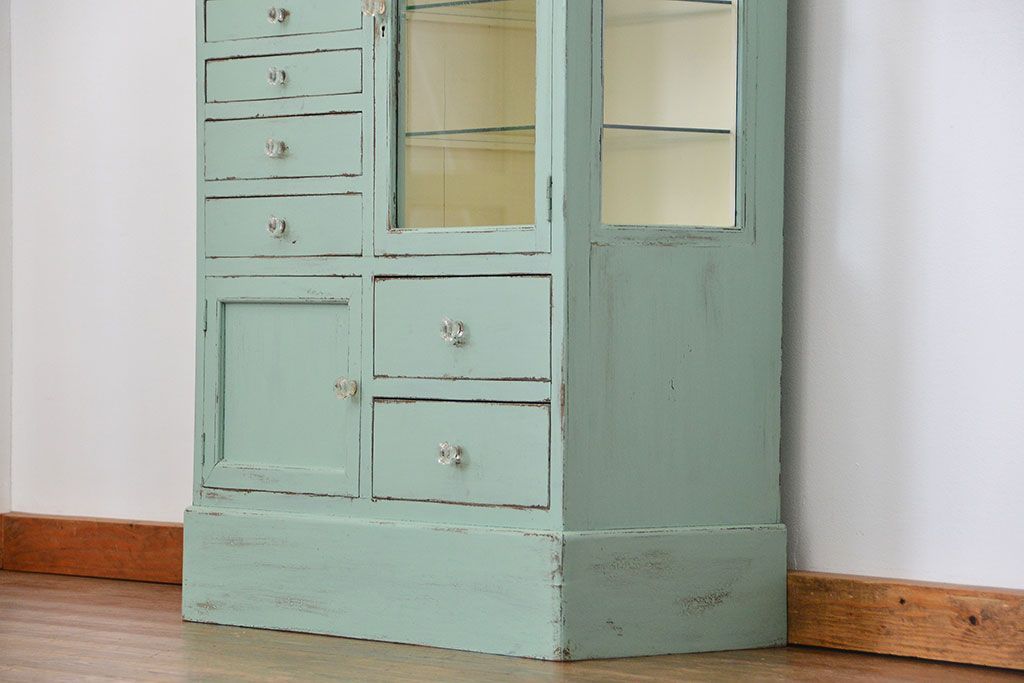 アンティーク家具 アンティークペイント ガラスの取っ手のデンタルキャビネット(デンタルケース、ケビント、ガラスケース)