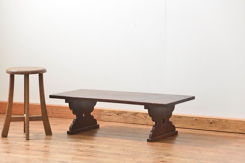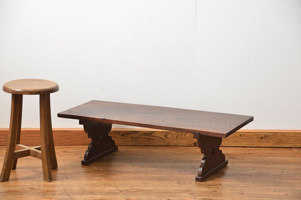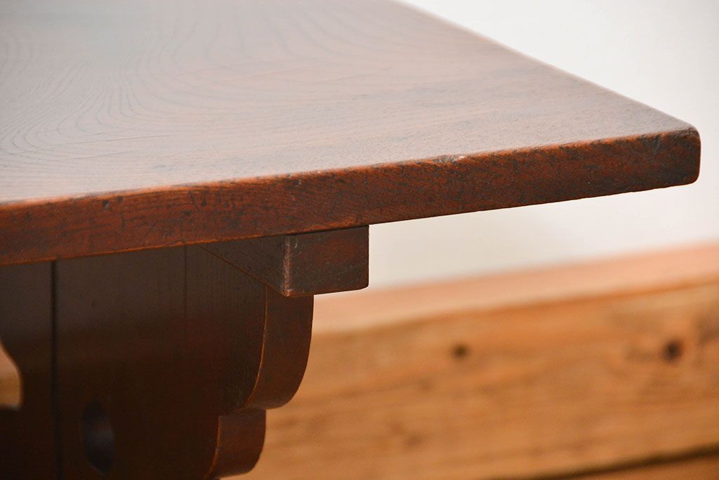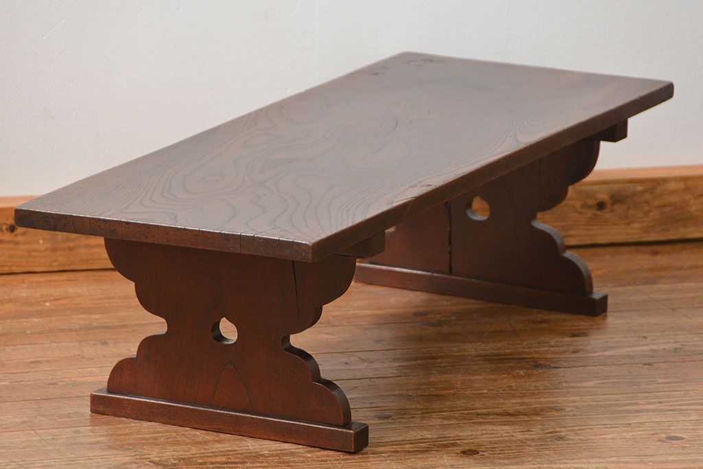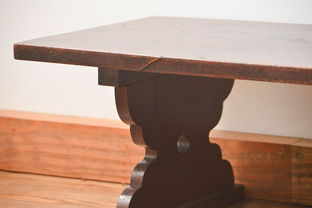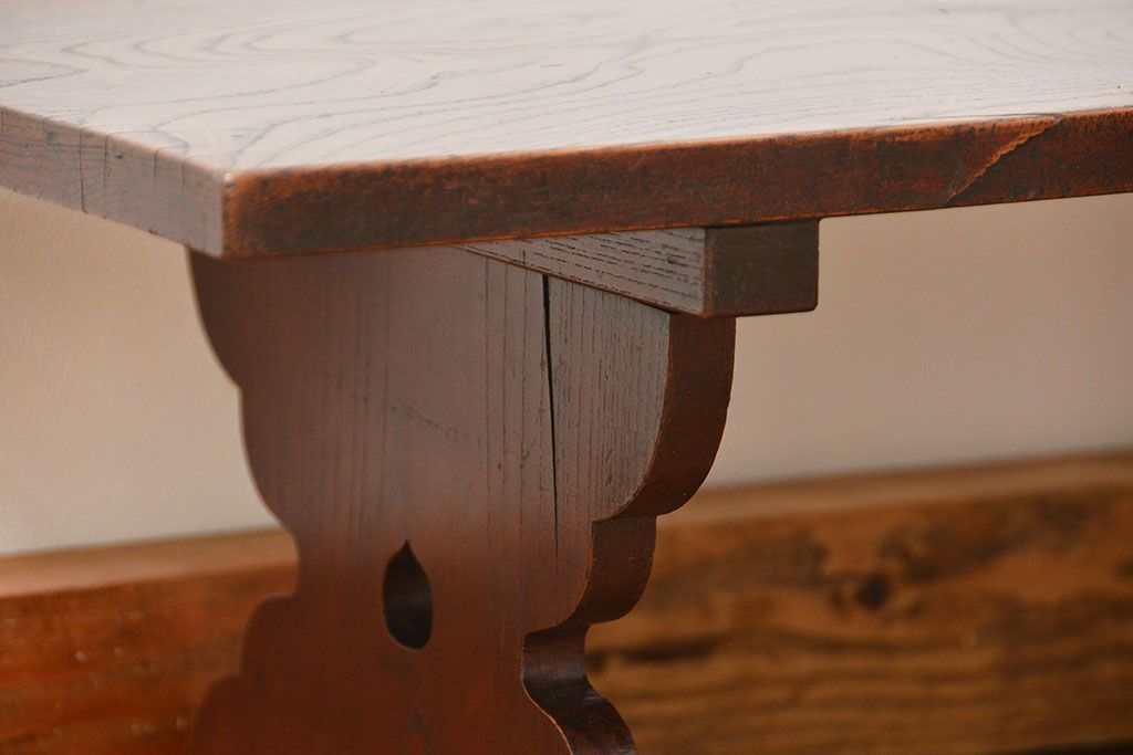 アンティーク家具 古民具・骨董 総欅材の使い込まれた文机(経机、テーブル)