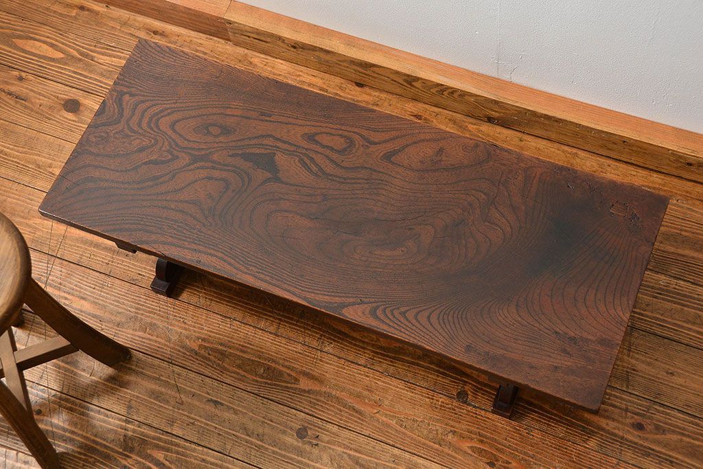 古民具・骨董 総欅材の使い込まれた文机(経机、テーブル) です。