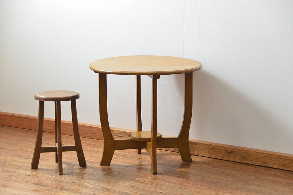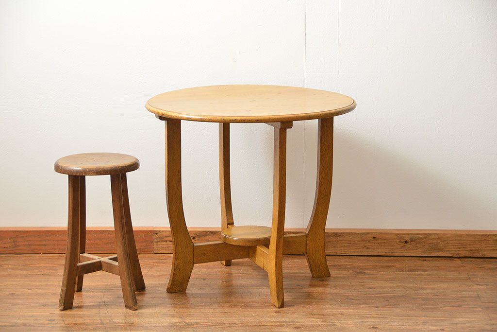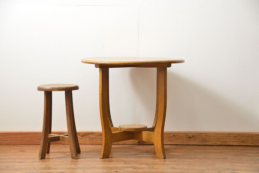 レトロ家具 アンティーク レトロなデザインのラウンドテーブル(丸テーブル、カフェテーブル、コーヒーテーブル、サイドテーブル、センターテーブル)