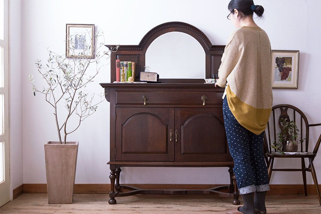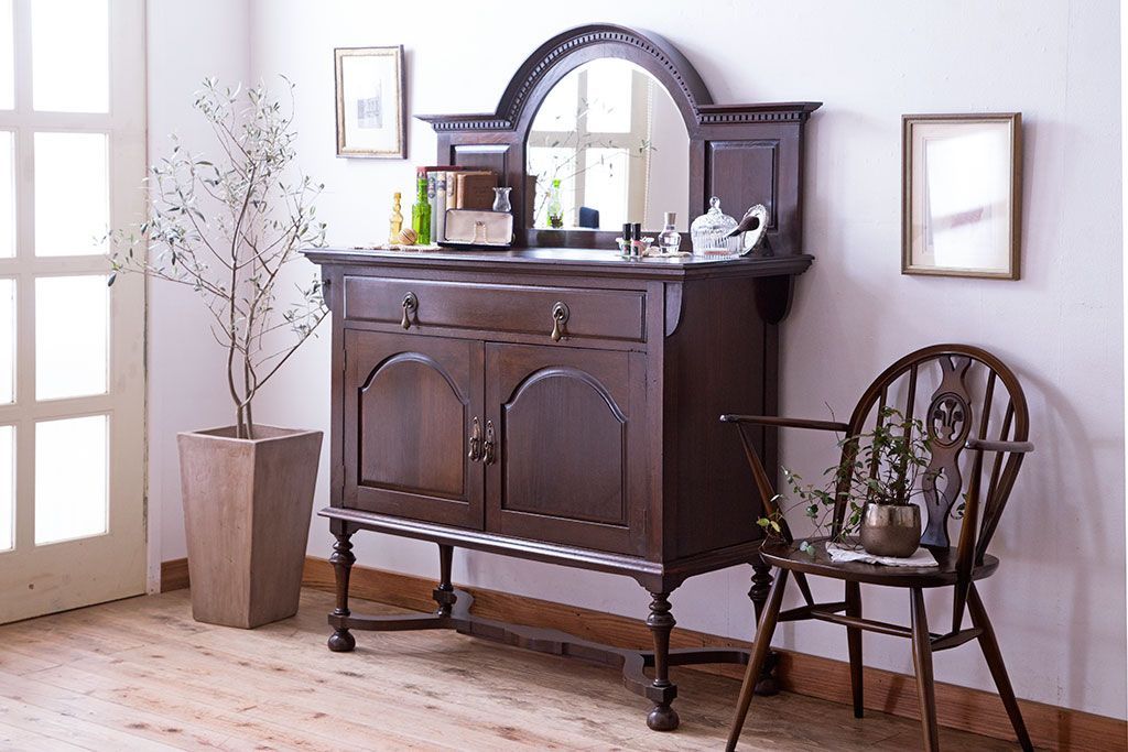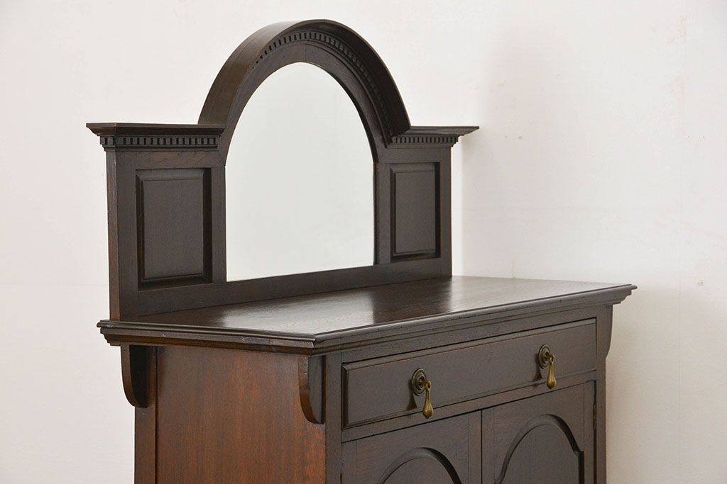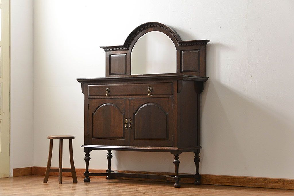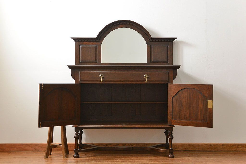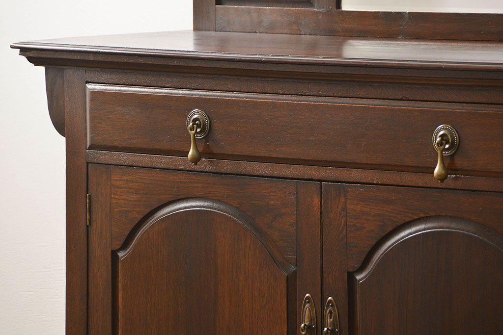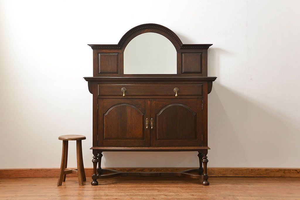 ラフジュ工房> ドレッサー・鏡台 > アンティーク家具 イギリスアンティーク オーク材の美しいミラーチェスト(サイドボード、ドレッシングチェスト)
