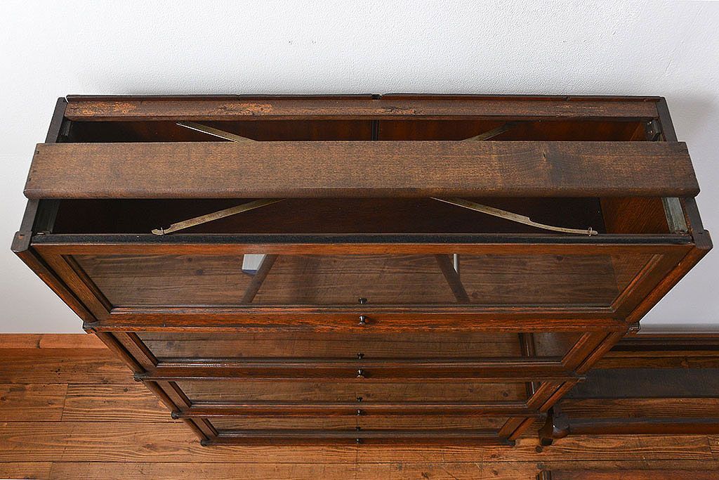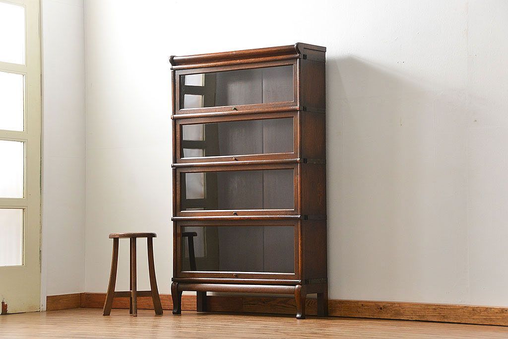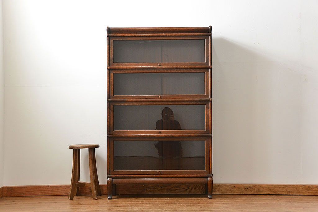 キャビネット・戸棚> 本箱 > アンティーク家具 イギリスアンティーク オーク材 脚付きスタッキングブックケース(2)(本箱、収納棚、書棚、キャビネット)