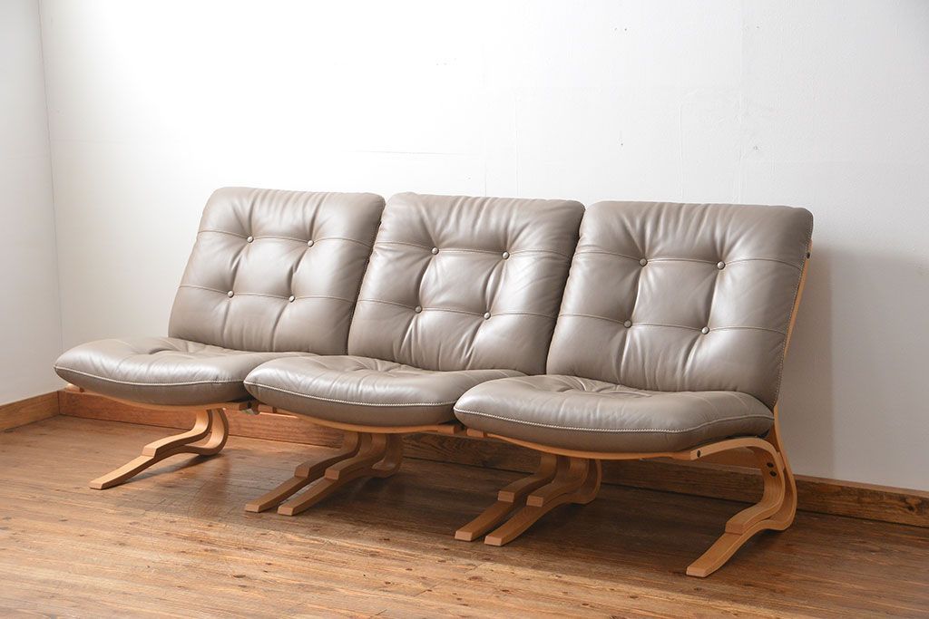 中古 展示・美品 カリモク レトロモダン WDモデル革張りソファー(2) 定価約12万円です。
