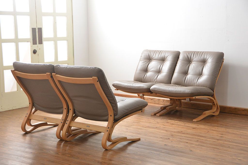ソファ > 中古 展示・美品 カリモク レトロモダン WDモデル革張りソファー(2) 定価約12万円