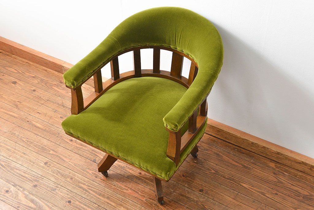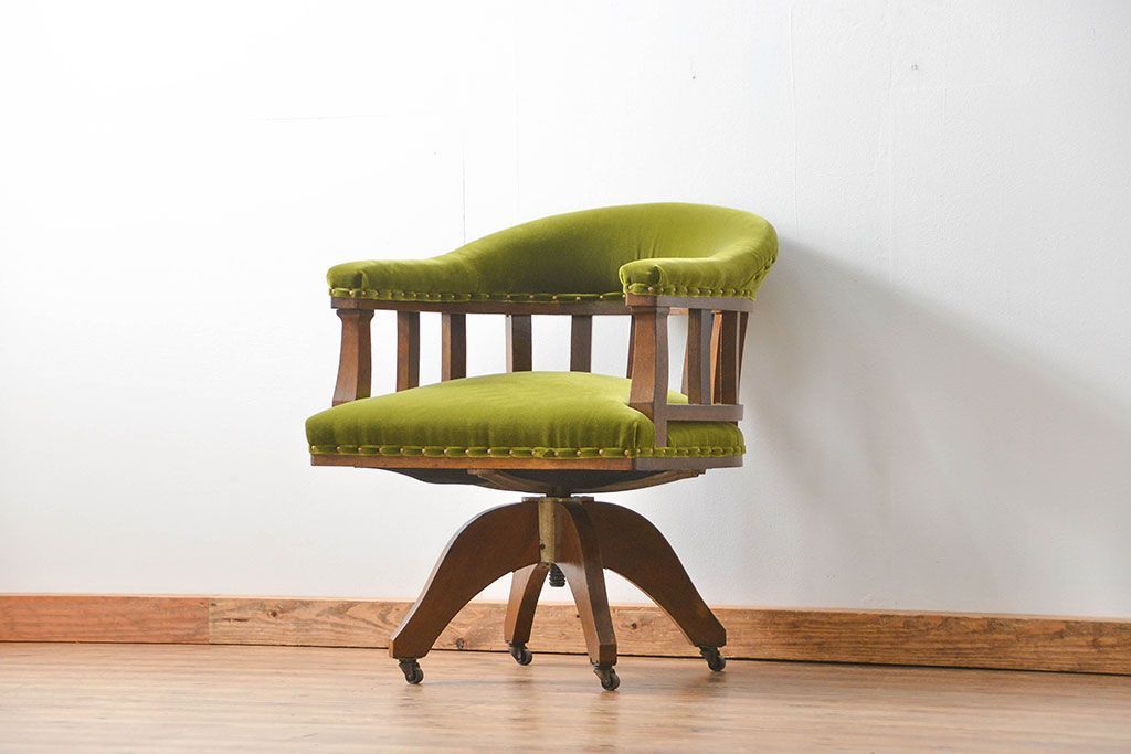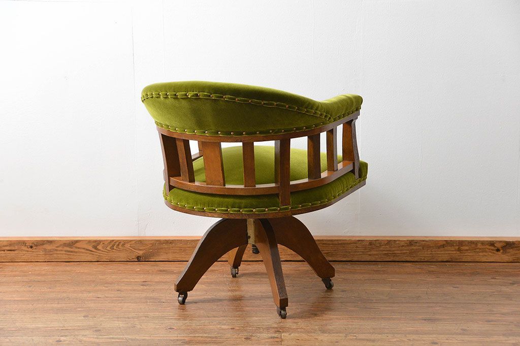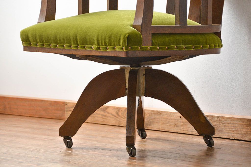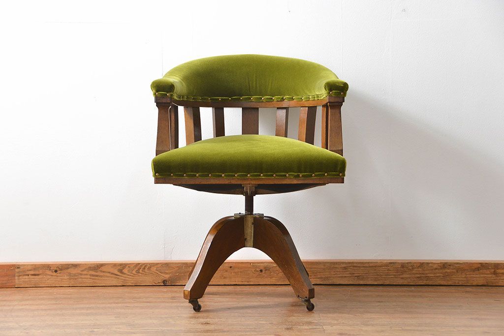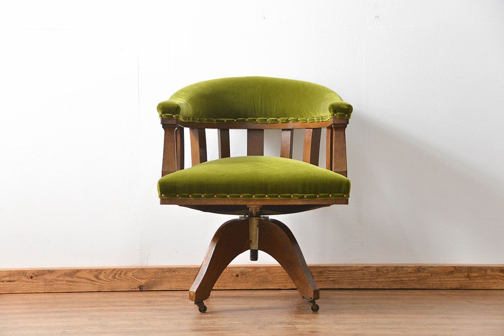 アンティーク家具 アンティーク 古いナラ材のかわいい回転イス(デスクチェア、ドクターチェア、椅子)