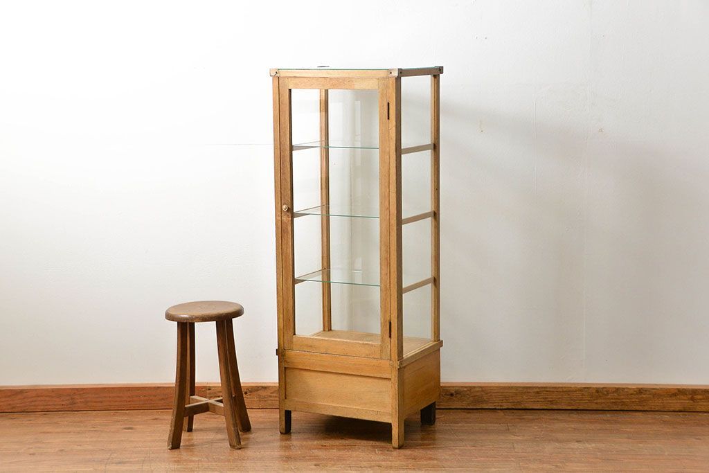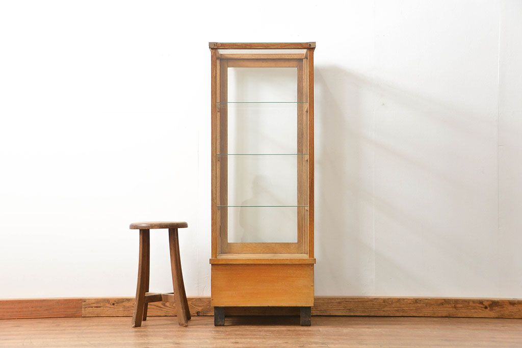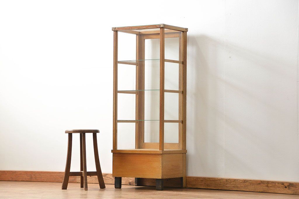 レトロ家具 昭和レトロ 縦型のアンティークガラスケース(ショーケース、飾り棚)