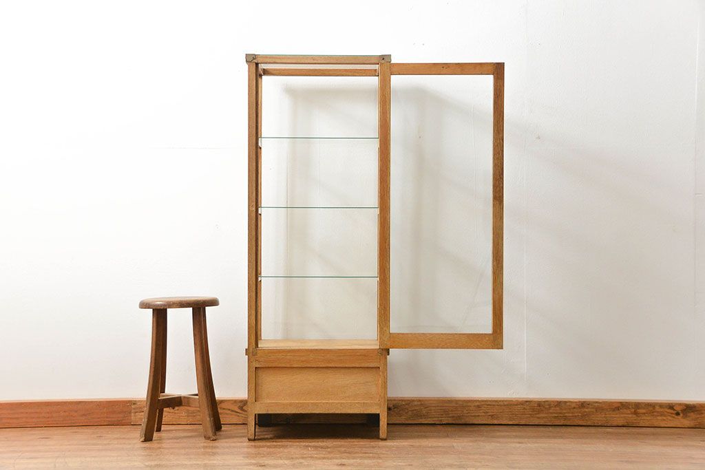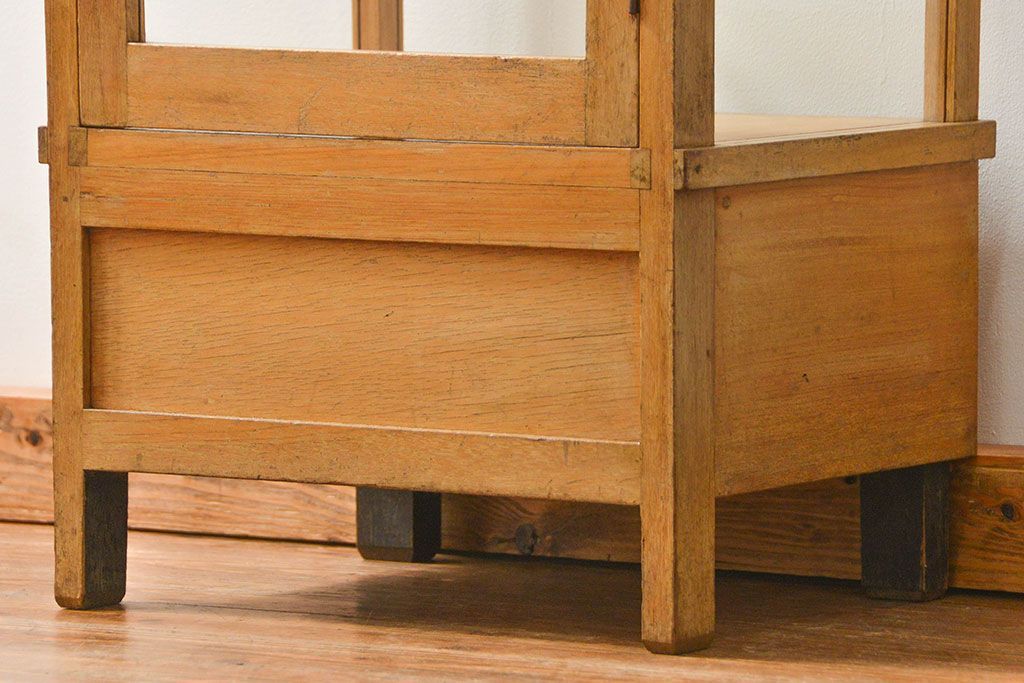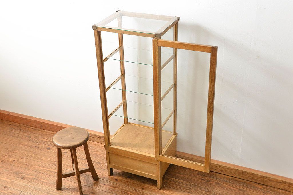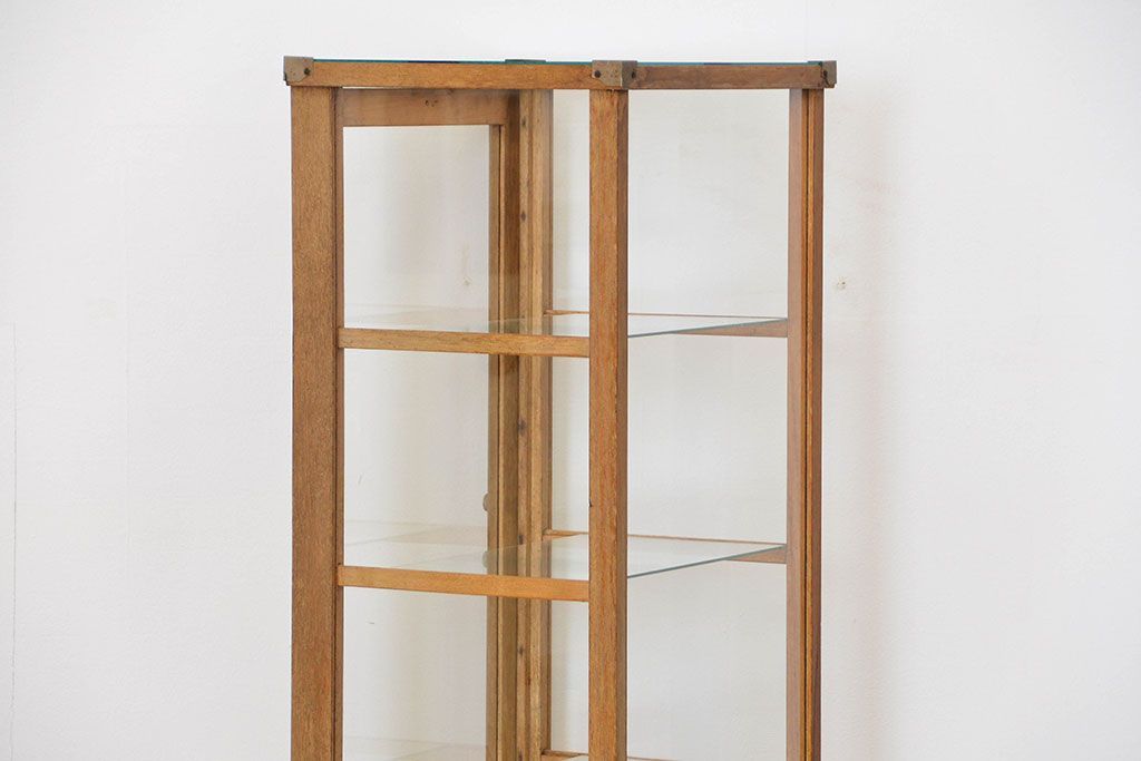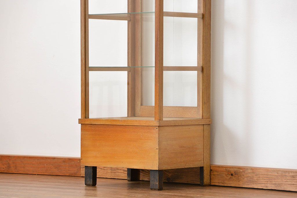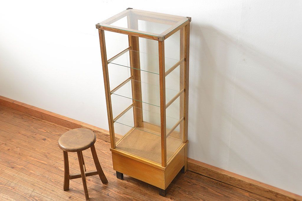 昭和レトロ 縦型のアンティークガラスケース(ショーケース、飾り棚)です。
