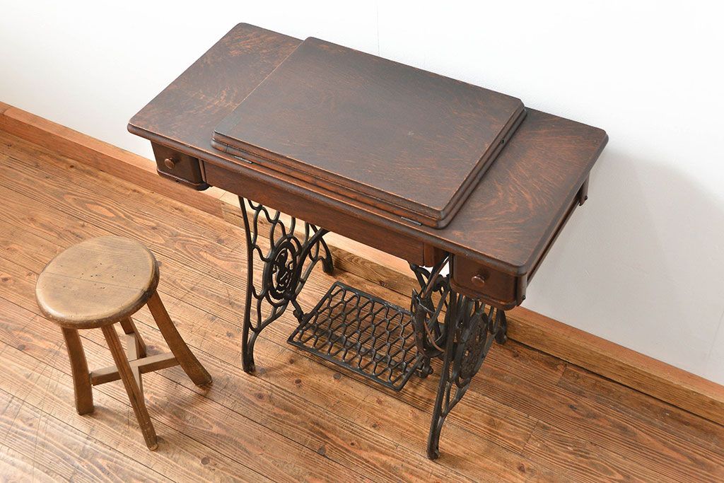 ラフジュ工房> テーブル> ミシンテーブル > アンティーク家具 ジャンク品 イギリスアンティーク 足踏みシンガーミシン(SINGER)(2)