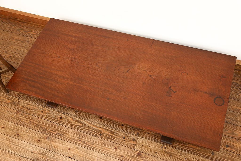 ラフジュ工房> 骨董・美術品 > アンティーク家具 古民具・骨董 天板欅材一枚板 組み立て式テーブル(裁ち板・座卓・作業台)