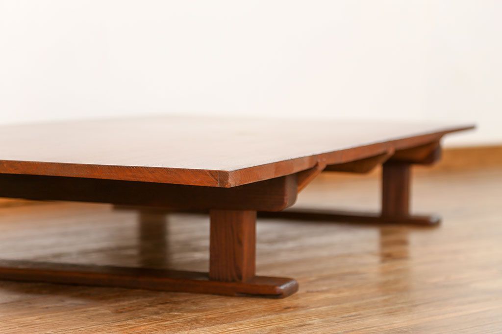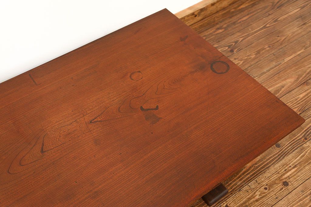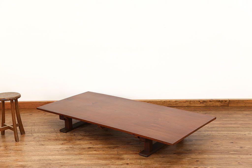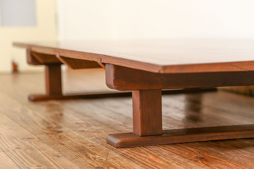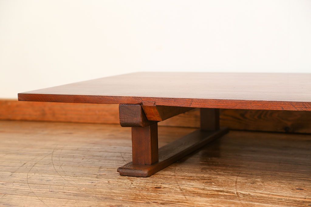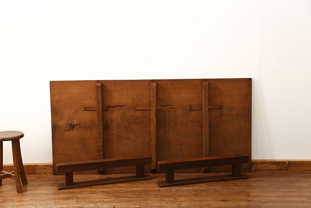 ラフジュ工房> テーブル> 裁ち板・天板・古材 > アンティーク家具 古民具・骨董 天板欅材一枚板 組み立て式テーブル(裁ち板・座卓・作業台)