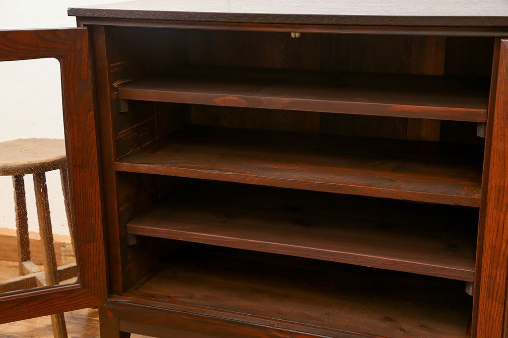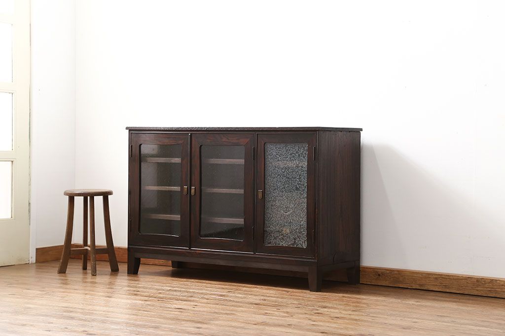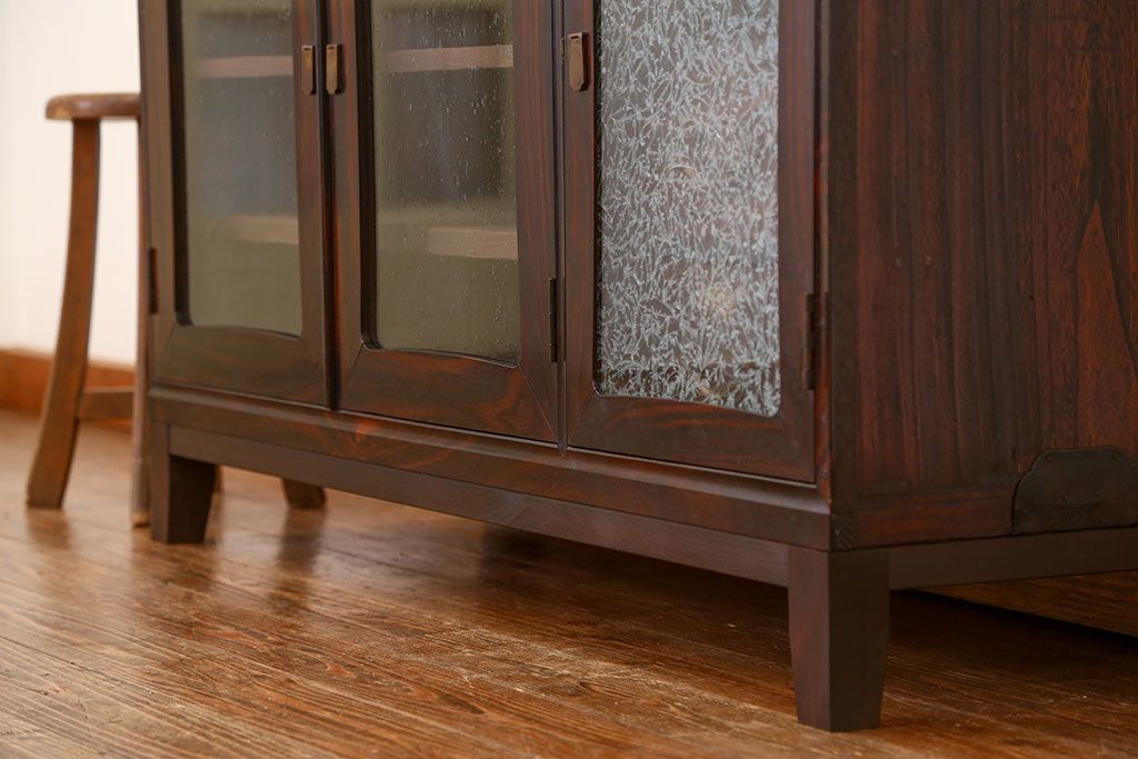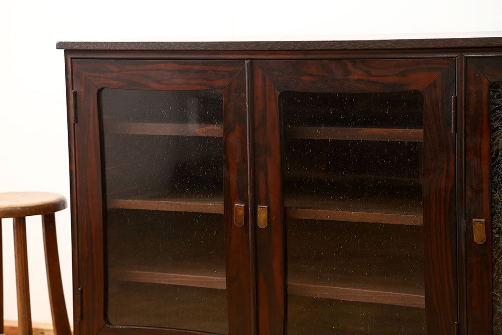 アンティーク 前面黒檀材!シックでモダンな脚付きサイドボード(収納棚、ローボード)です。