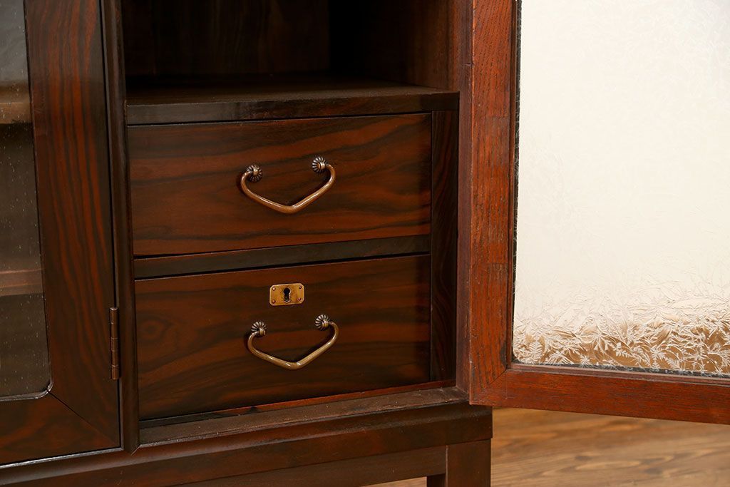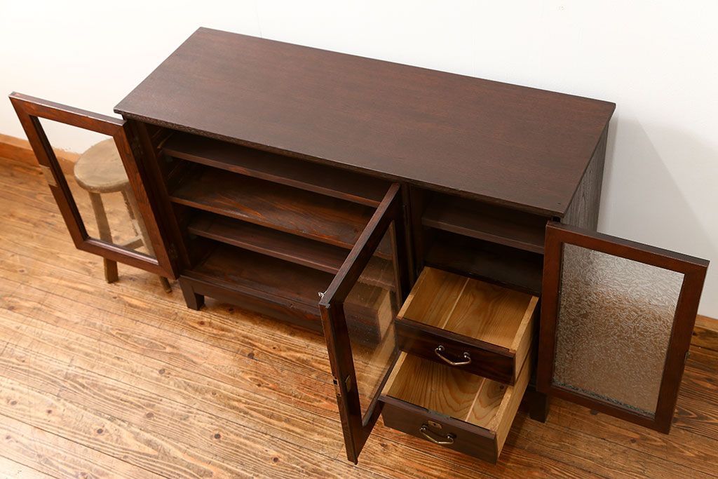 アンティーク家具 アンティーク 前面黒檀材!シックでモダンな脚付きサイドボード(収納棚、ローボード)