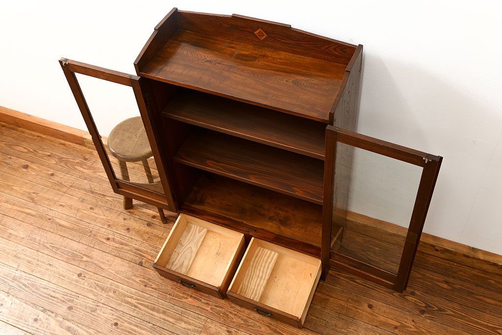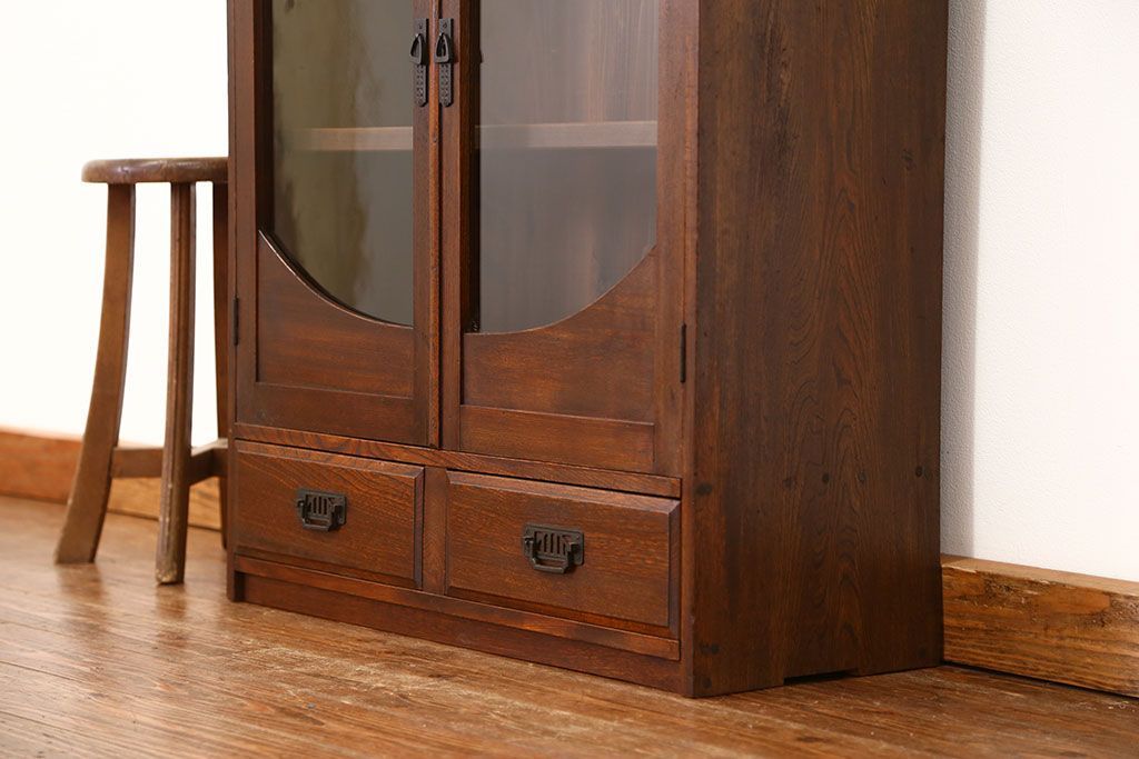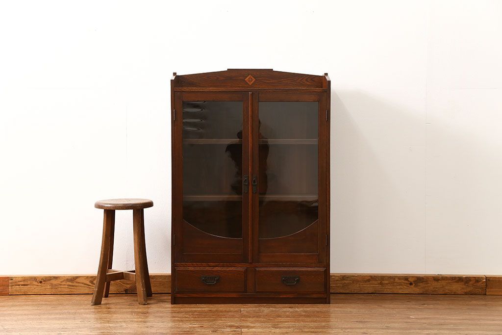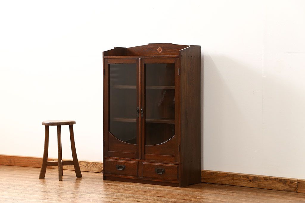 アンティーク家具 アンティーク 古い栓材の象嵌入り本箱(ブックケース、本棚)