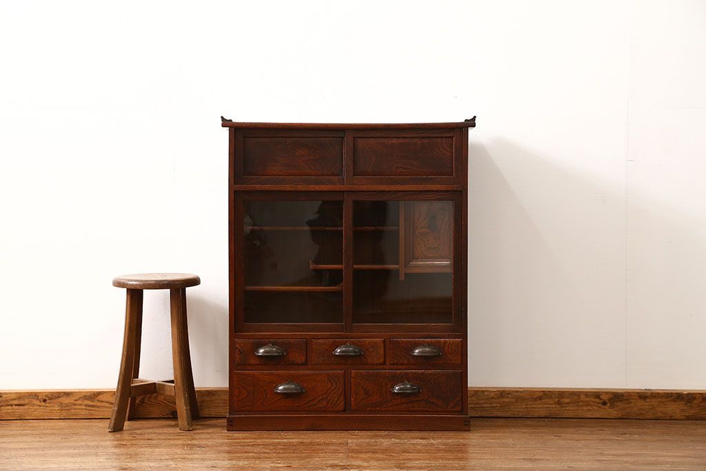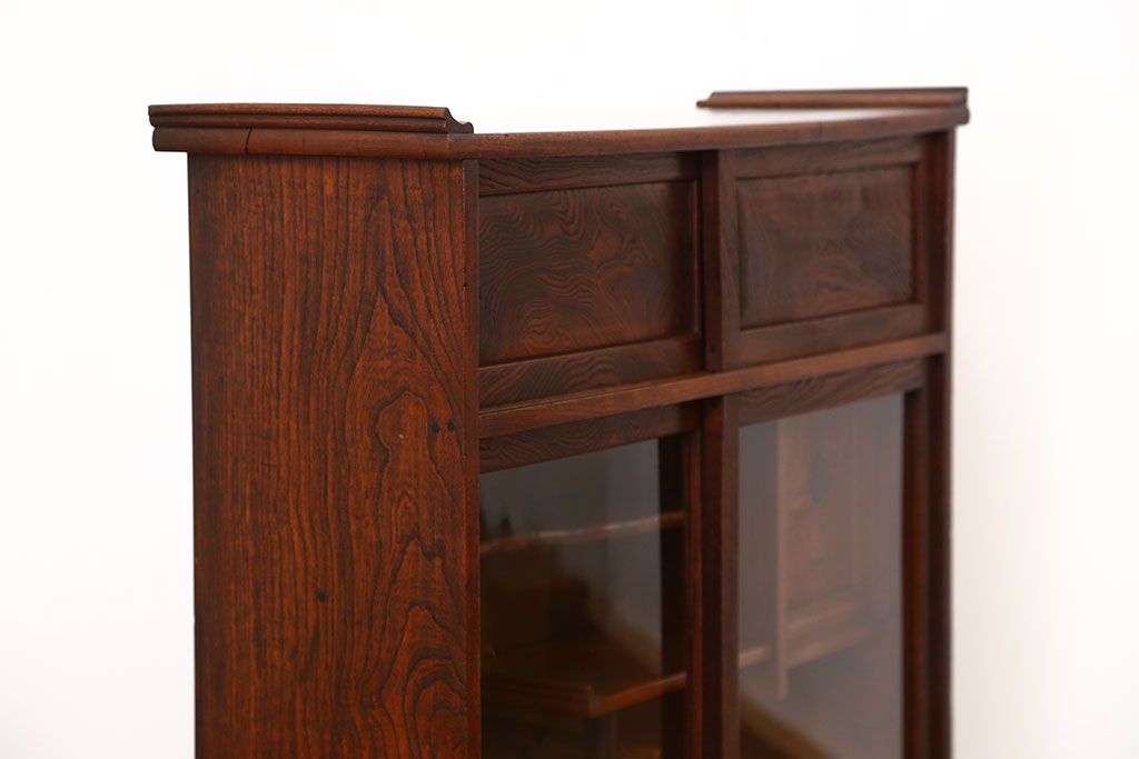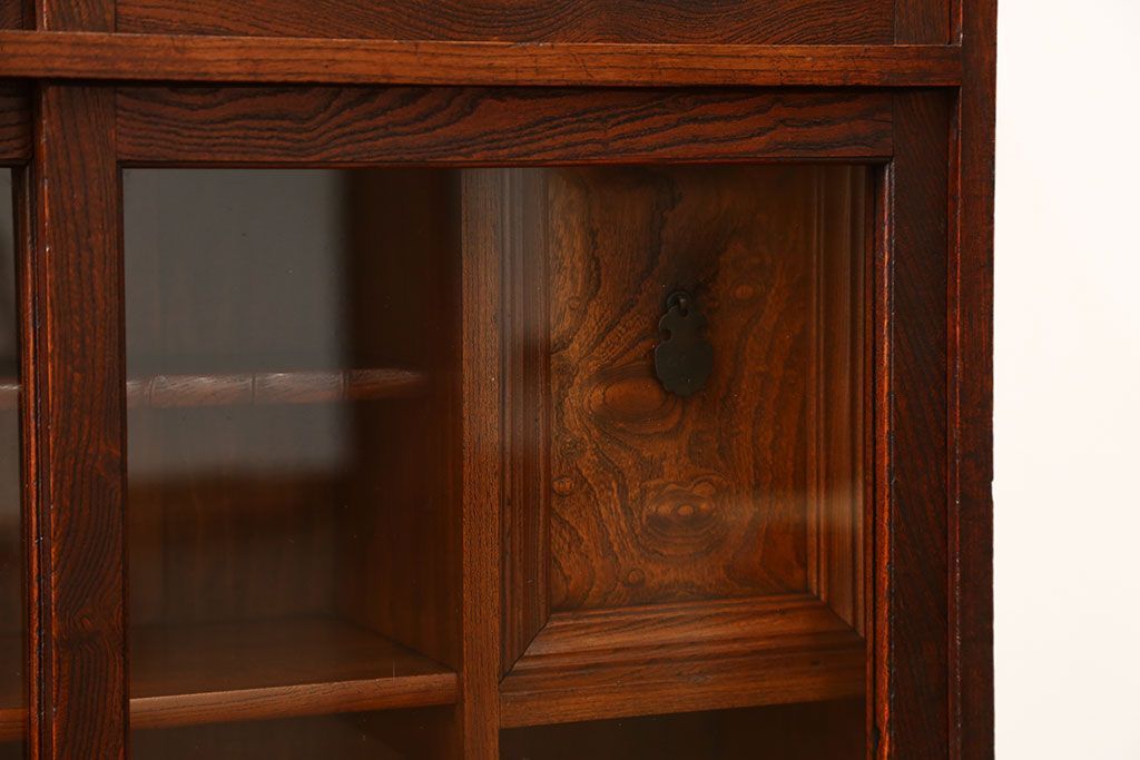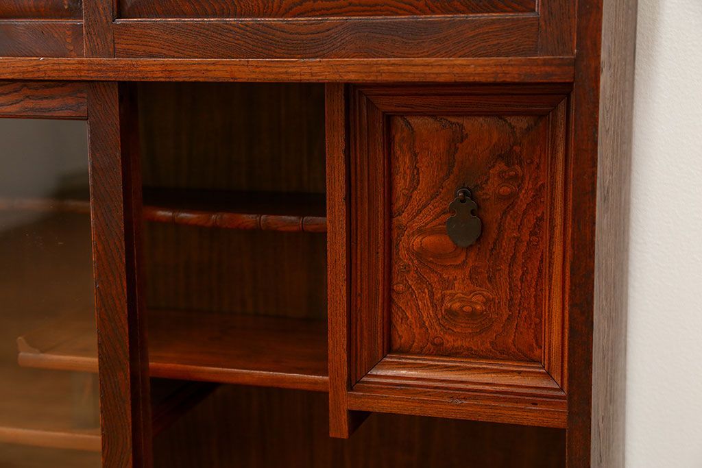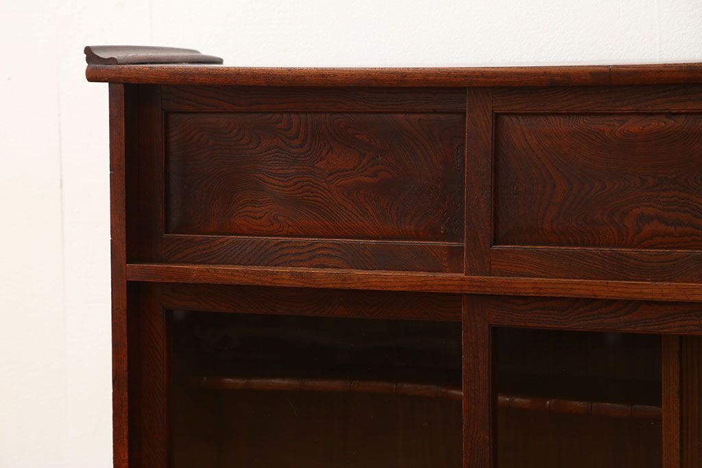 アンティーク家具 古民具・骨董 三方欅材の小振りで上質な茶箪笥(茶棚、飾り棚)
