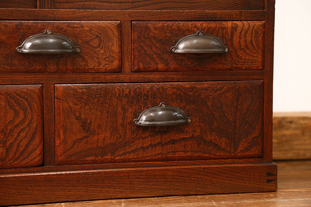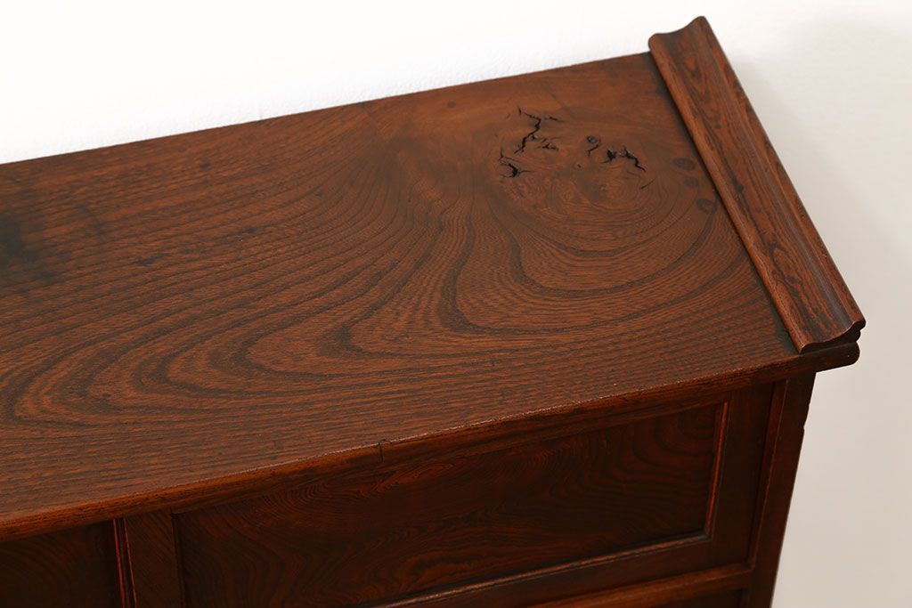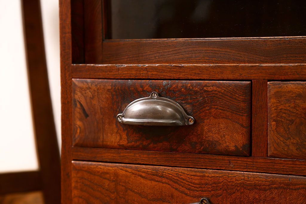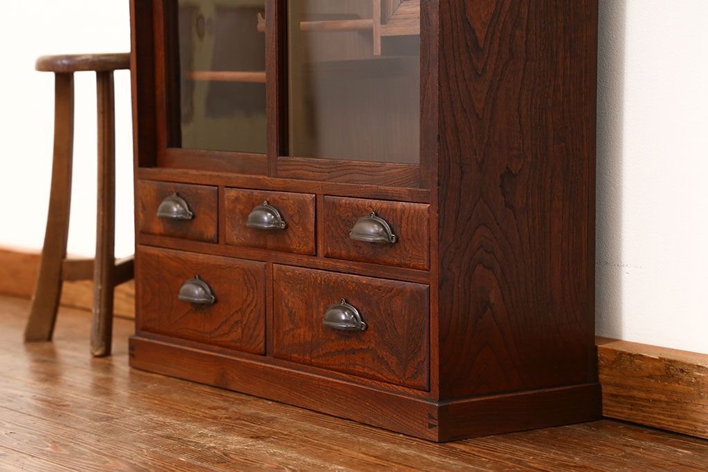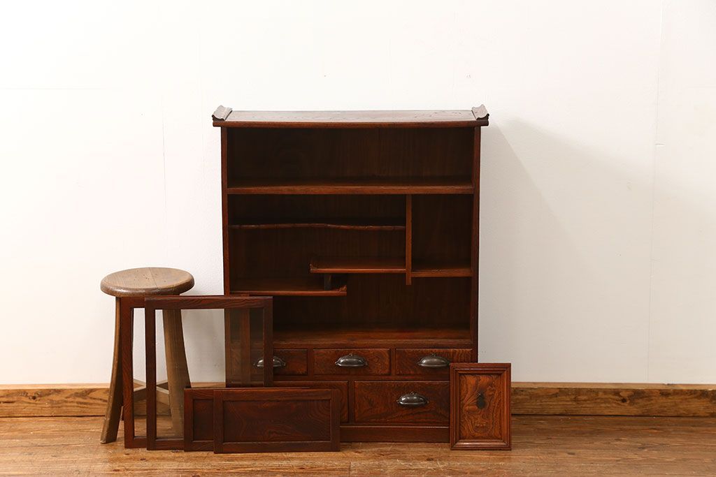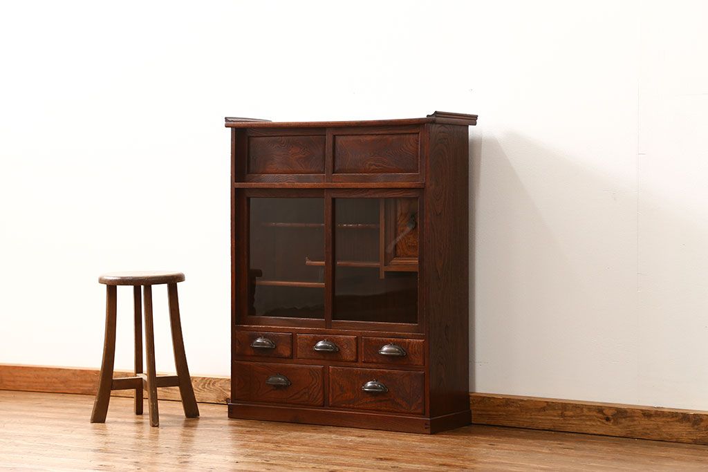 アンティーク家具 古民具・骨董 三方欅材の小振りで上質な茶箪笥(茶棚、飾り棚)