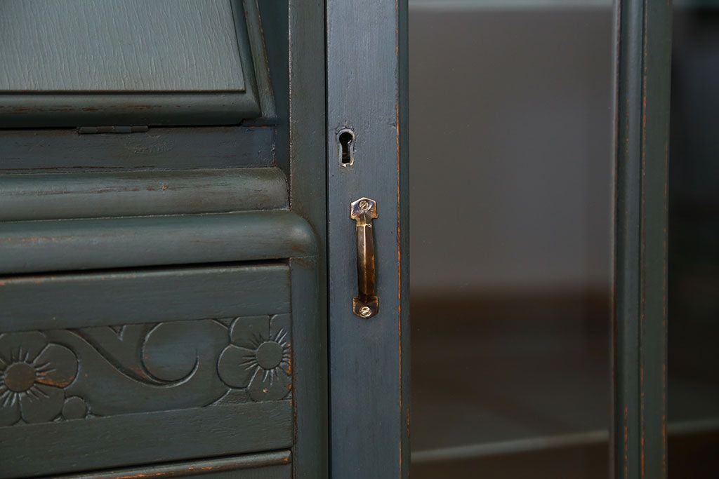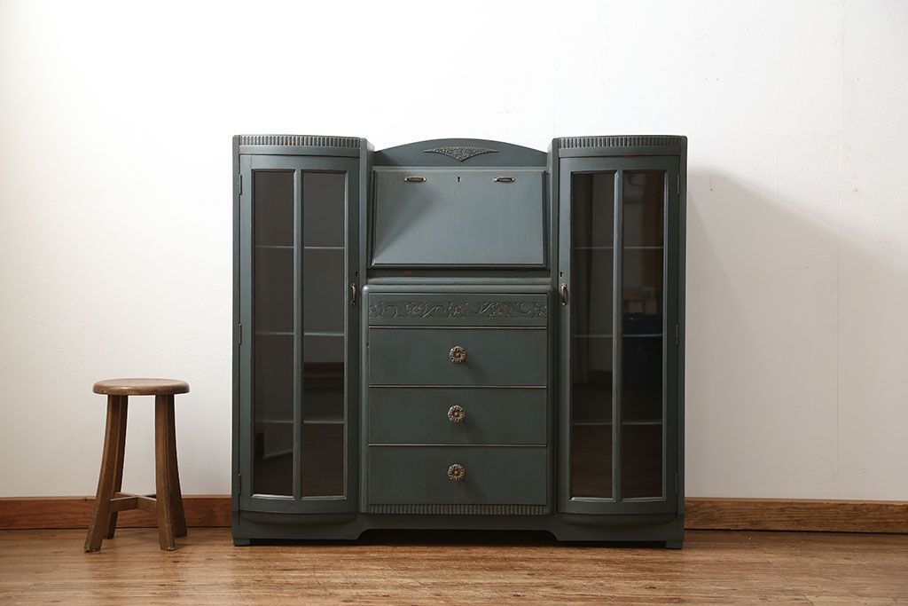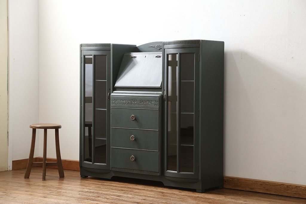 ラフジュ工房> ガラスケース・ショーケース > アンティーク家具 イギリスアンティーク 本箱付き!ペイントライティングビューロー