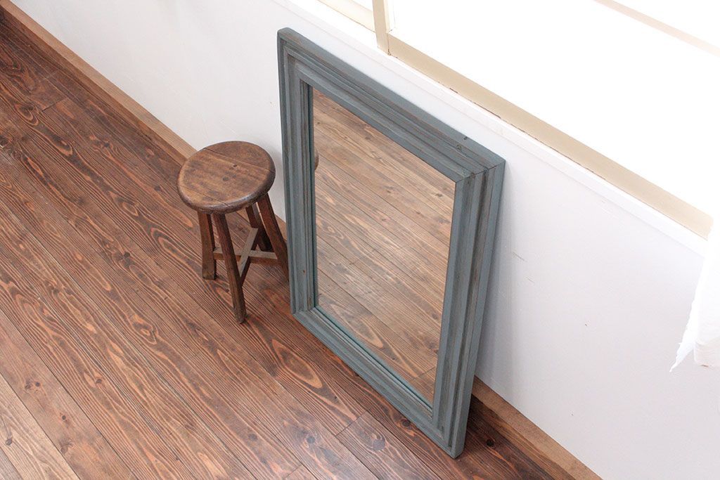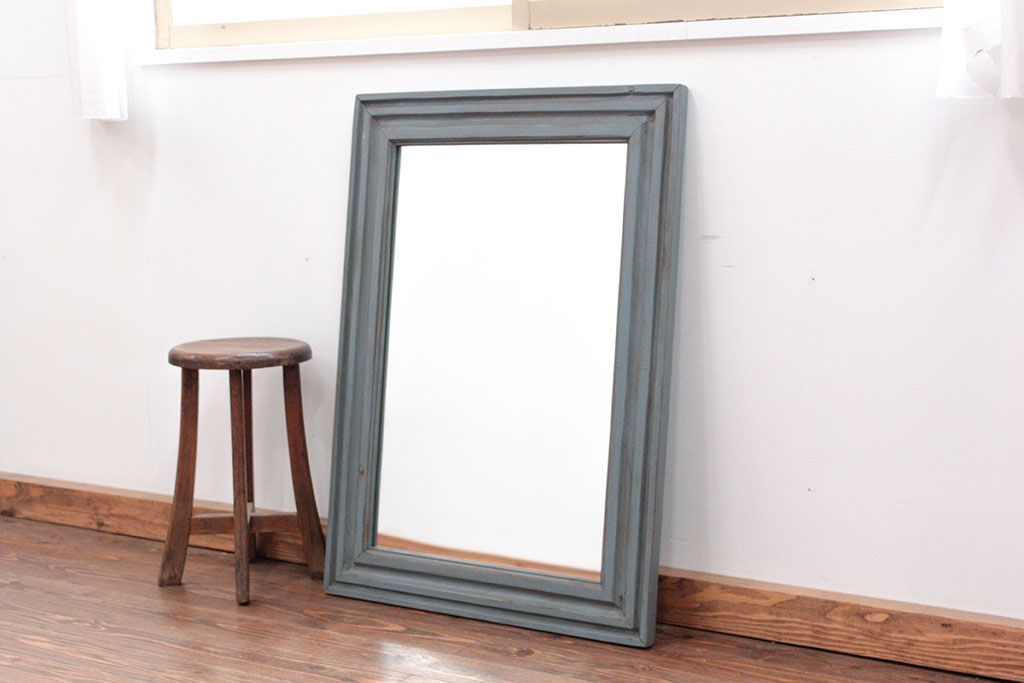 ラフジュ工房> 鏡> 姿見 > アンティーク雑貨 ラフジュ工房オリジナル アンティークペイントブルーウォールミラー(1)(鏡、姿見)